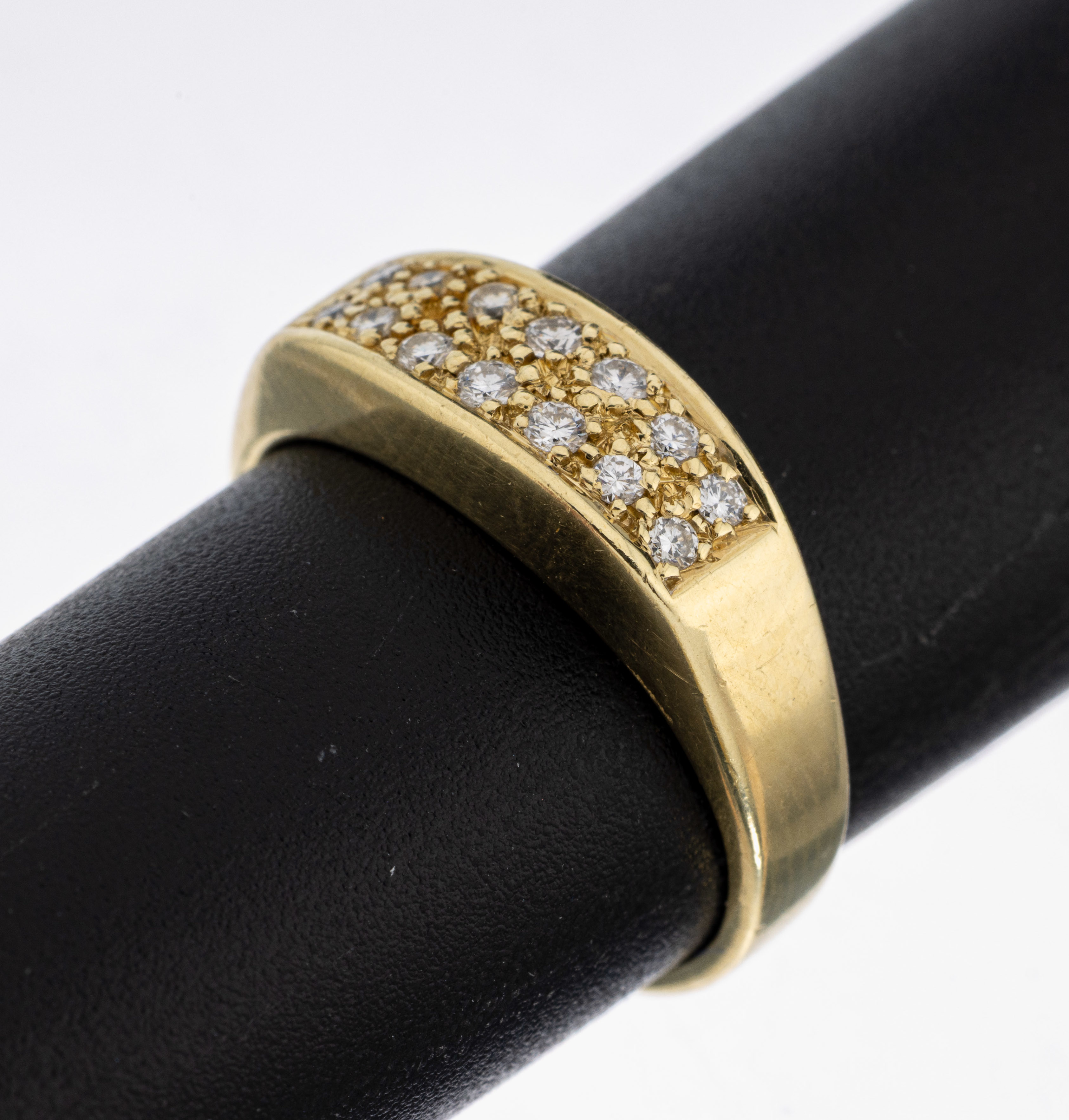 14 kt Gold Brillant-Ring, GG 585/000, schlicht, 14 Brillanten zus. ca. 0.24 ct (grav.)