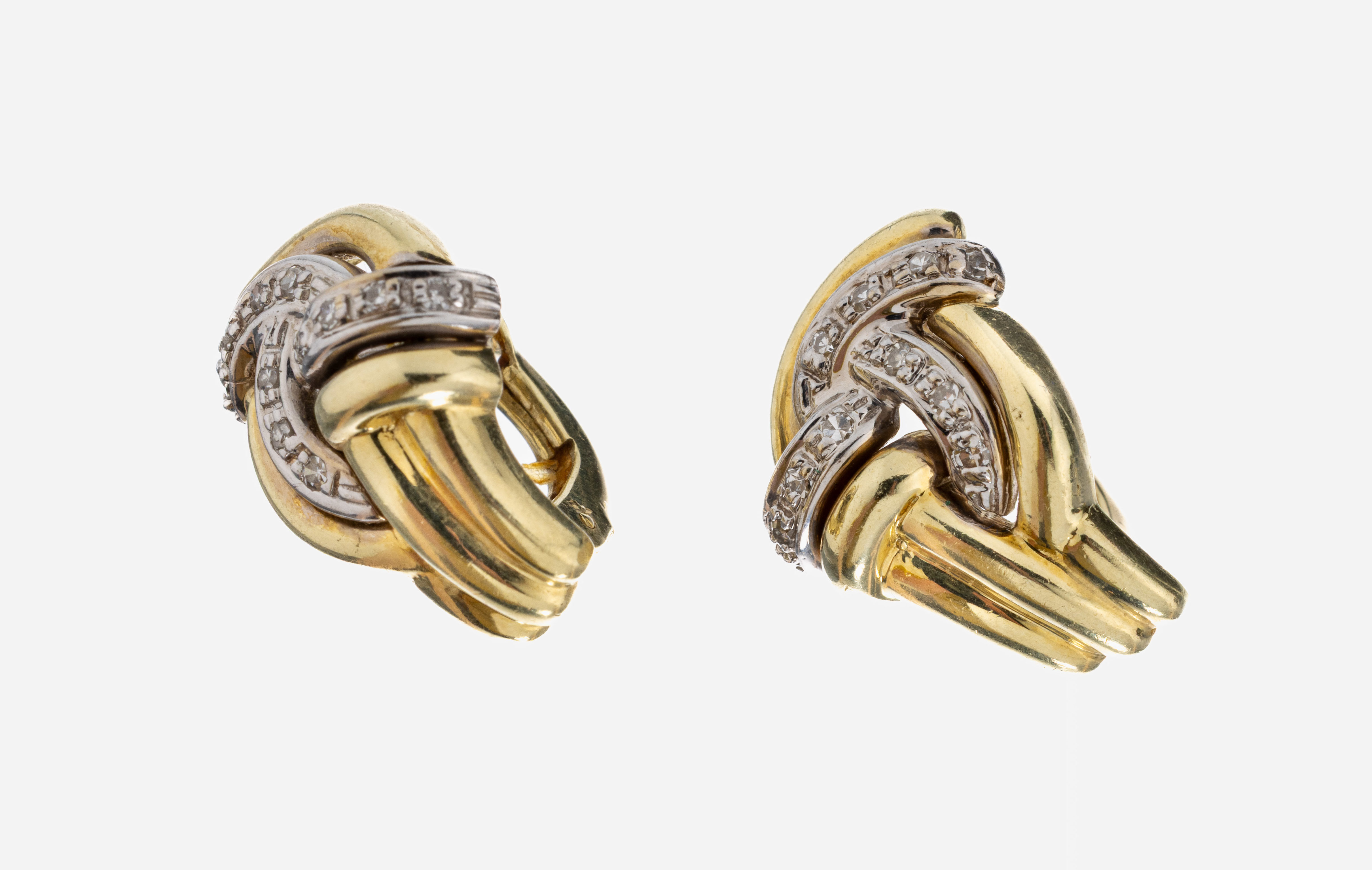 Paar 14 kt Gold Diamant-Ohrstecker, GG/WG 585/000, 22 in WG gefasste 8/8-Diamanten