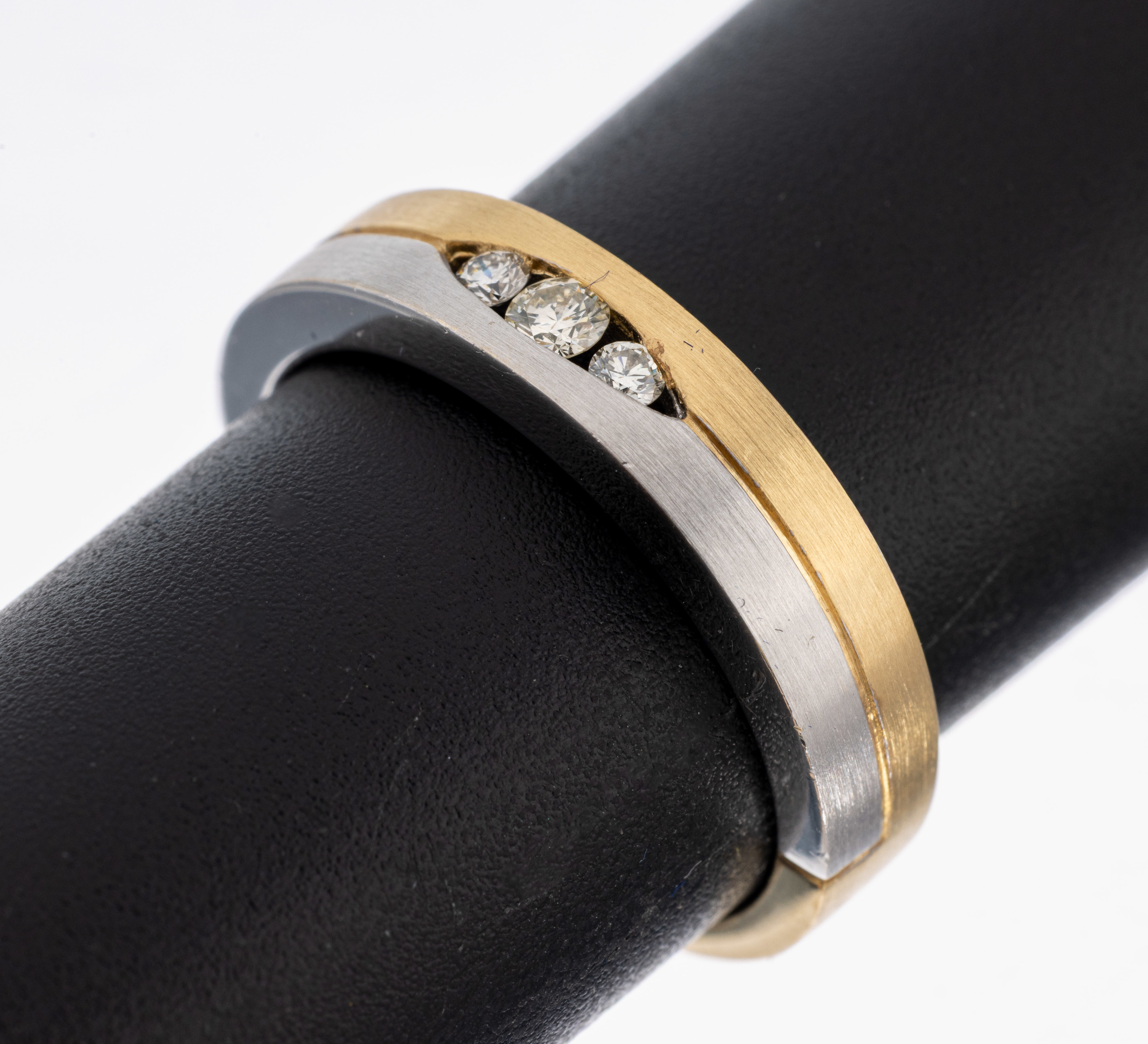14 kt Gold Brillant-Ring, GG/WG 585/000, 3 Brillanten zus. ca. 0.10 ct Weiß/si,