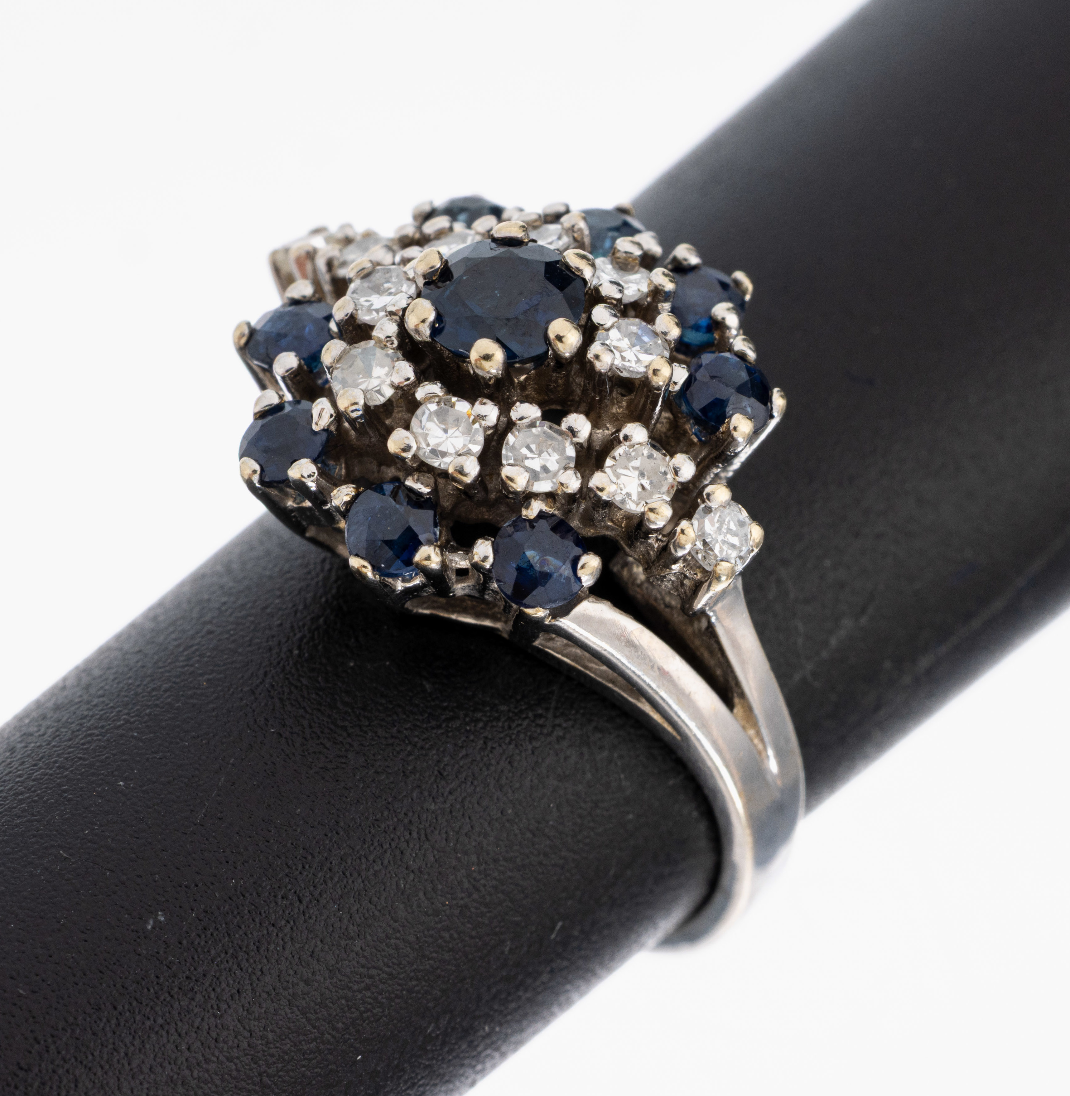 14 kt Gold Saphir-Diamant-Ring, WG 585/000,7 rundfacett. Saphire zus. ca. 0.80 ct,