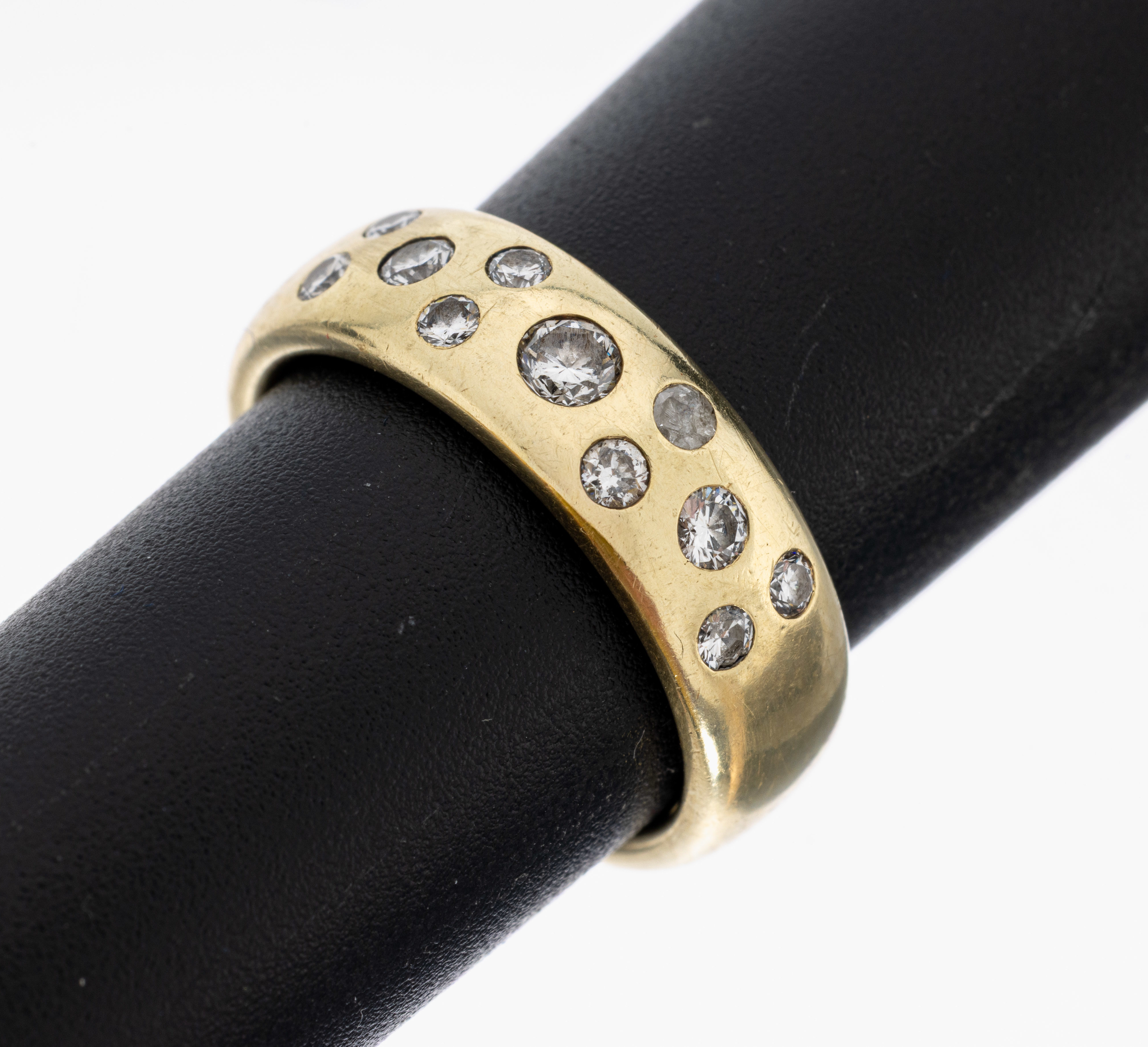 14 kt Gold Brillant-Ring, GG 585/000, 11 Brillanten zus. ca. 0.44 ct Weiß/si, 1