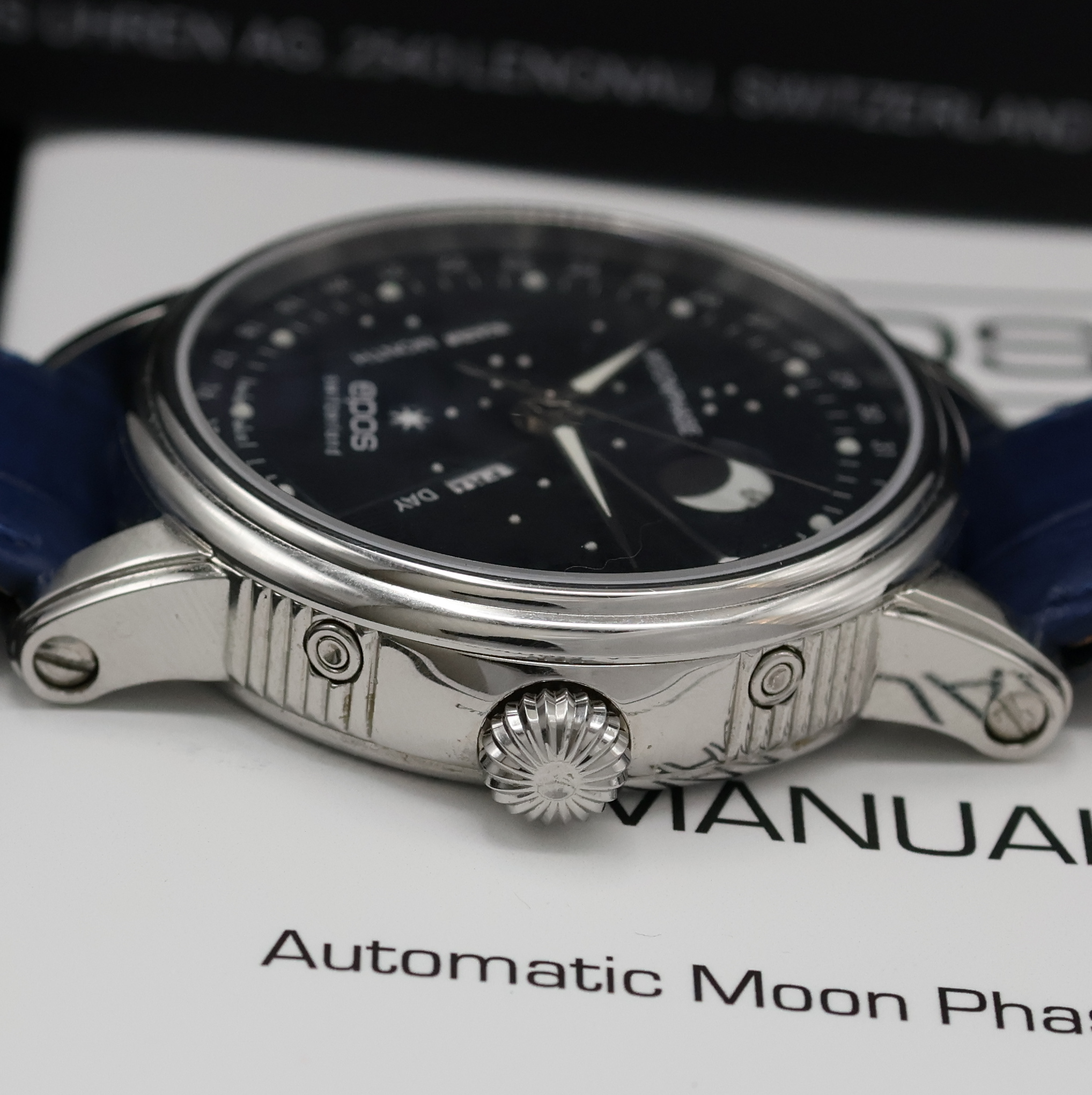 Monat, Mondphase, rhod. guill. Werk Sellita SW300, 25 St., D. ca. 42 mm, Nutzspuren,