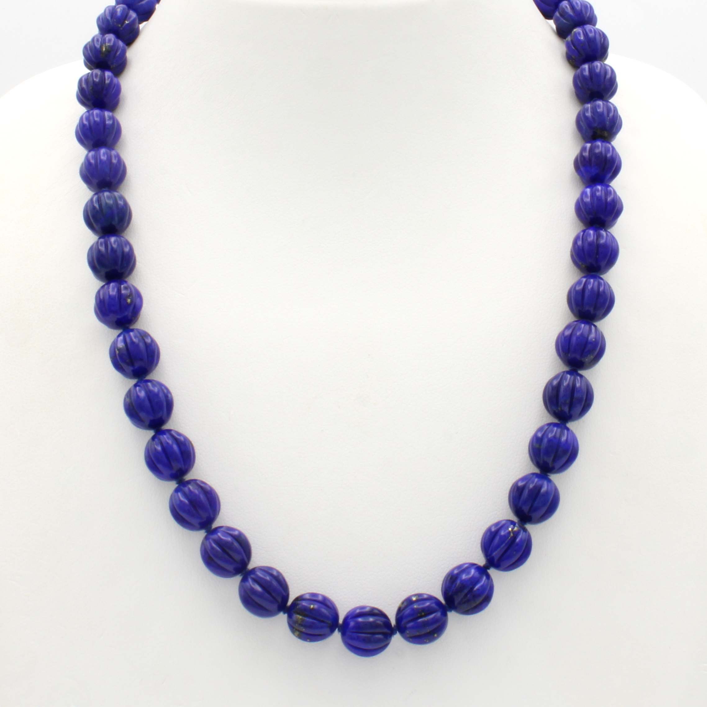 Lapislazulikugelkette, verg. Karabinerschl.,Natur, gerieft, D. ca. 10 mm, L. ca. 47 cm Schätzpreis: 1200, - EUR