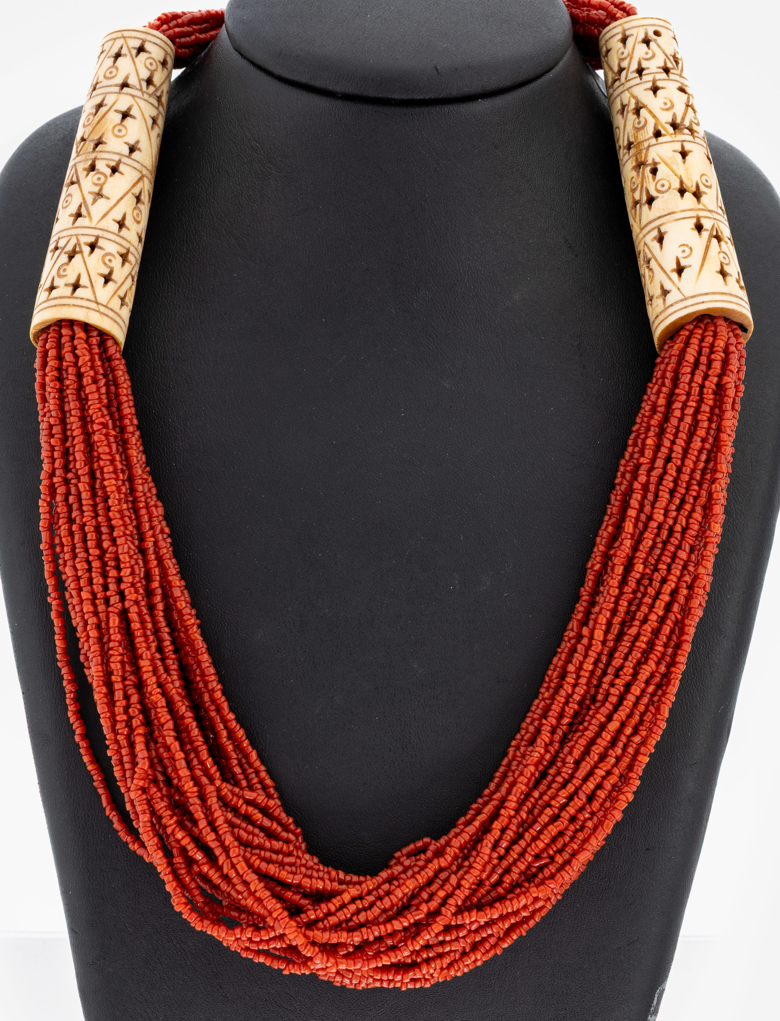 Ausgefallenes Korallen-Collier, vermutlich aus Afrika, Seitenstränge 20 rhg., Zwischenglieder