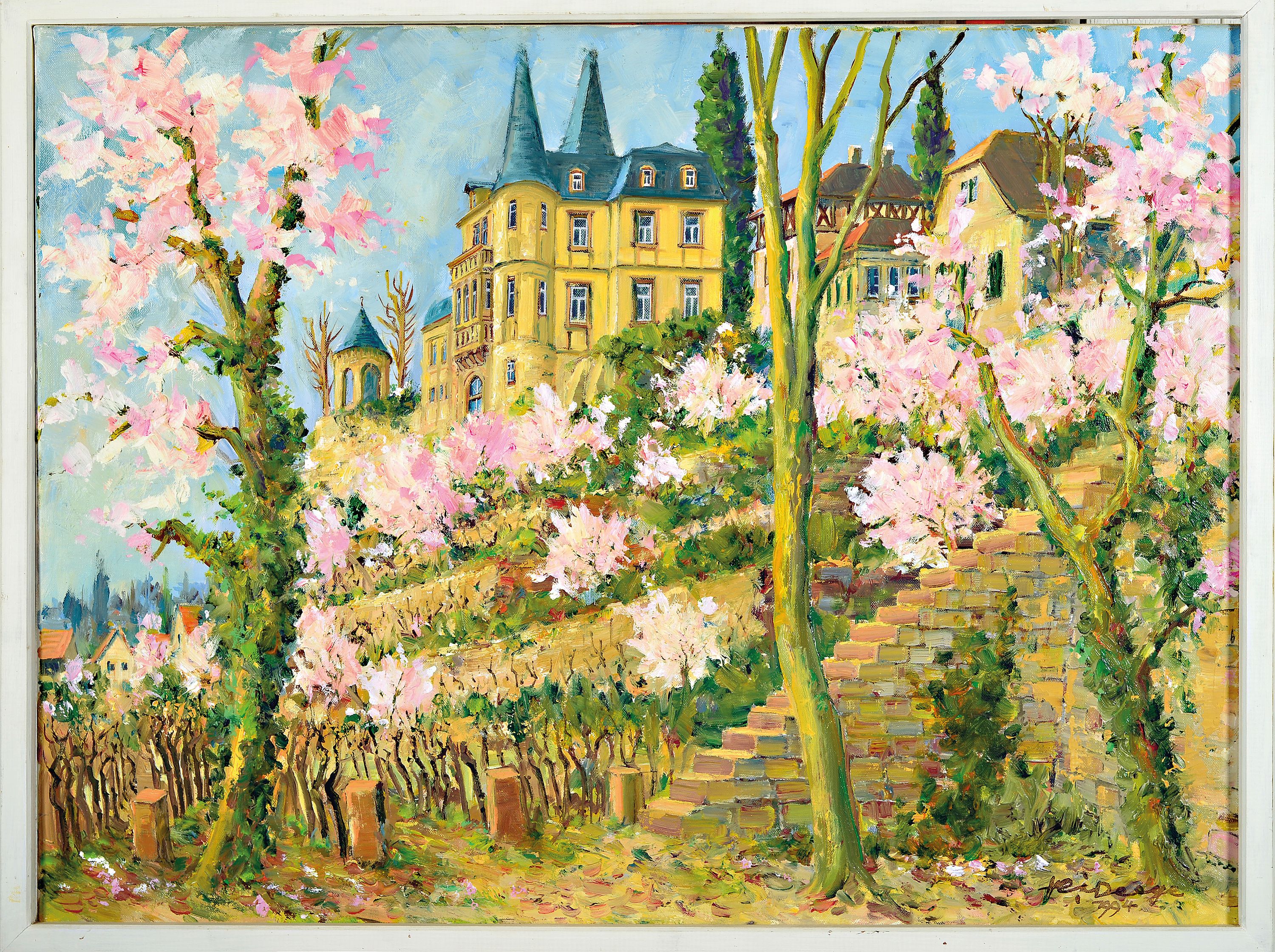 Heiner Deege, 1920 Haßloch-2007, Haarder Schloss bei Neustadt, Frühlingslandschaft,