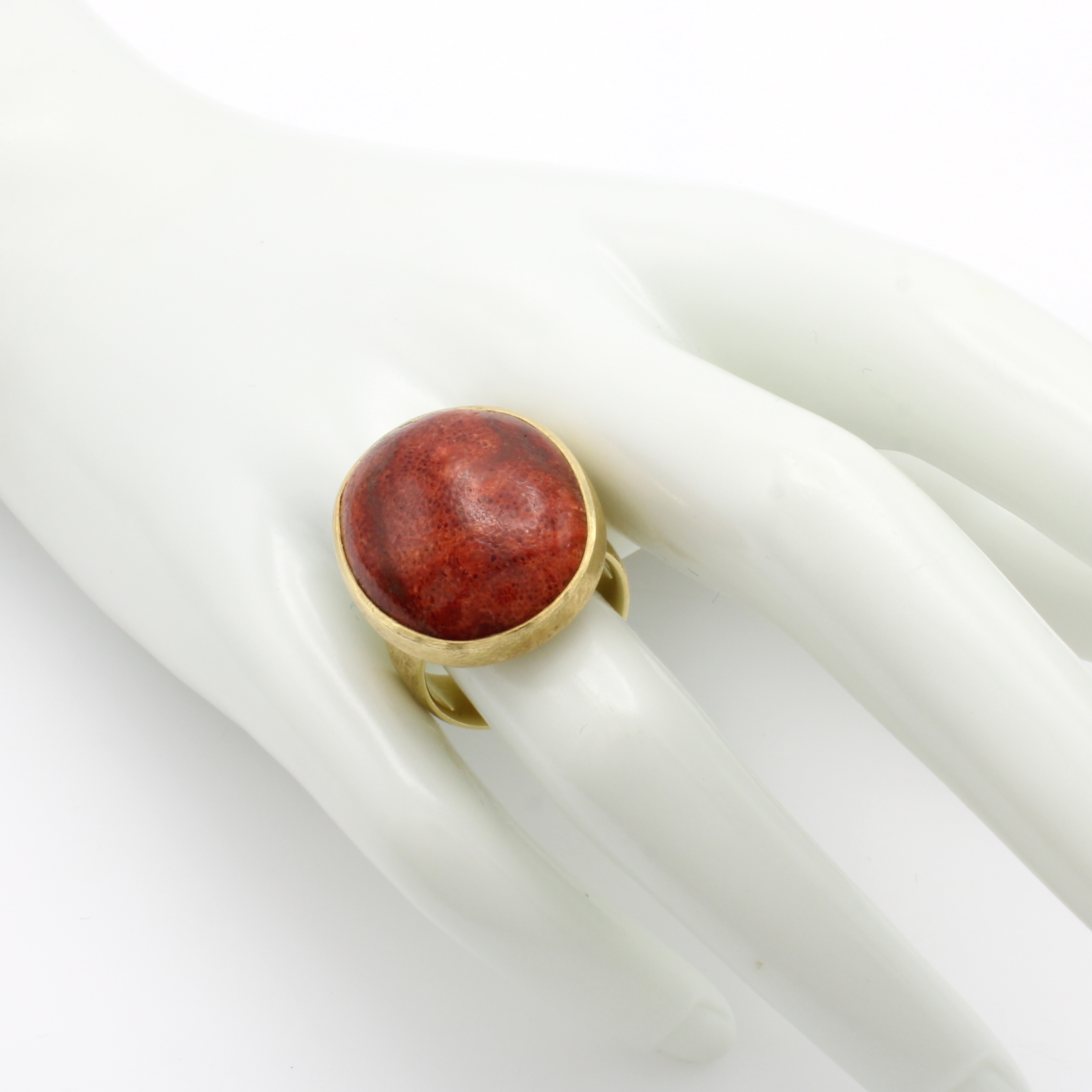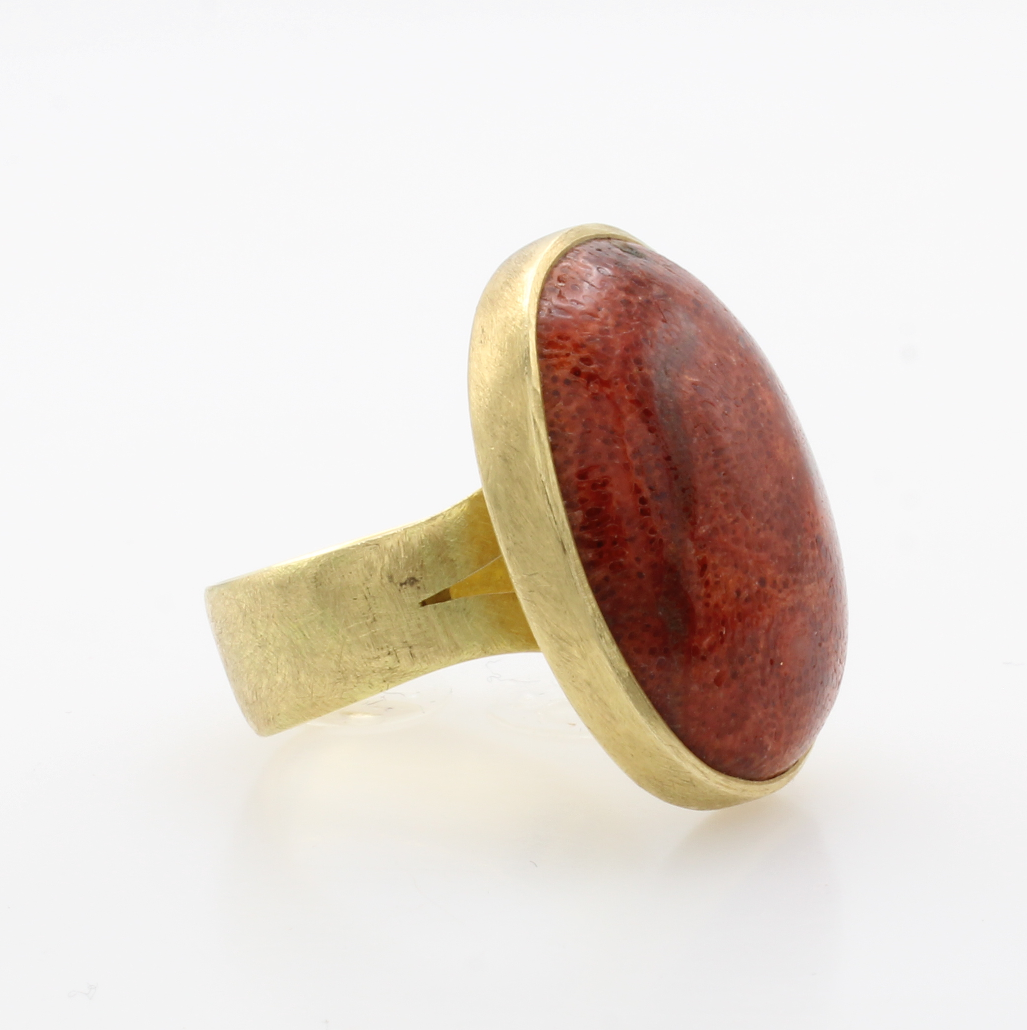 Ring mit Schaumkoralle, GG 750/000, strichmatt., ovale Koralle, RW ca. 55, Versand nur innerhalb der EU Schätzpreis: 2800, - EUR
