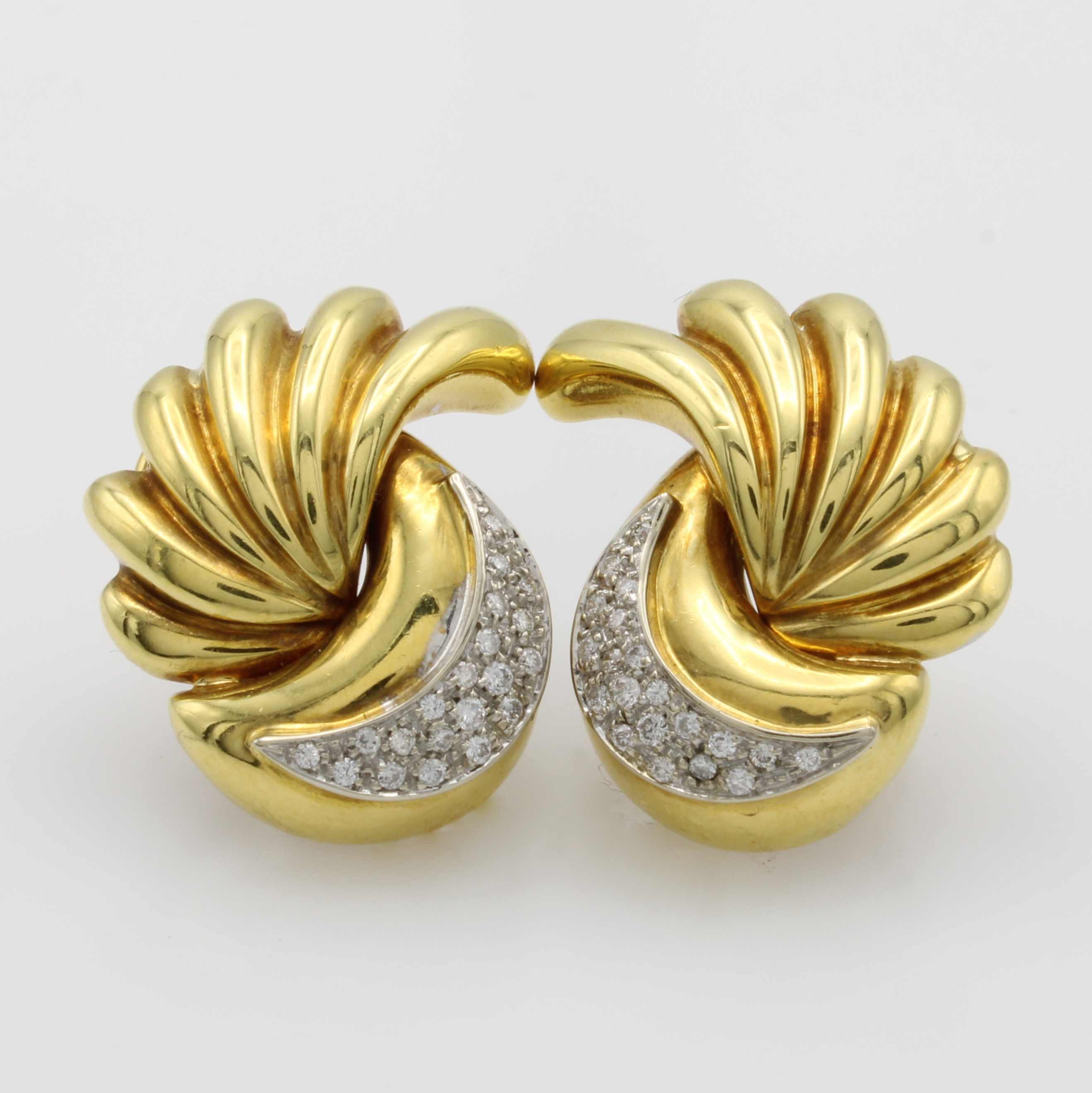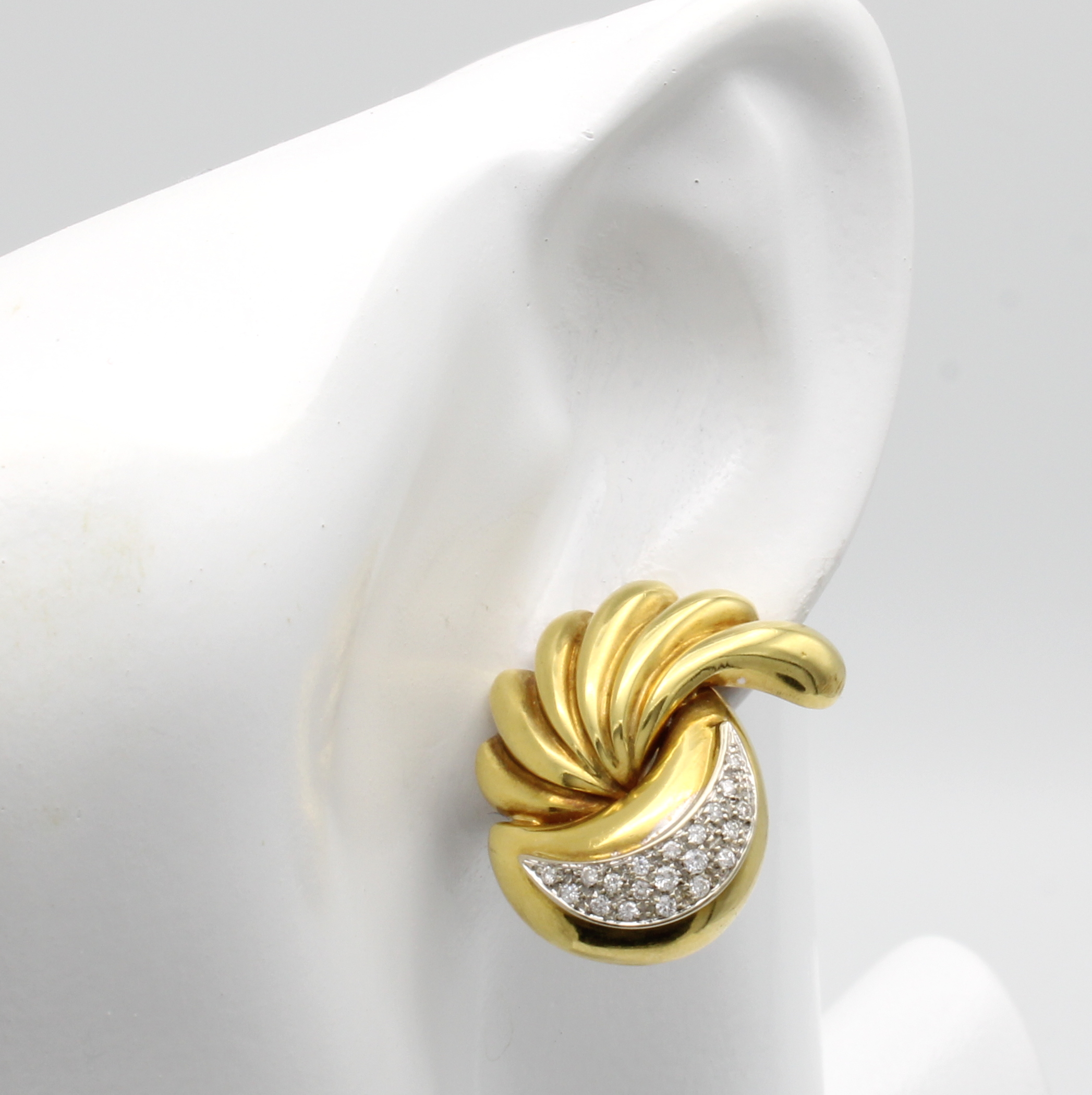 Paar Ohrstecker mit Brillanten, GG 750/000, Brill. in rhod. Fassungen zus. ca. 0.50 ct Weiß/si, geschwungene Form, m. Clipbrisur Schätzpreis: 4200, - EUR
