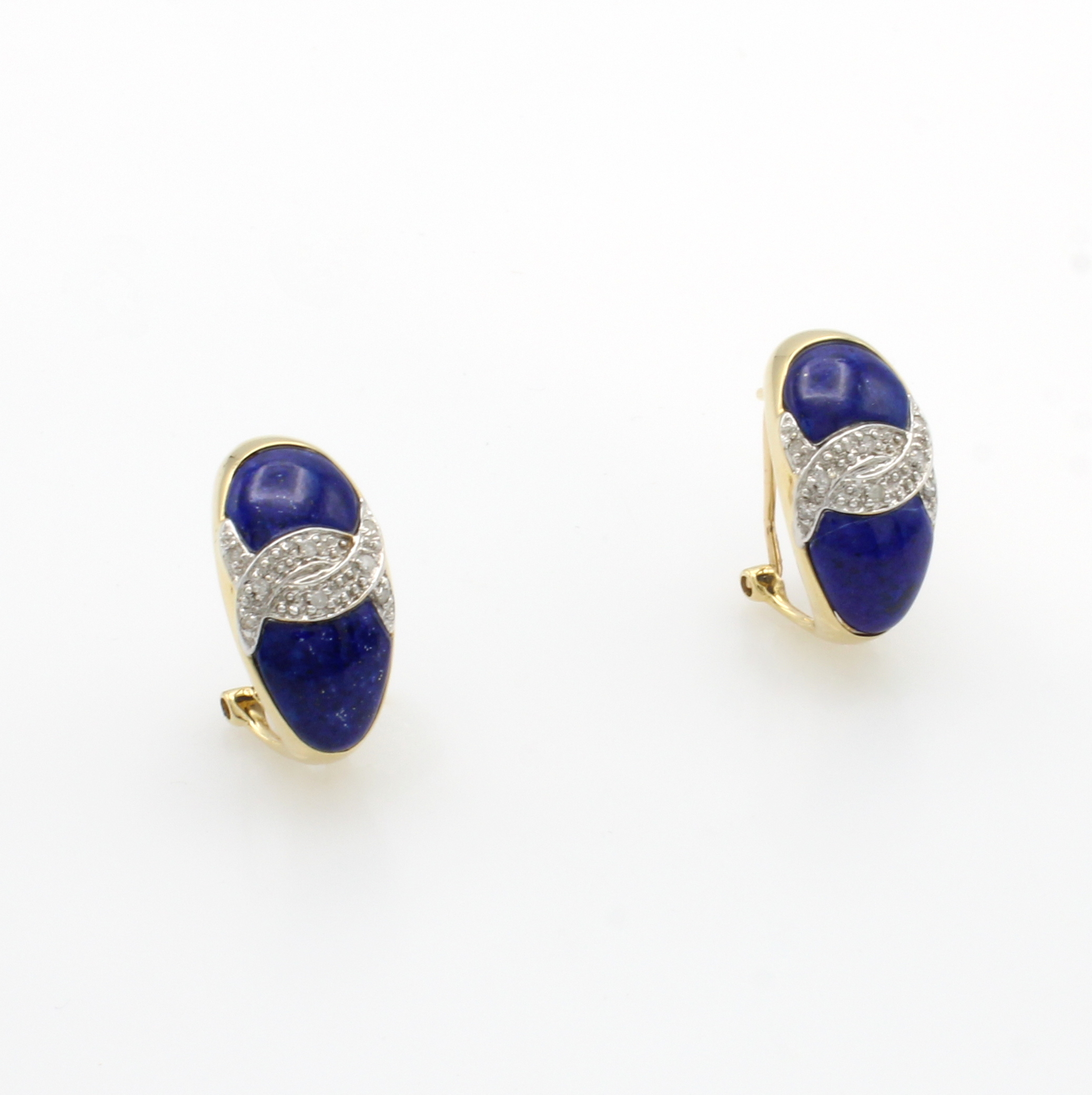 Paar Ohrboutons mit Lapislazuli und Brillanten, GG 585/000, Lapislazulieinlagen, 16 Brill.zus. ca. 0.08 ct Weiß/p, mit Clipbrisur Schätzpreis: 1300, - EUR