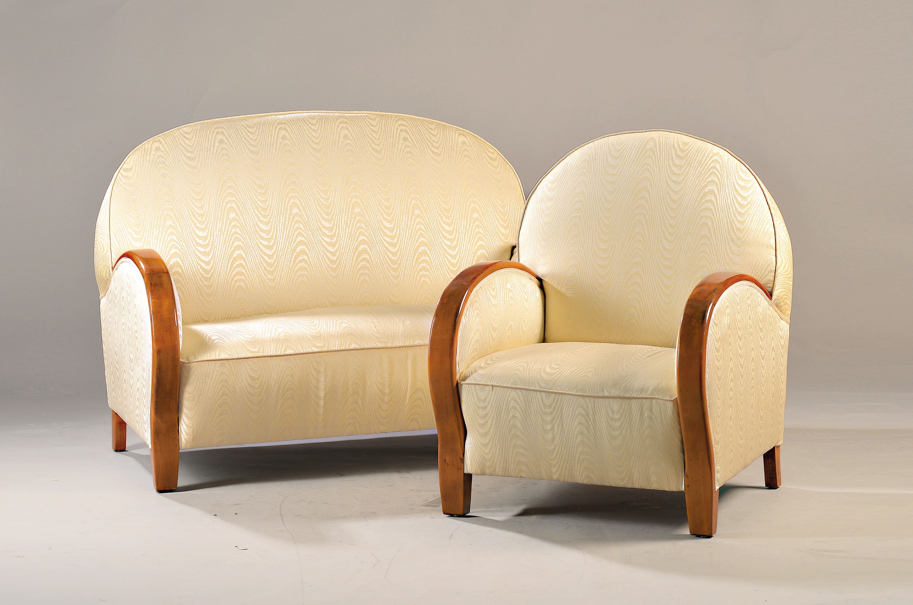 Art-Deco Sitzgruppe, Frankreich, um 1930, Gestell Nußbaum massiv, bestehend aus