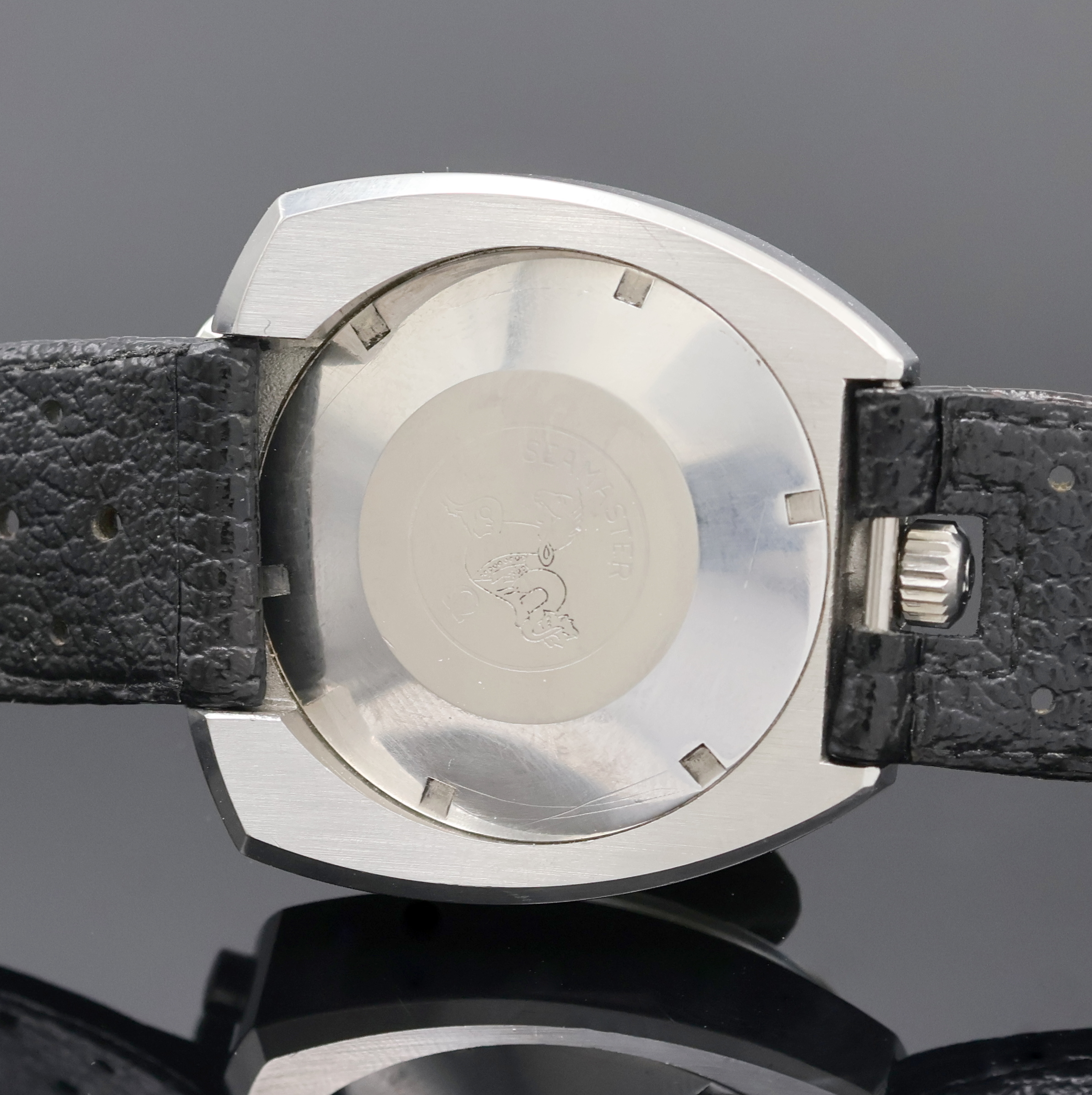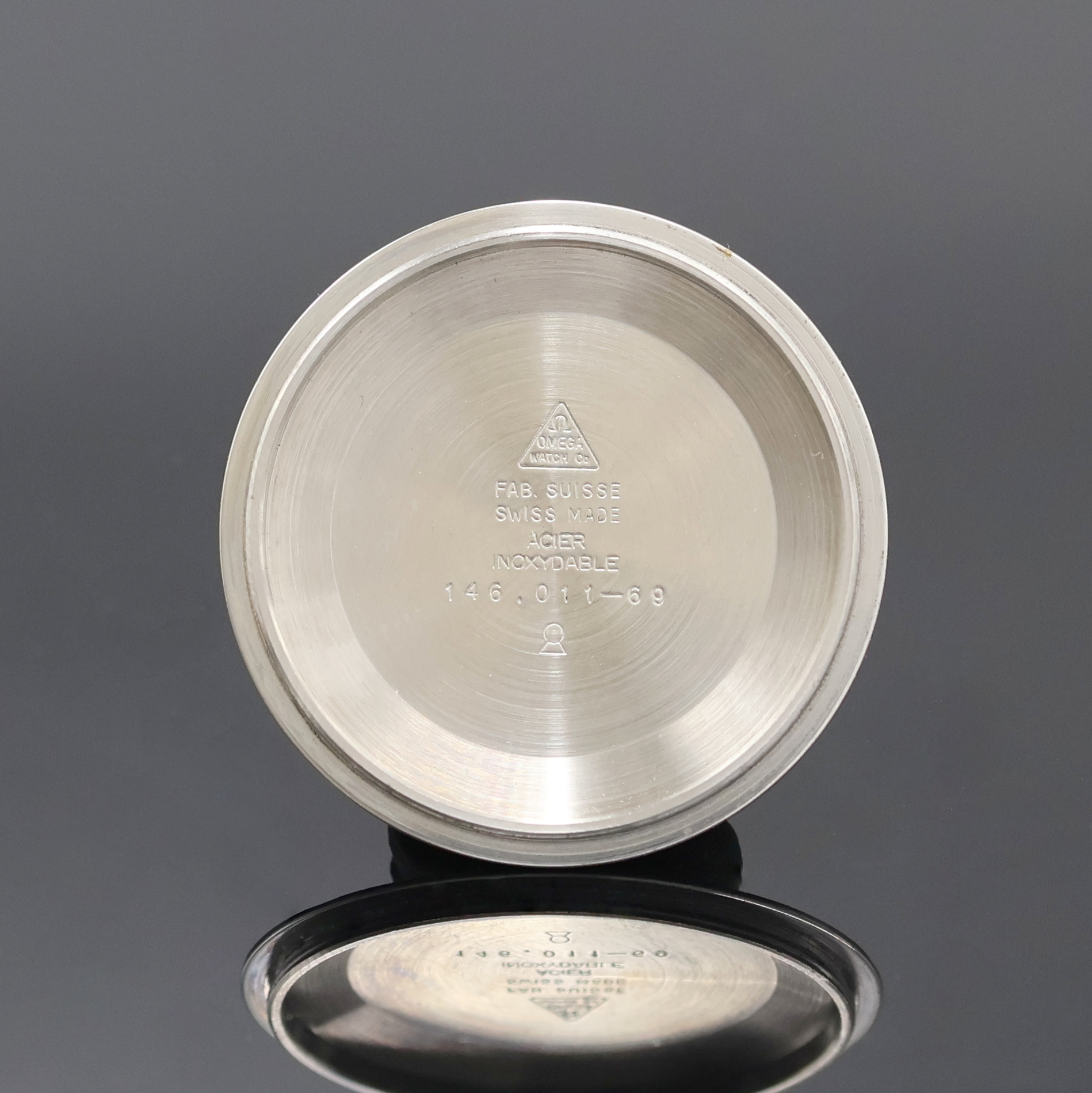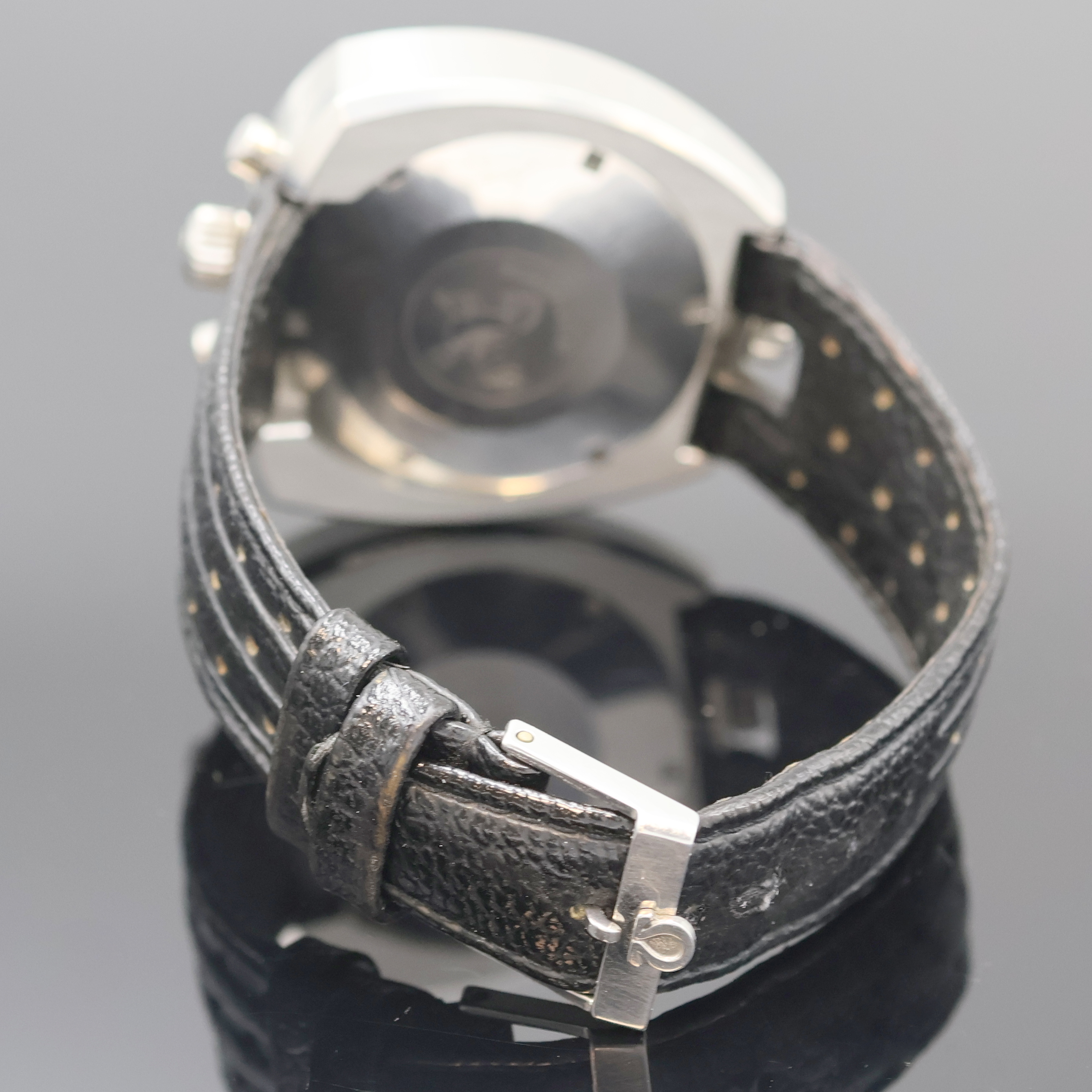 OMEGA seltener Rallye-Armbandchronograph Seamaster "Bullhead"" Referenz 146.011-69, Handaufzug, Schweiz um 1969, trapezförmiges Edelstahlgeh. inkl. Lederband m. orig. Dornschl., verschr. Boden m. Seepferdchen- Darstellung, braun/beiges Zifferblatt m. Tritium-Blockindizes, 3-farbiger Minutenzähler bei 12, kl. Sek. bei 6, Innenlünette mit 60er Teilung beids. drehb. durch Krone bei 6, Werk rotverg., 17 St., Kal. 930, D. ca. 25 bis 43,5 mm, orig. Glas und Kronen, Überh. empf., EZ 2