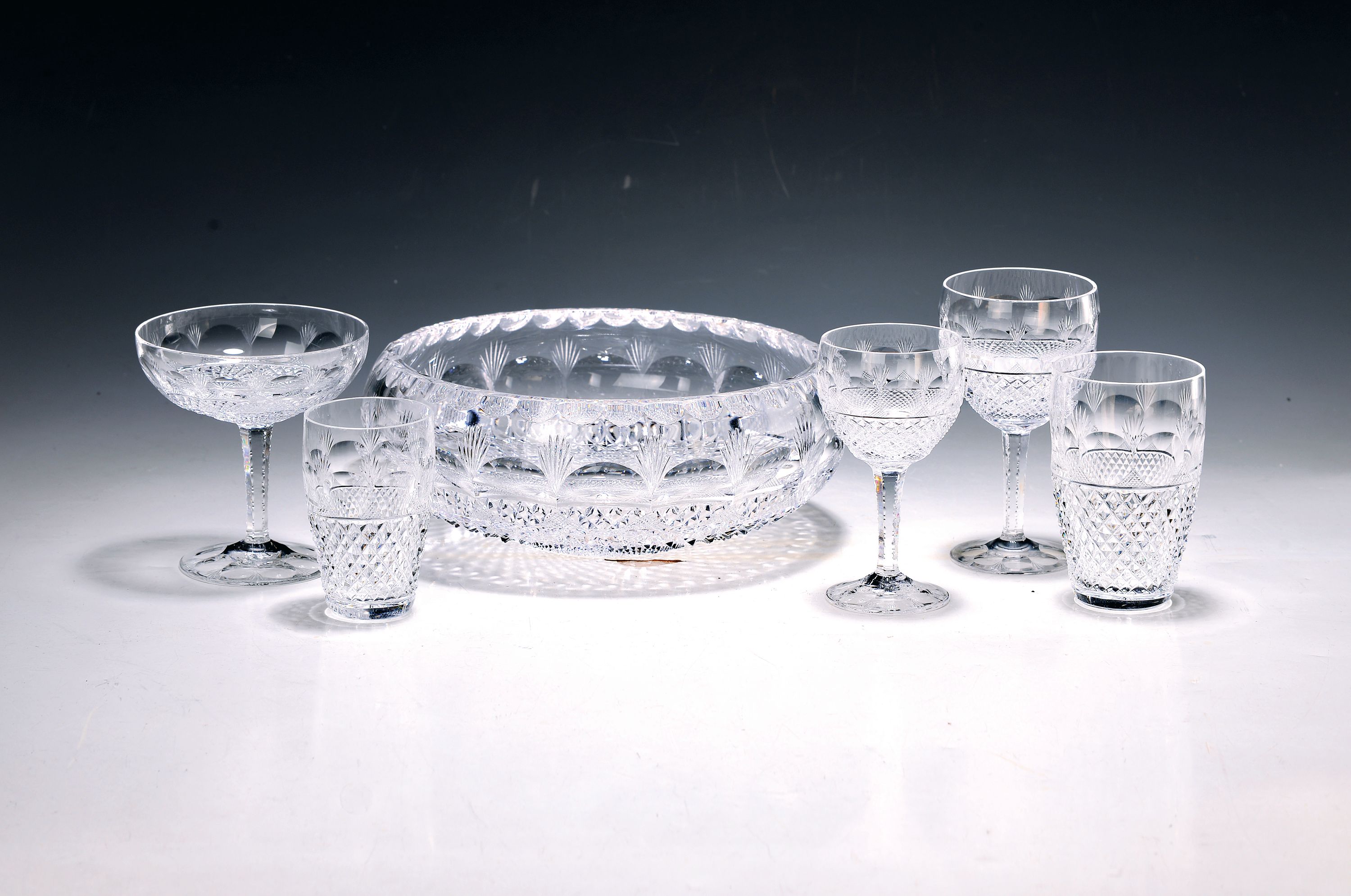 farbloses Kristallglas, geschliffen und geschnitten, 8 Sektschalen, 13 Bier- oder