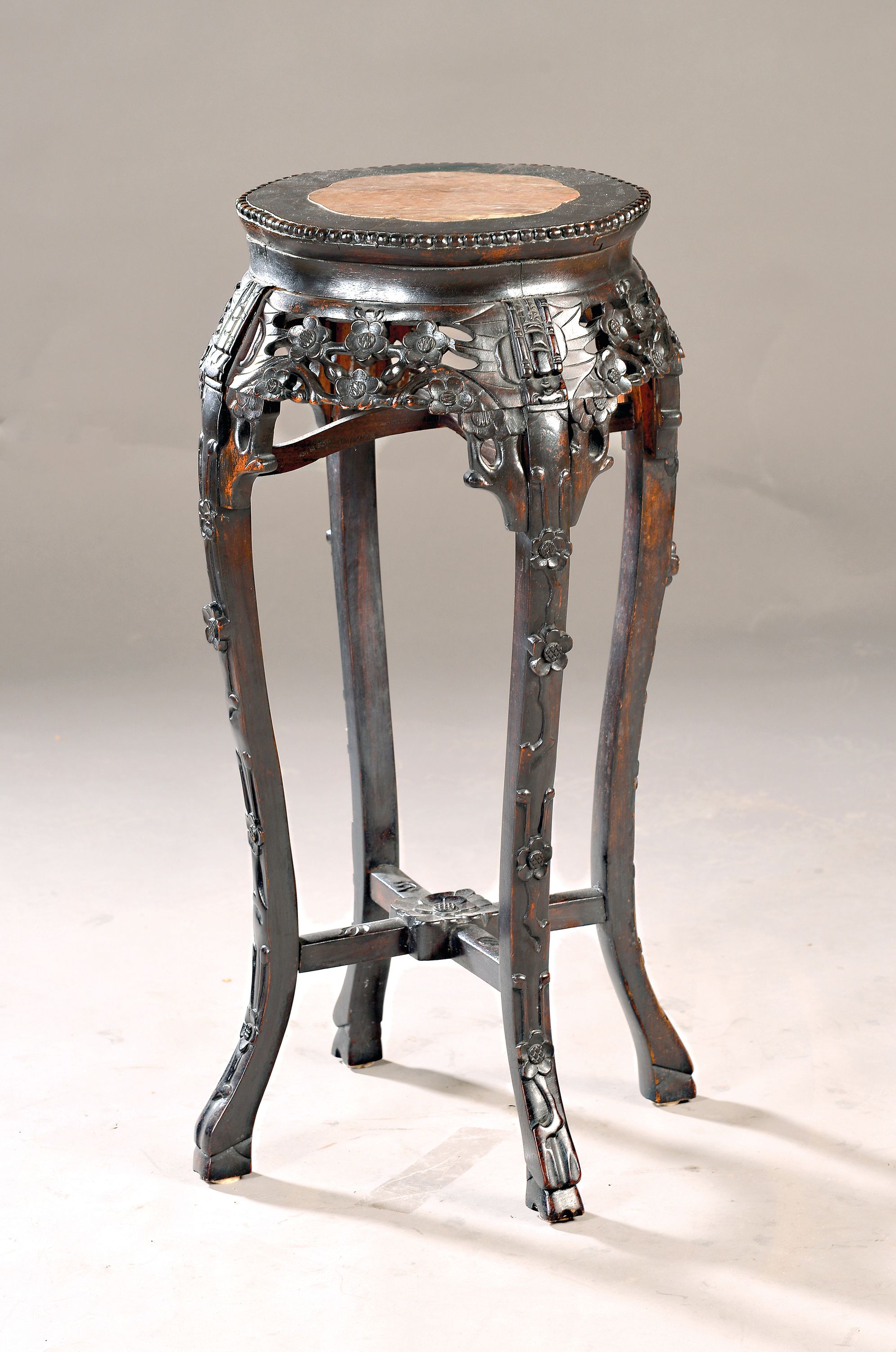 Hocker/Blumenständer, China, Anfang 20. Jh., Holz reich beschnitzt, floraler Dekor,