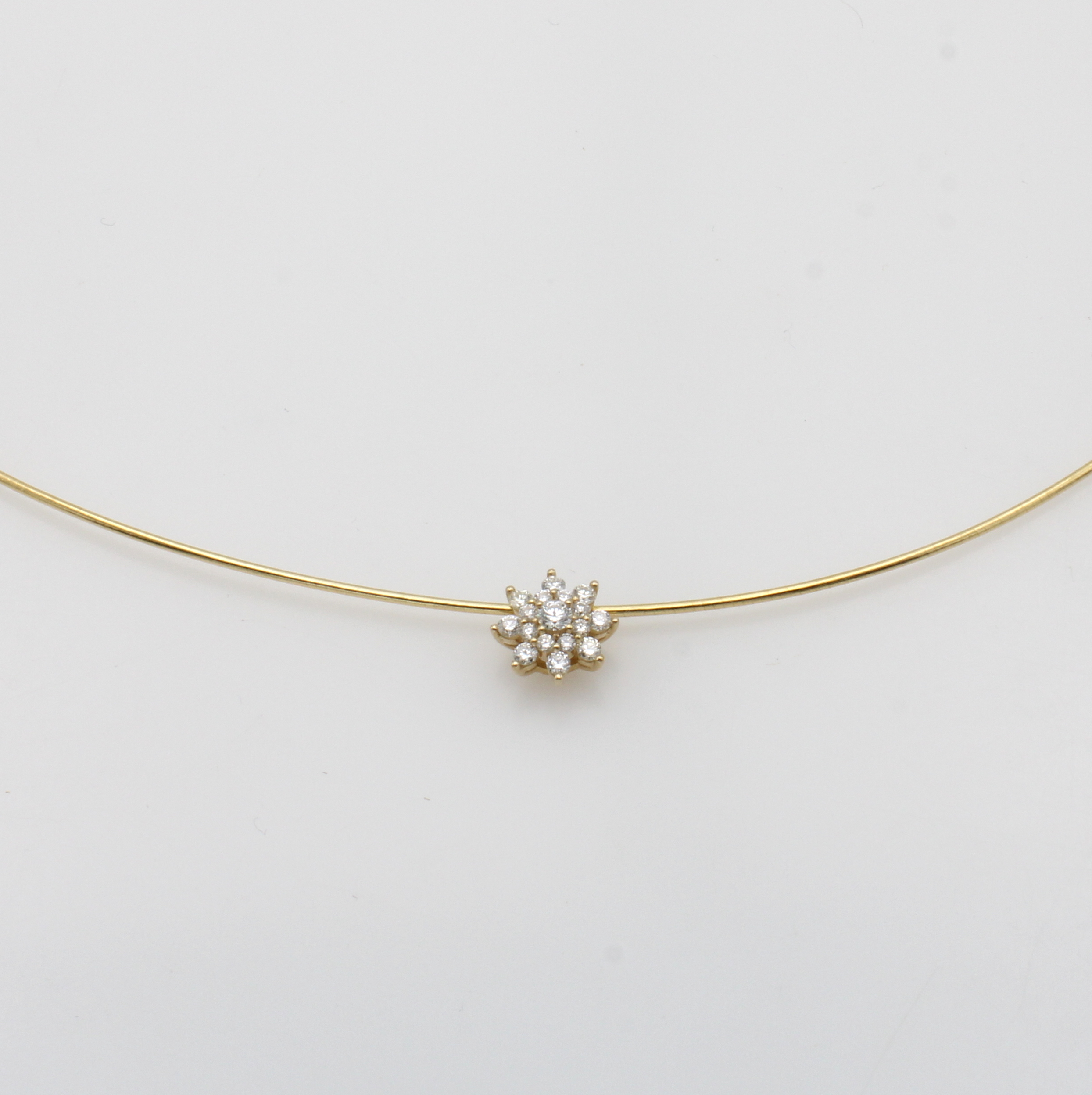 Anhänger mit Brillanten an Omegareif, GG 585/000, Brill. zus. ca. 0.25 ct get.Weiß/ lupenr., anged. Form einer Schneeflocke, L. ca. 45 cm Schätzpreis: 1730, - EUR