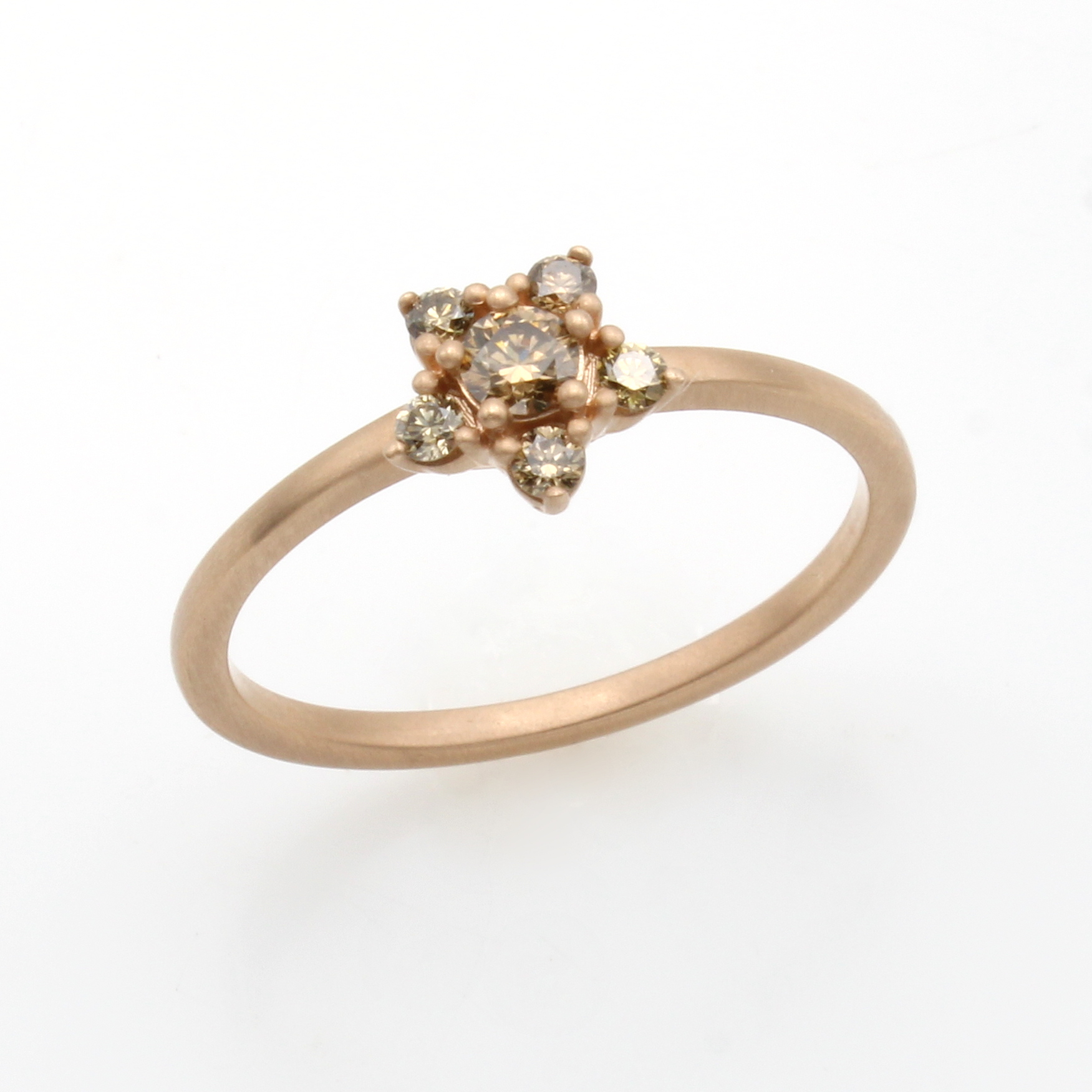 Ring mit Brillanten, RG 585/000, z.T. matt. , sternförm., 6 Brill. zus. ca. 0.25 ct Braun/p, RW ca. 56 Schätzpreis: 930, - EUR