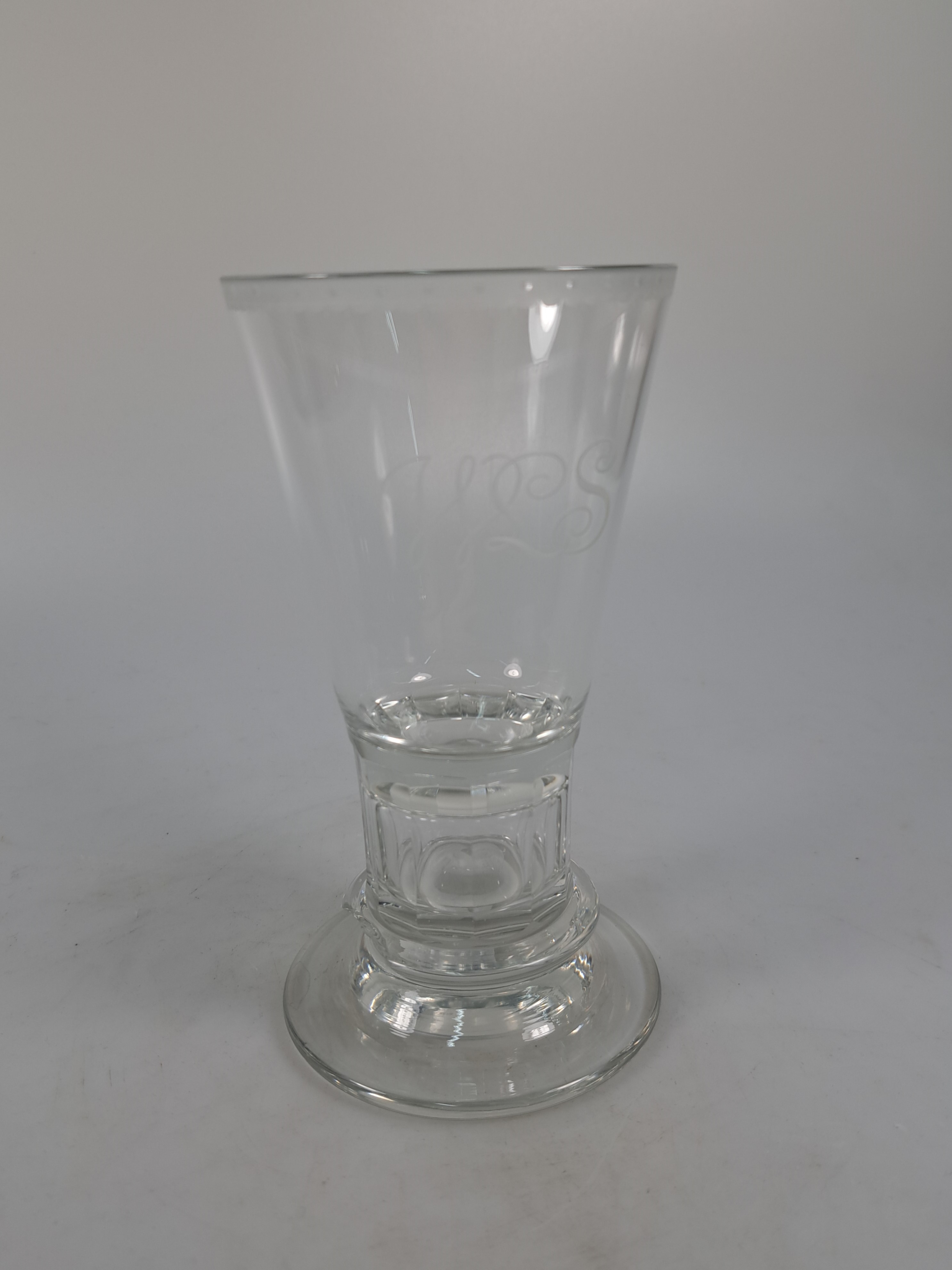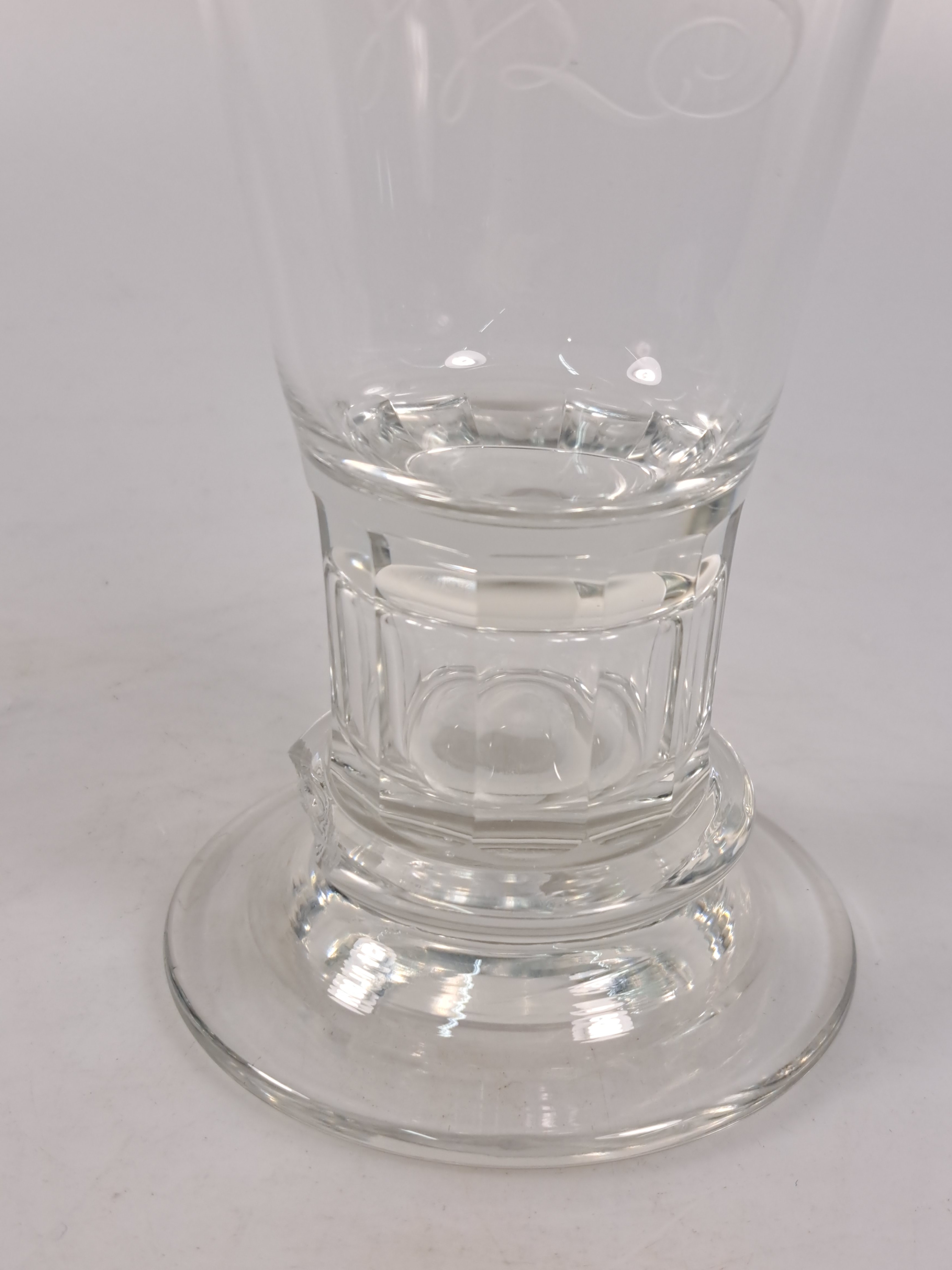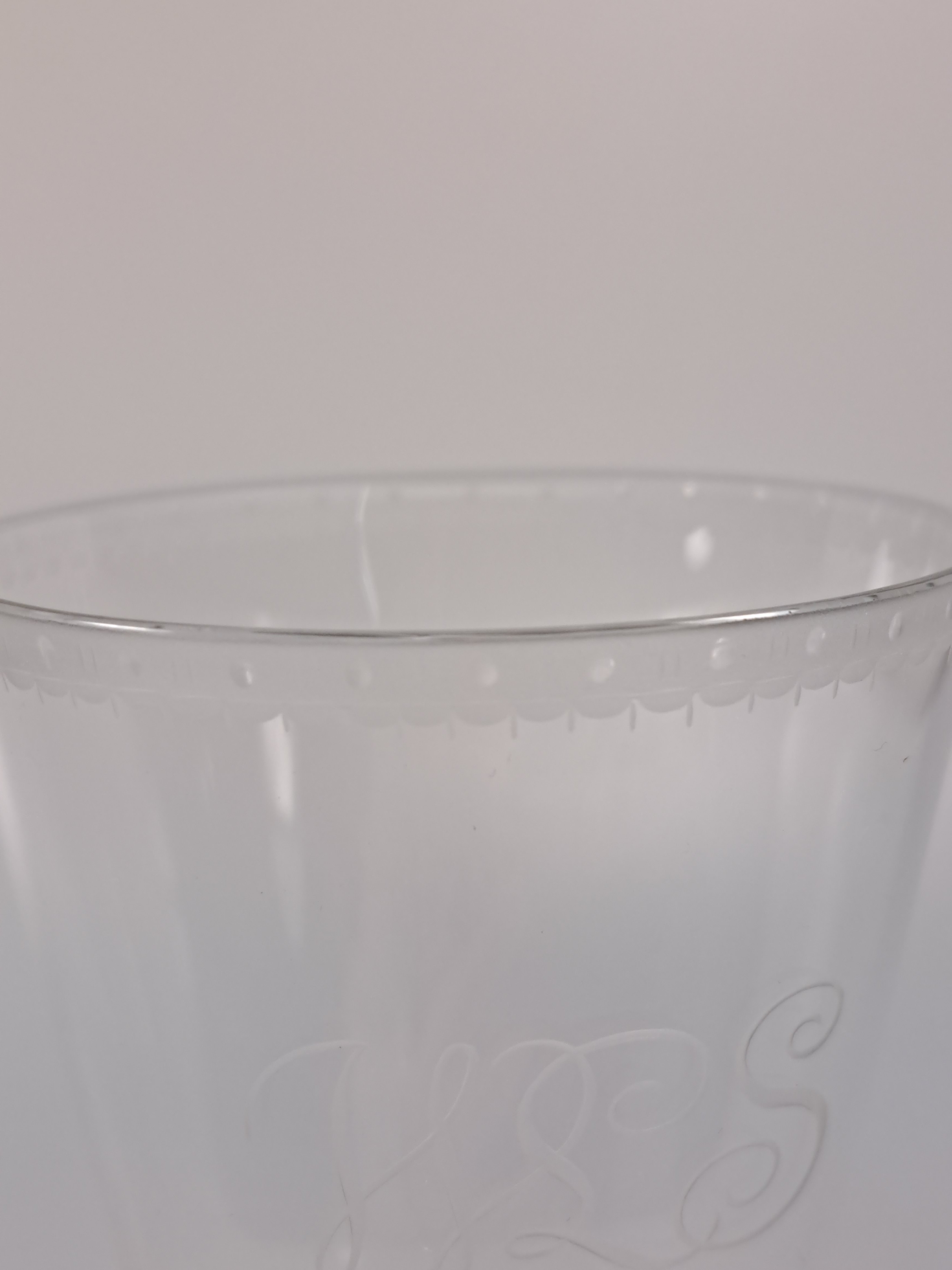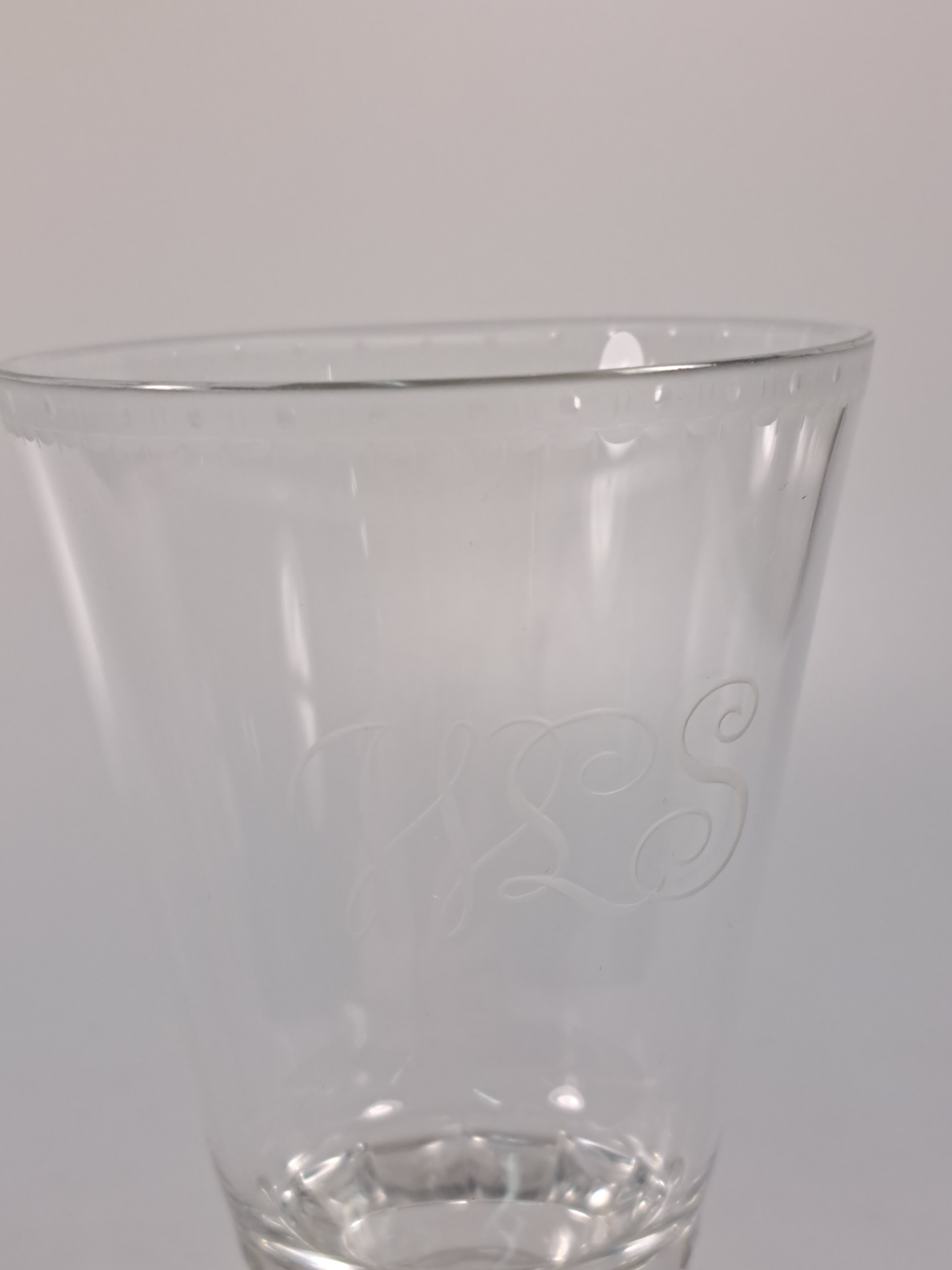 Fuß, Pokalglasform, umlaufende mattierte Bordüre, monogrammiert, best.aus Gläser