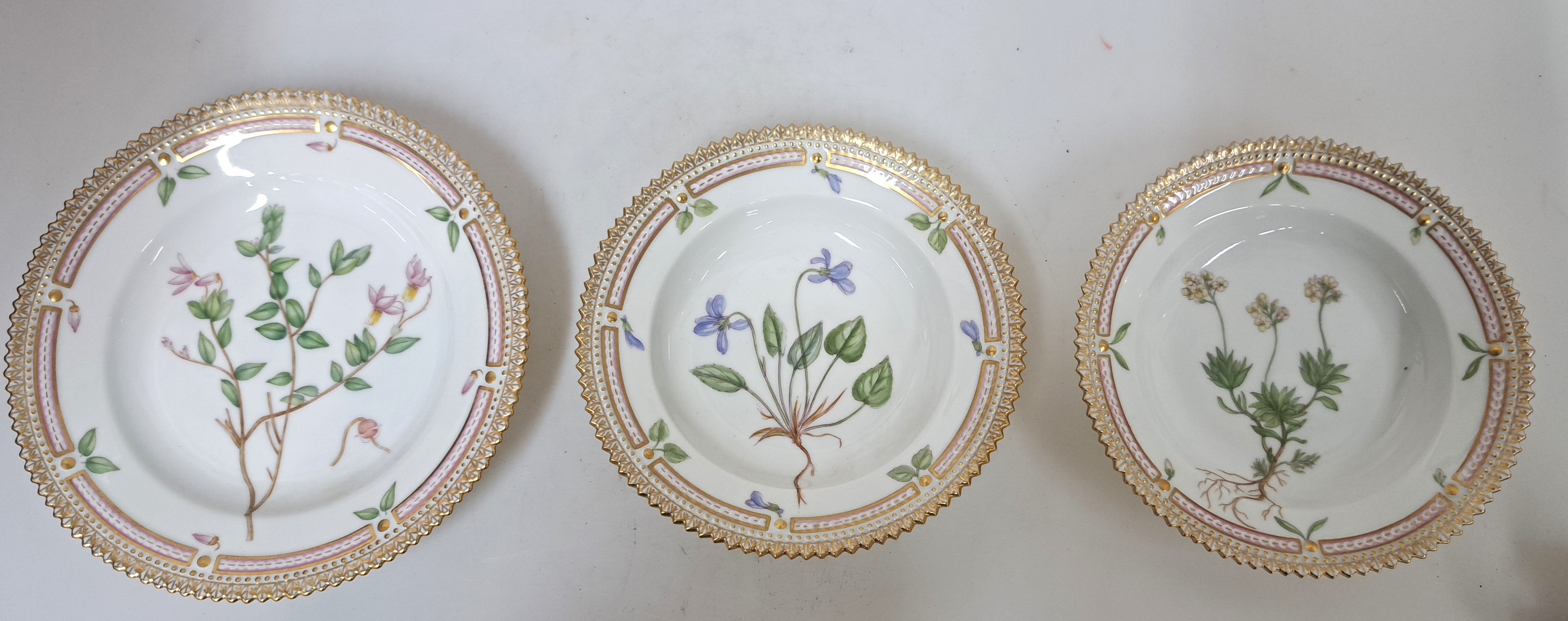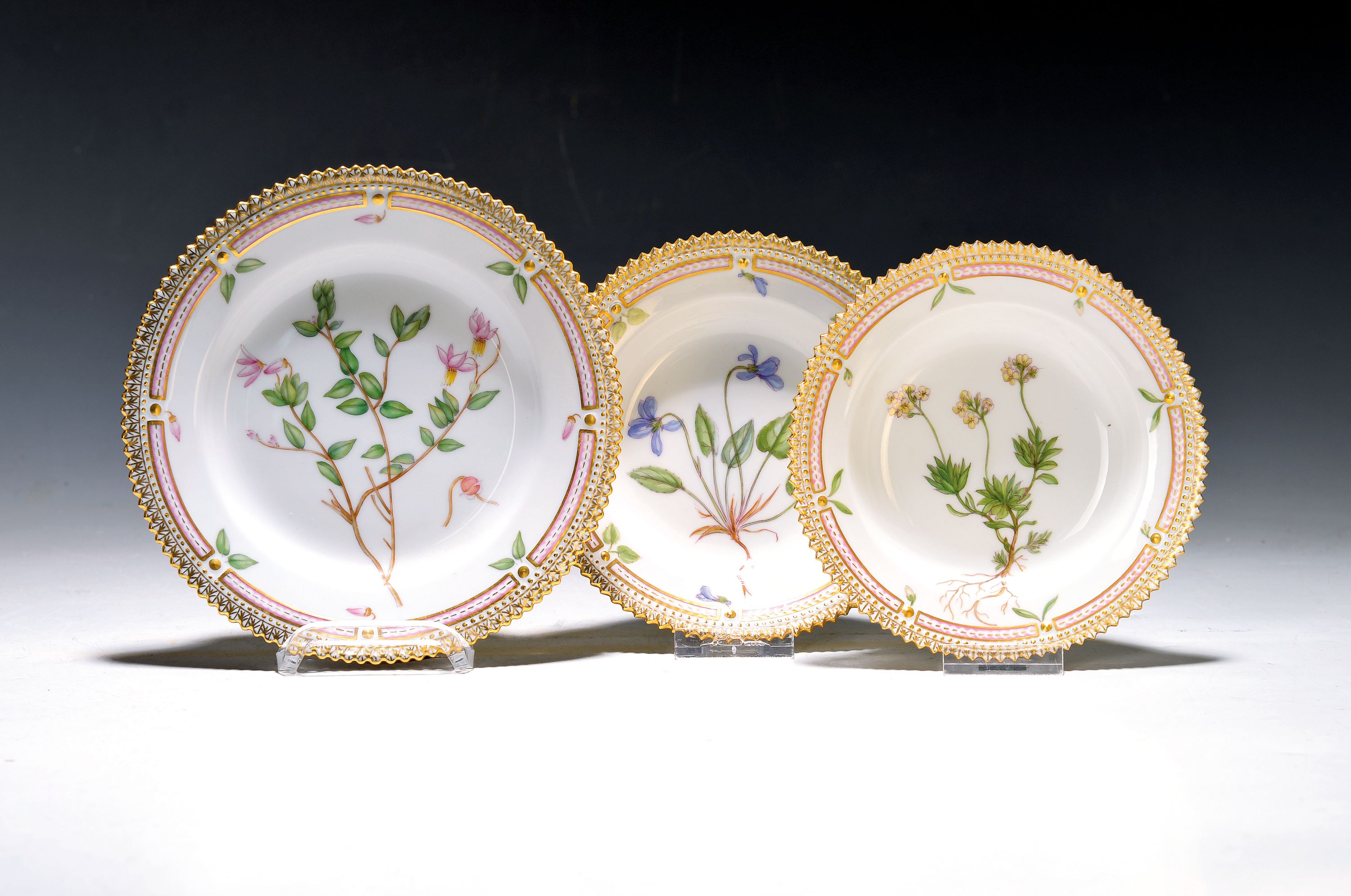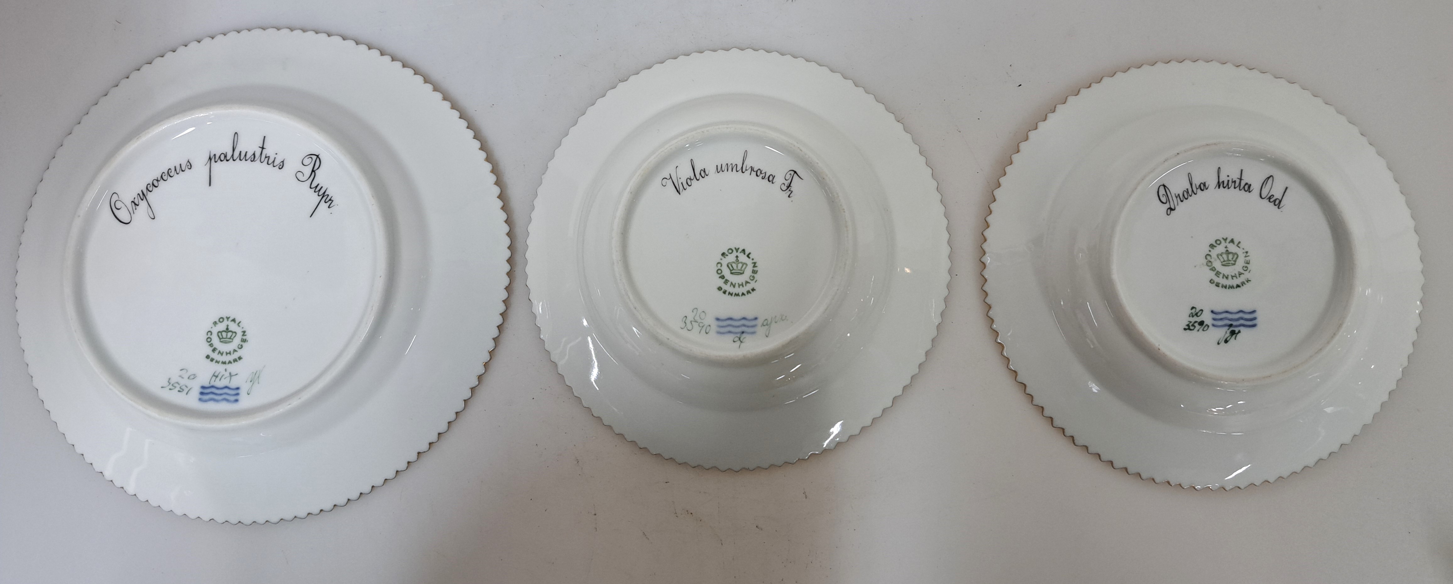 3 kleine Teller, Royal Copenhagen, Flora Danica, Viola umbrosa; Draba Hirta Oed.