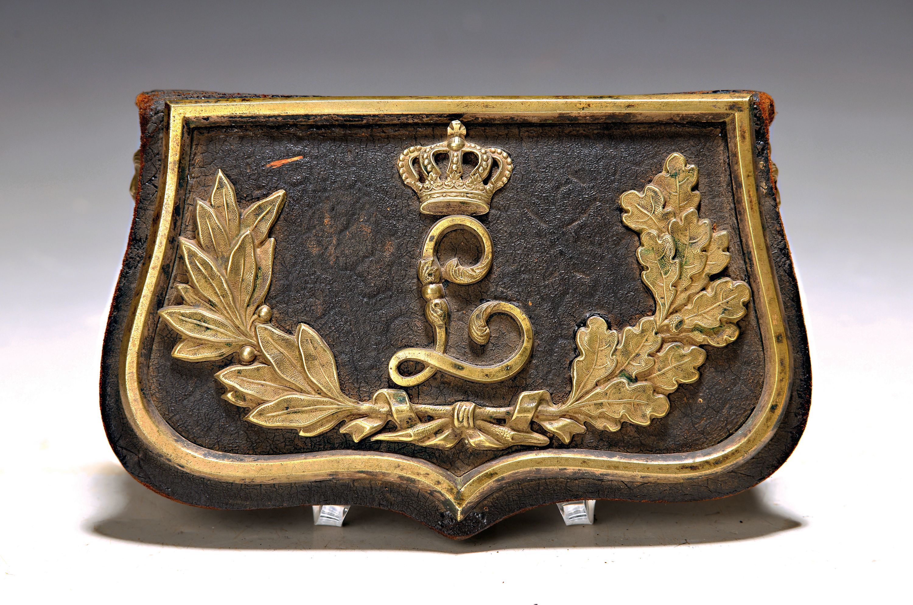 Kartuschkasten, Hessen Darmstadt, 20. Jh., Leder bezogen, gekröntes L über Lorbeer-