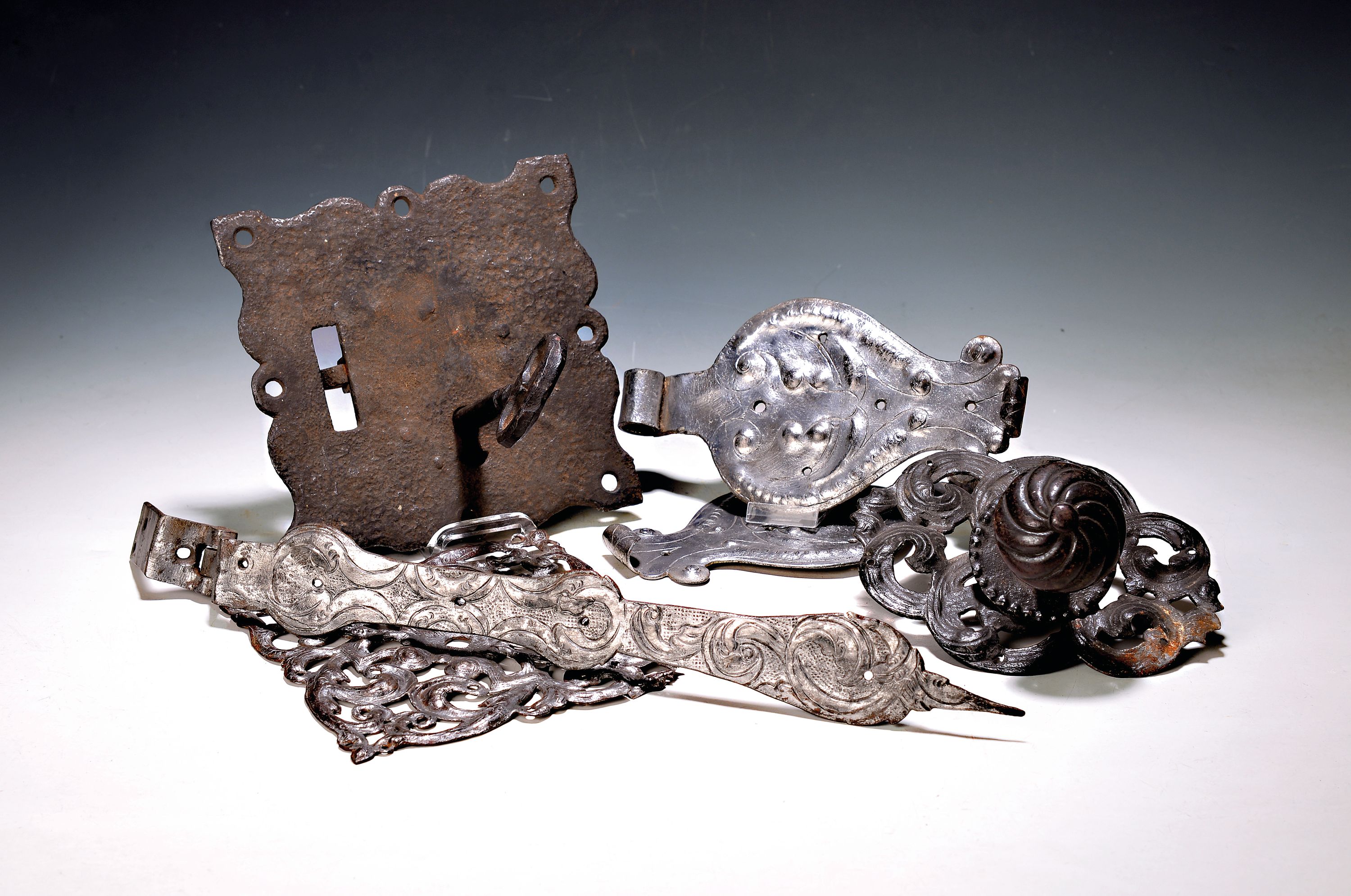 Renaissanceschloss und 8 Beschläge für Türen und Schränke, 17-19. Jh., Eisen