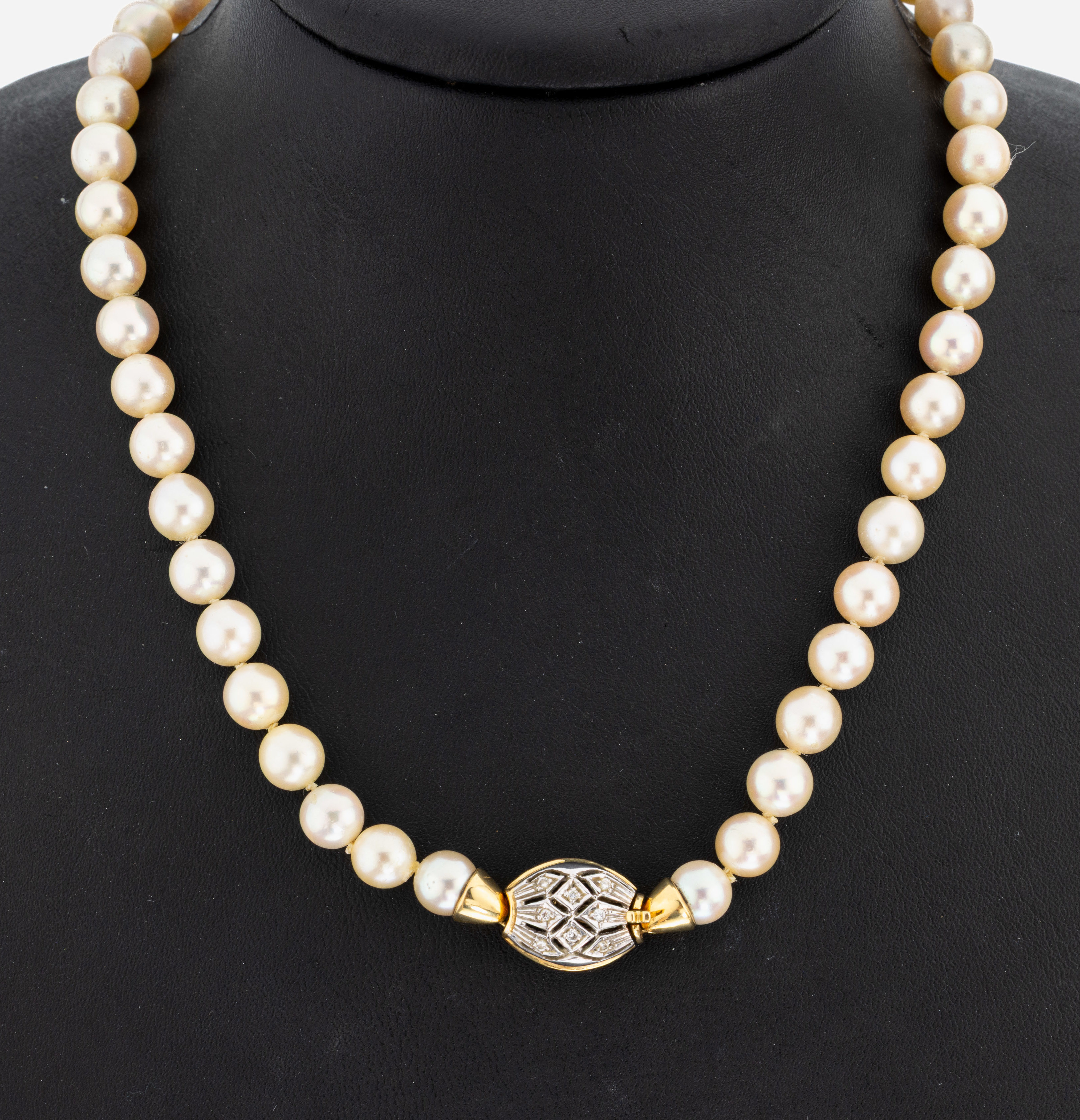 Perl-Collier mit 18 kt Gold Brillant -Schmuckschließe, GG/WG 750/000, Zuchtperlen,