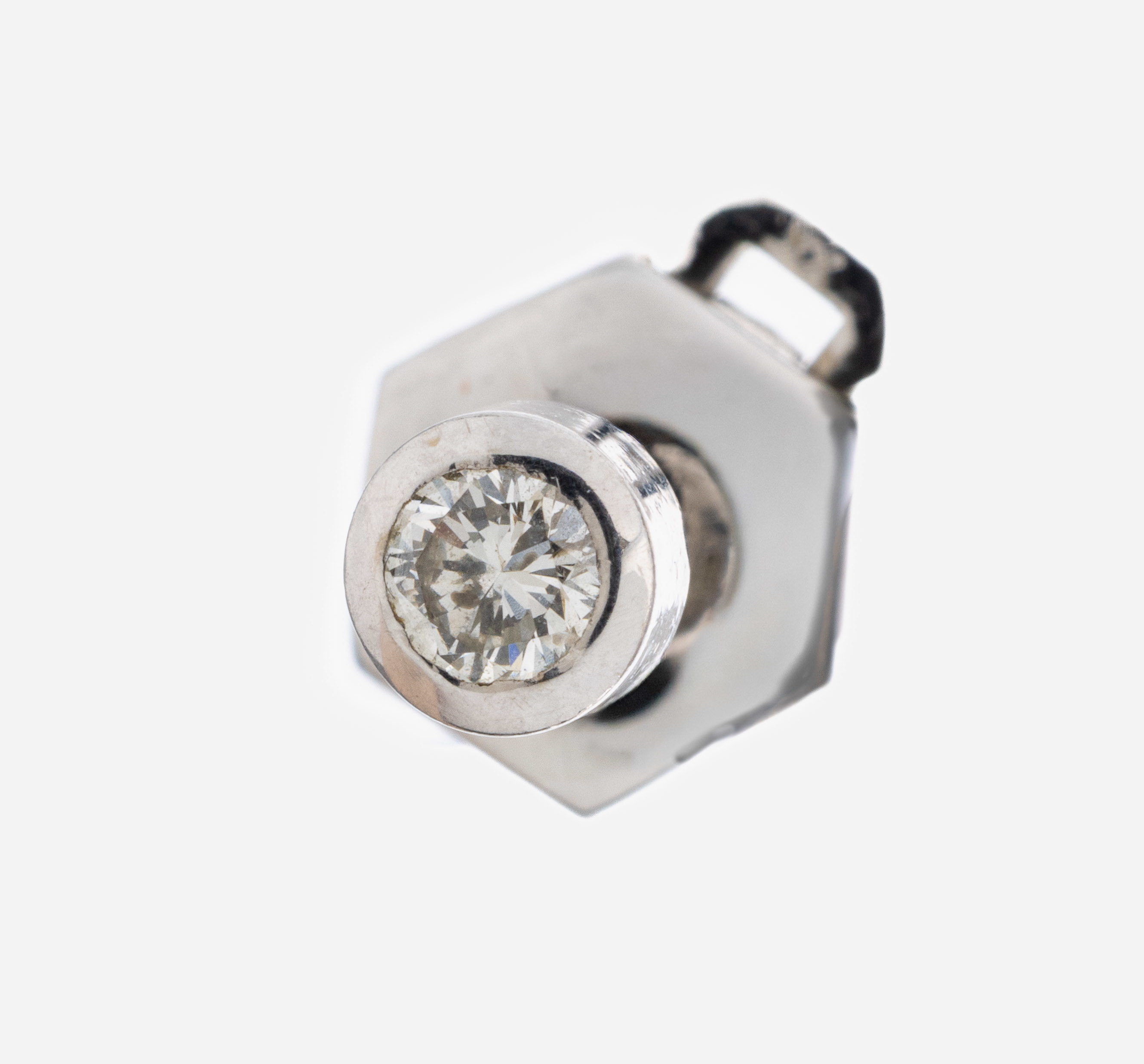 Einzelner 14 kt Gold Brillant-Ohrstecker, WG 585/000, Brillant in Zargenfassung ca.