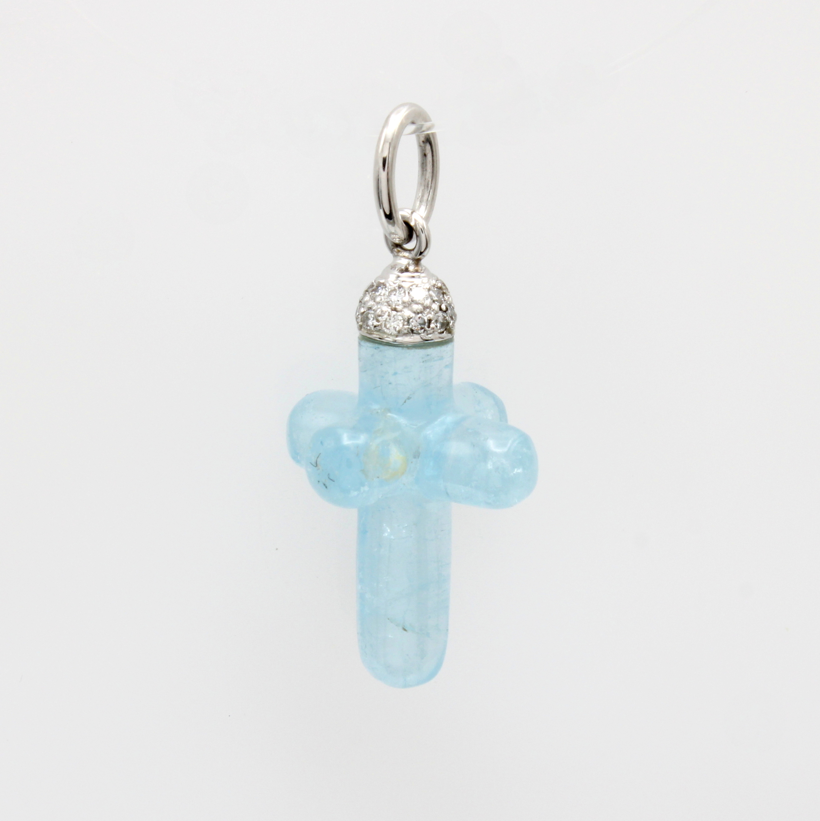 Rundstabkreuz aus Topas und Brillanten, WG 750/000, aus einem Topas geschnitten ca. 10.45 ct (beh.), Brill. zus. ca. 0.07 ct feines Weiß/si
