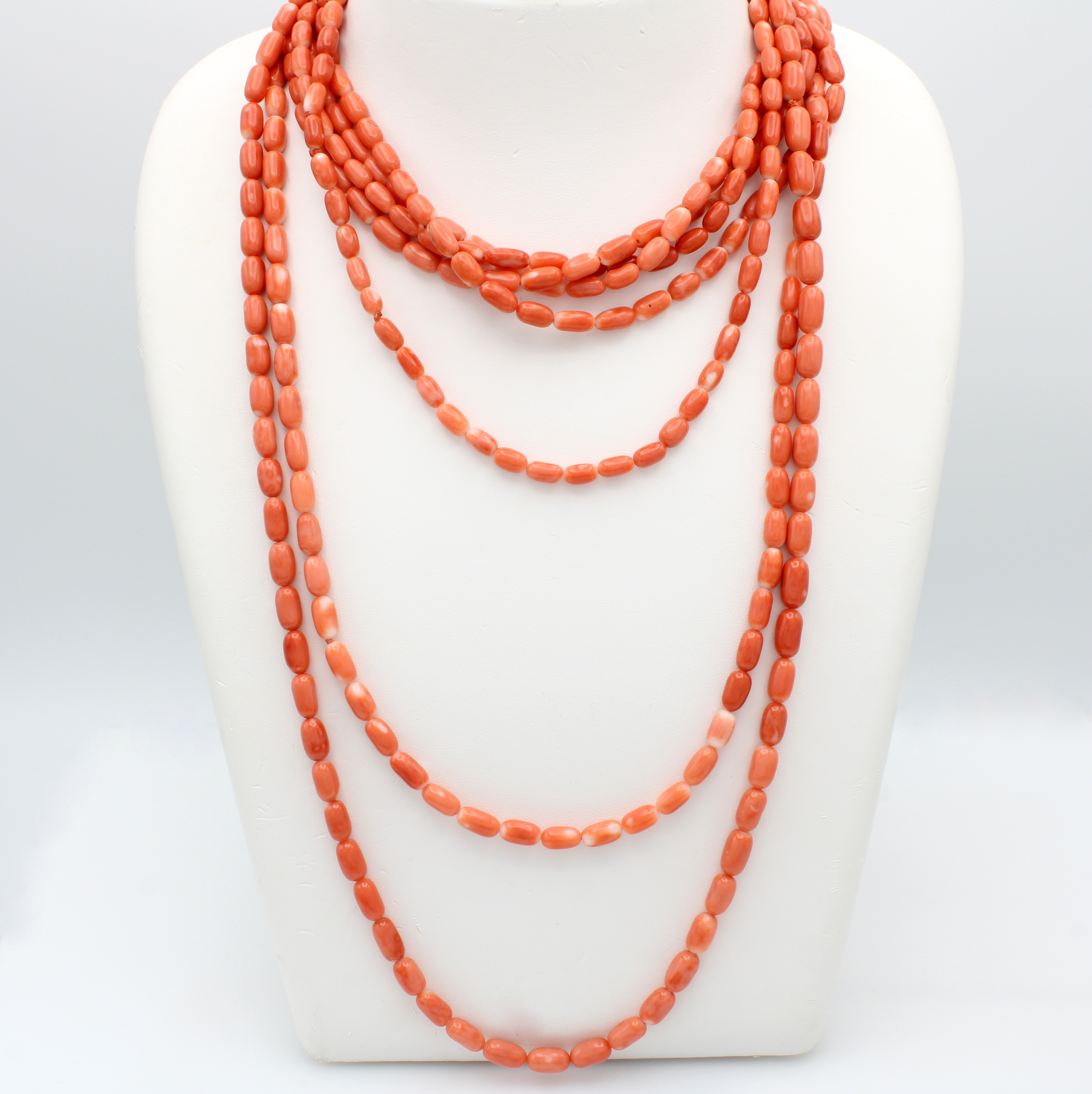 Überlange Korallkette, feine Sardegna Korall-linsen, L. 360 cm, mehrreihig zu tragen, Versand nur innerhalb der EU