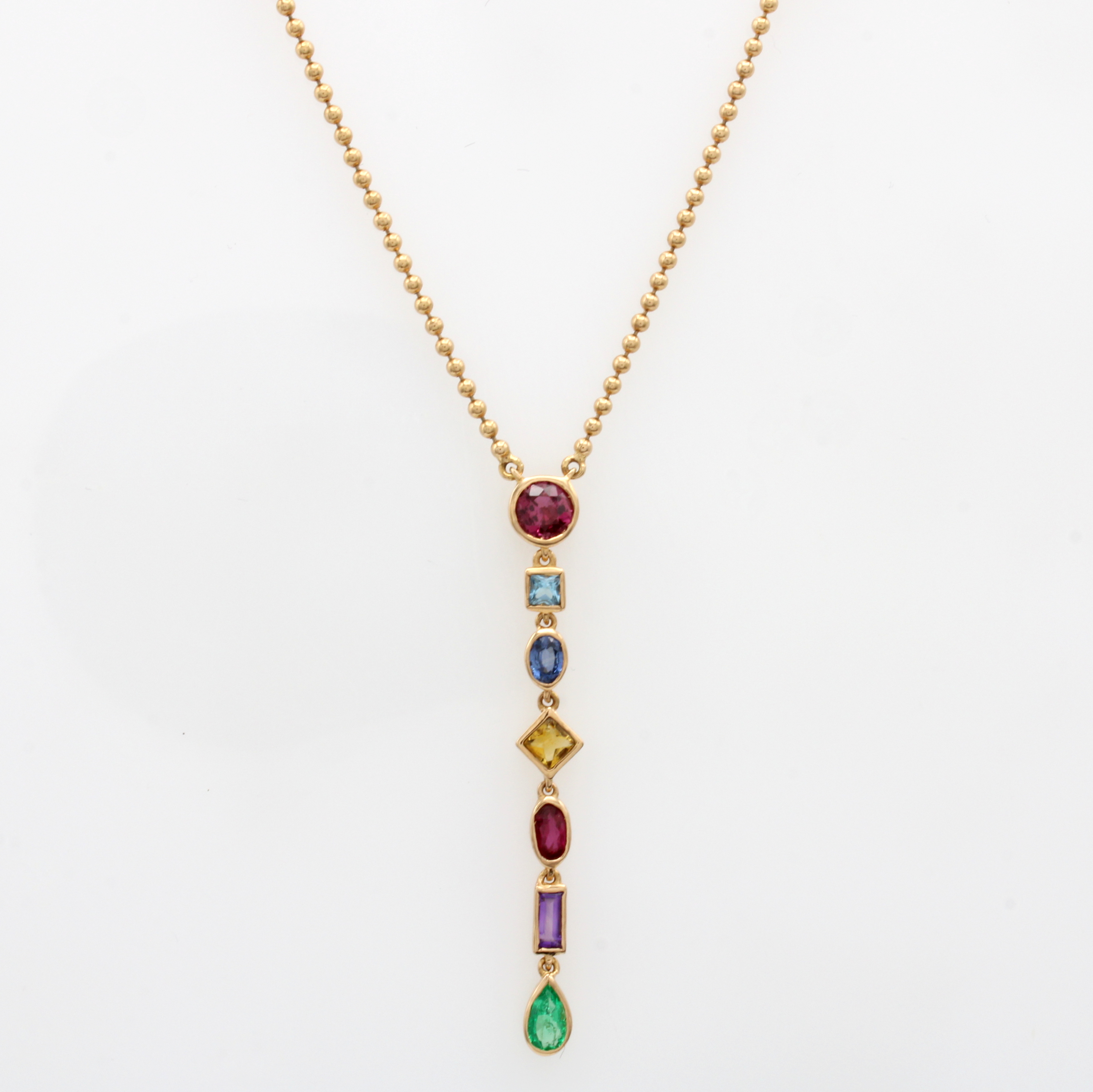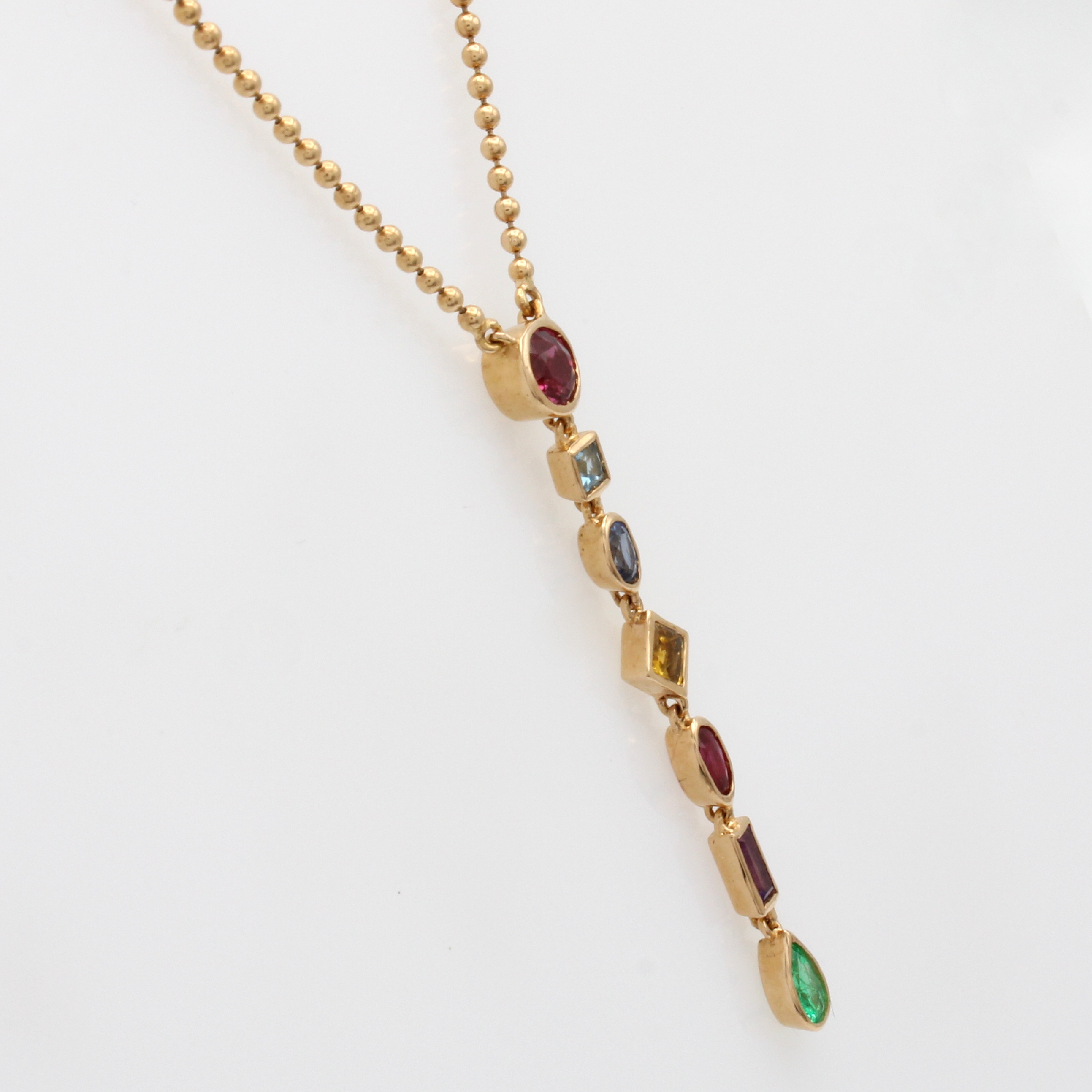 Collier mit Farbsteinen, RG 750/000, Rubine zus. ca. 1.01 ct, Saphir ca. 0.24 ct,