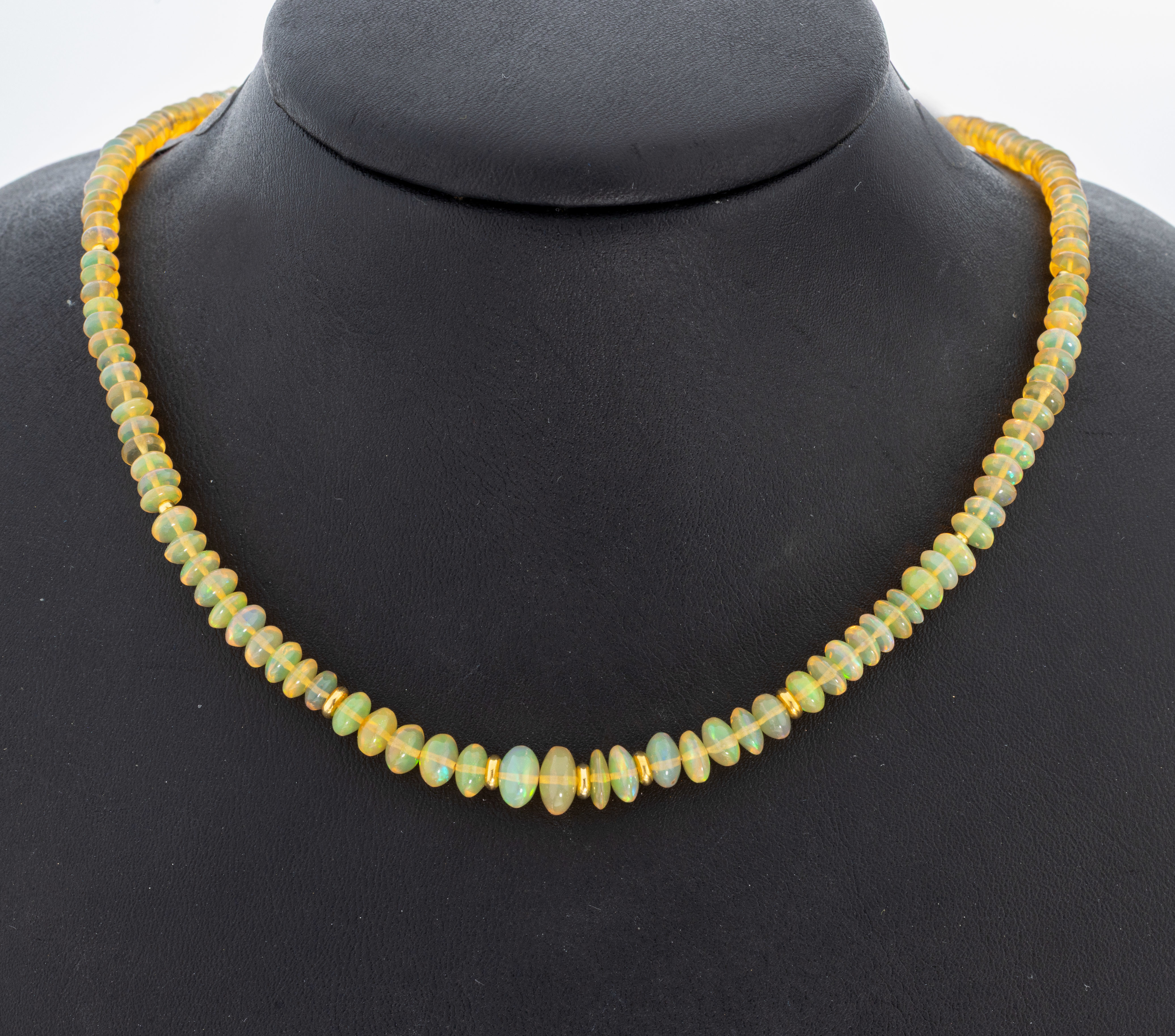 Opal-Collier, äthiopische Opal-Linsen im Verlauf, D. ca. 3.6-7.6 mm, Zwischenglieder