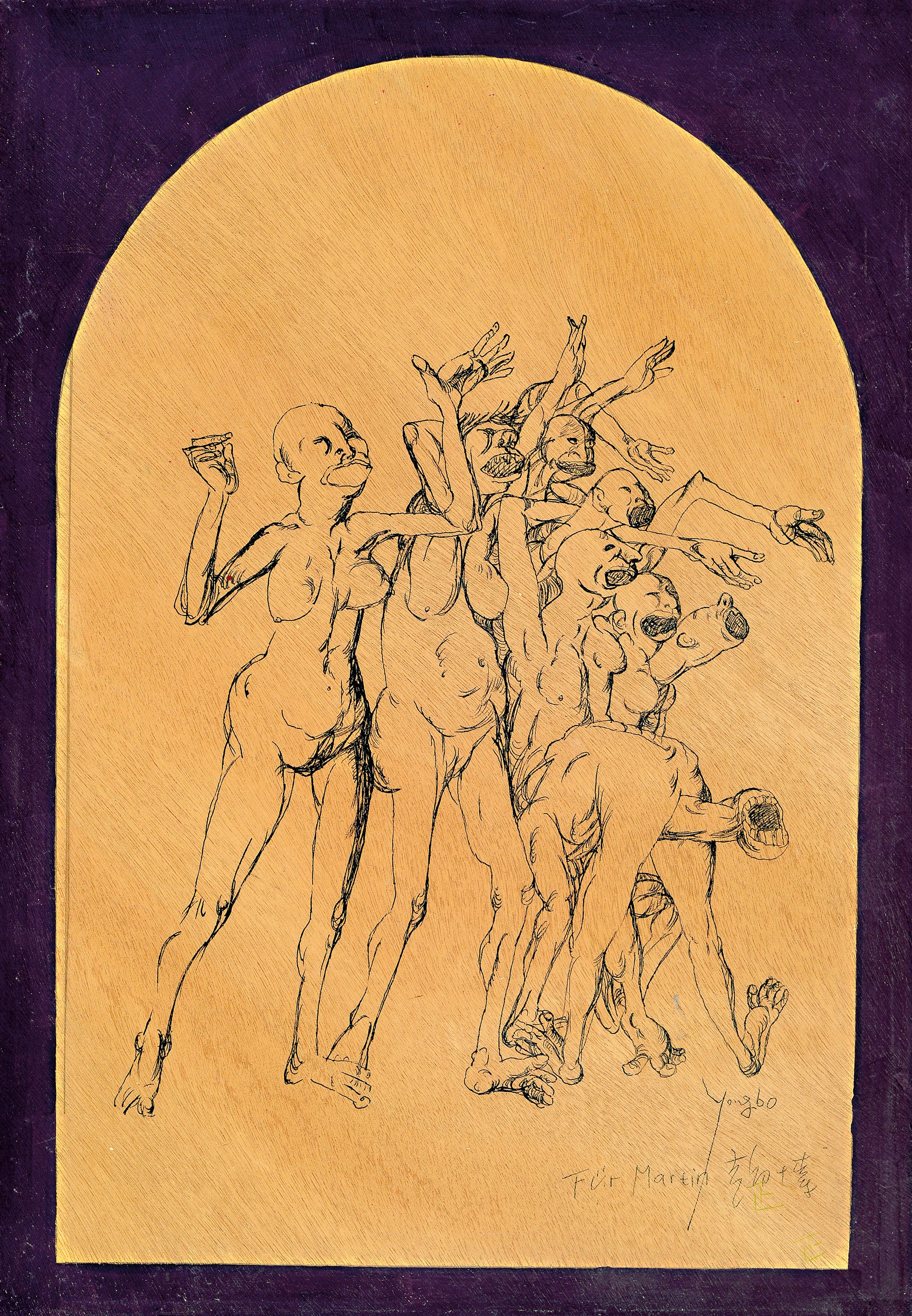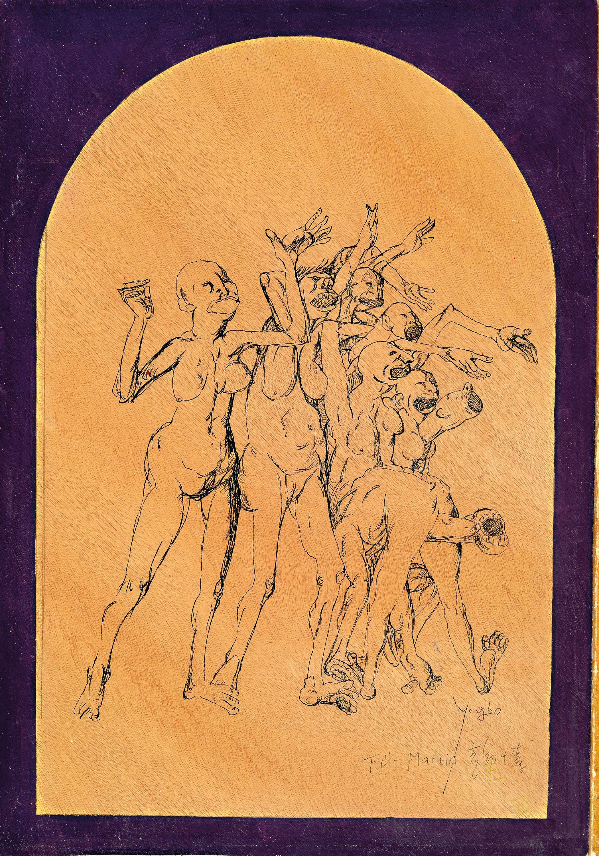 Yongbo Zhao, geb. 1964 Hailong/China, Bleistiftskizze auf Holzplatte, Komposition