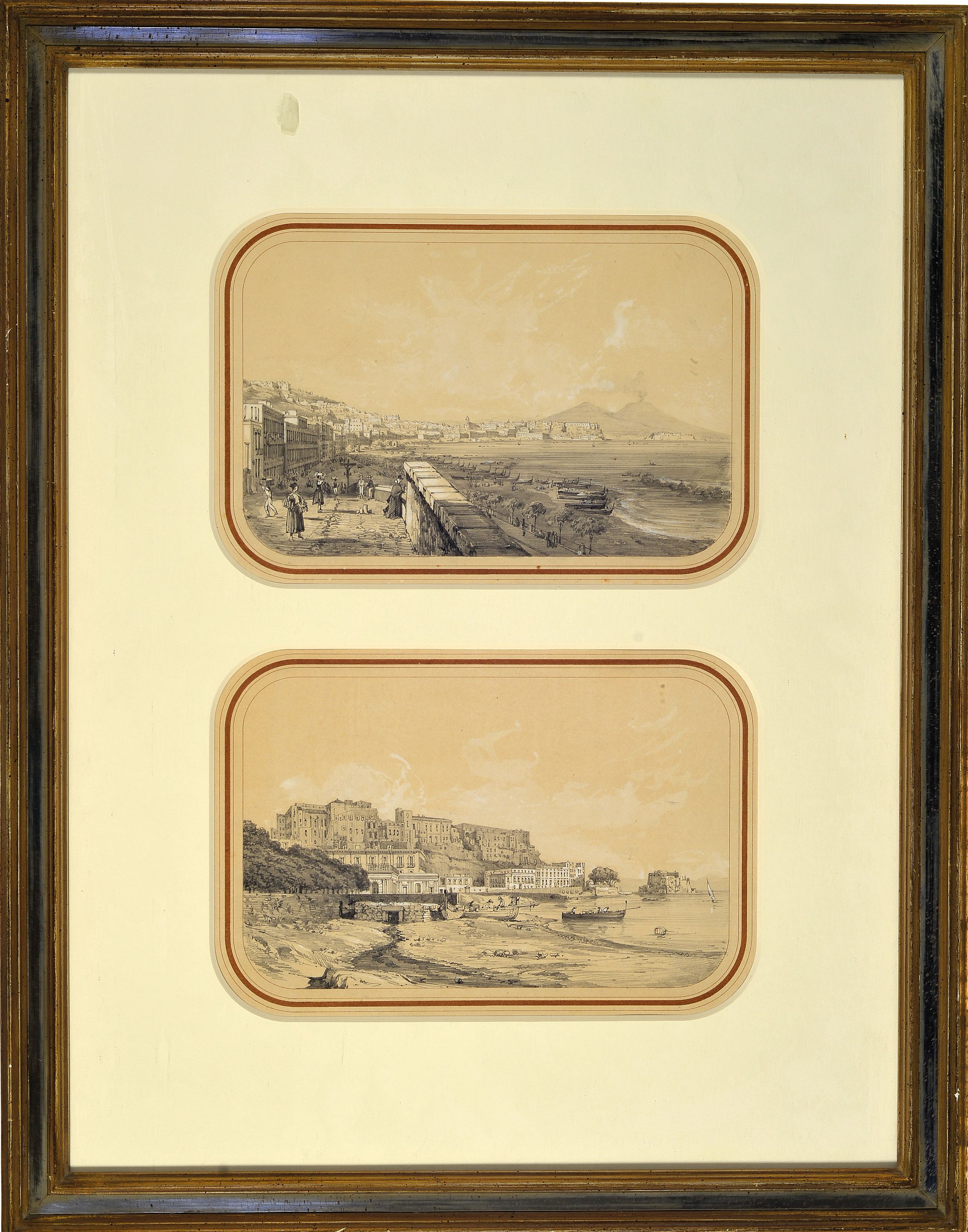 des Golf von Neapel, "Neapel 1857" und "Die Chiatamone in Neapel 1856", verso bez.