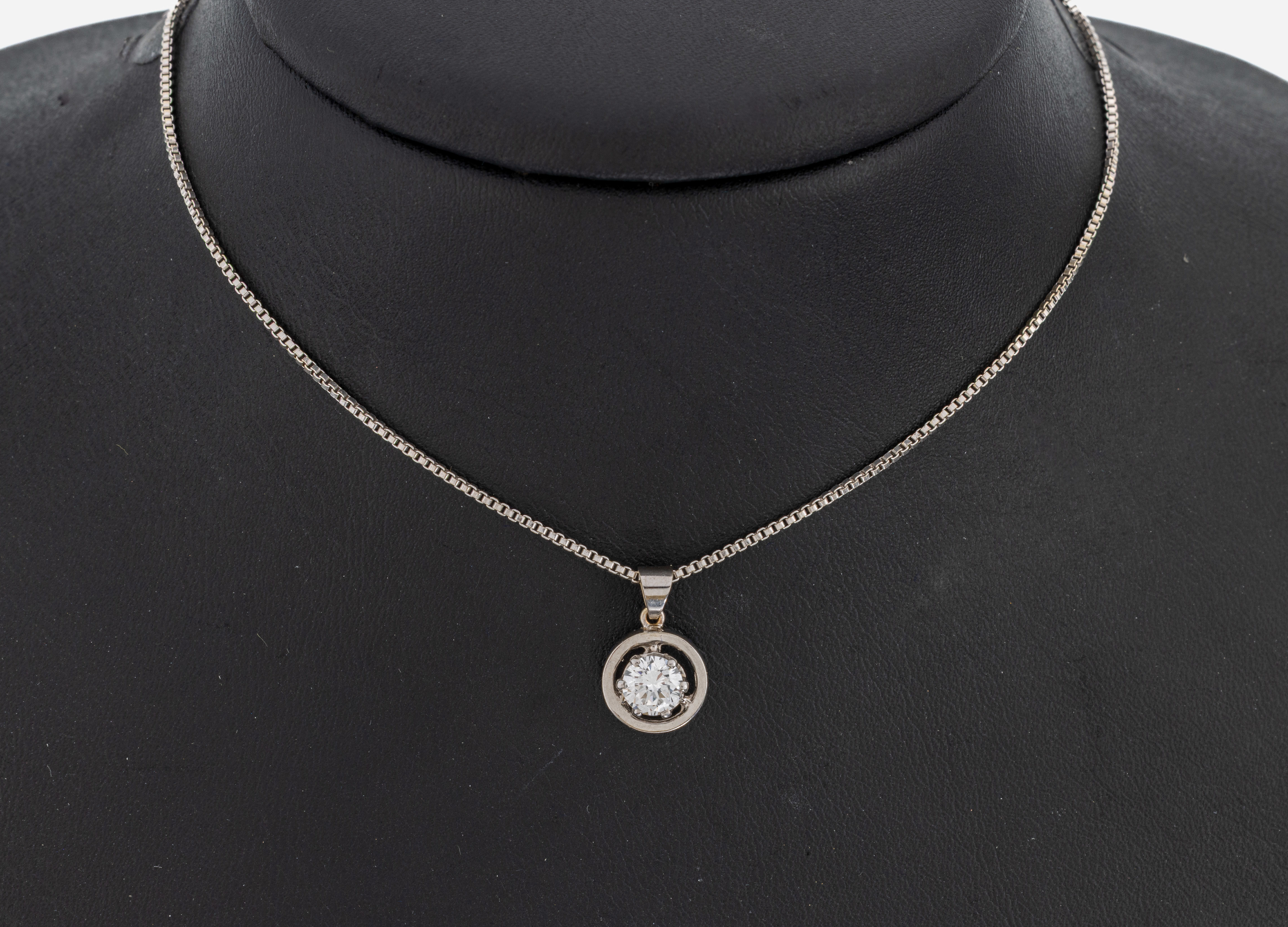 14 kt Gold Brillant-Anhänger, WG 585/000, Brillant ca. 0.60 ct feines Weiß/si,