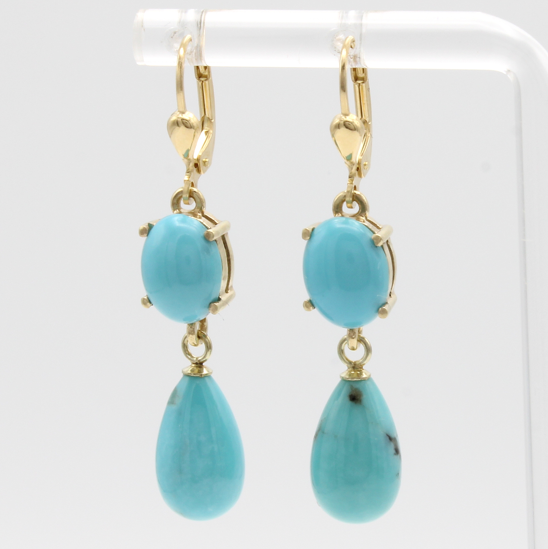 Paar Ohrgehänge mit Türkisen, GG 585/000, ovale u. pampelf. Türkise, bewegl. gearb. Schätzpreis: 1060, - EUR