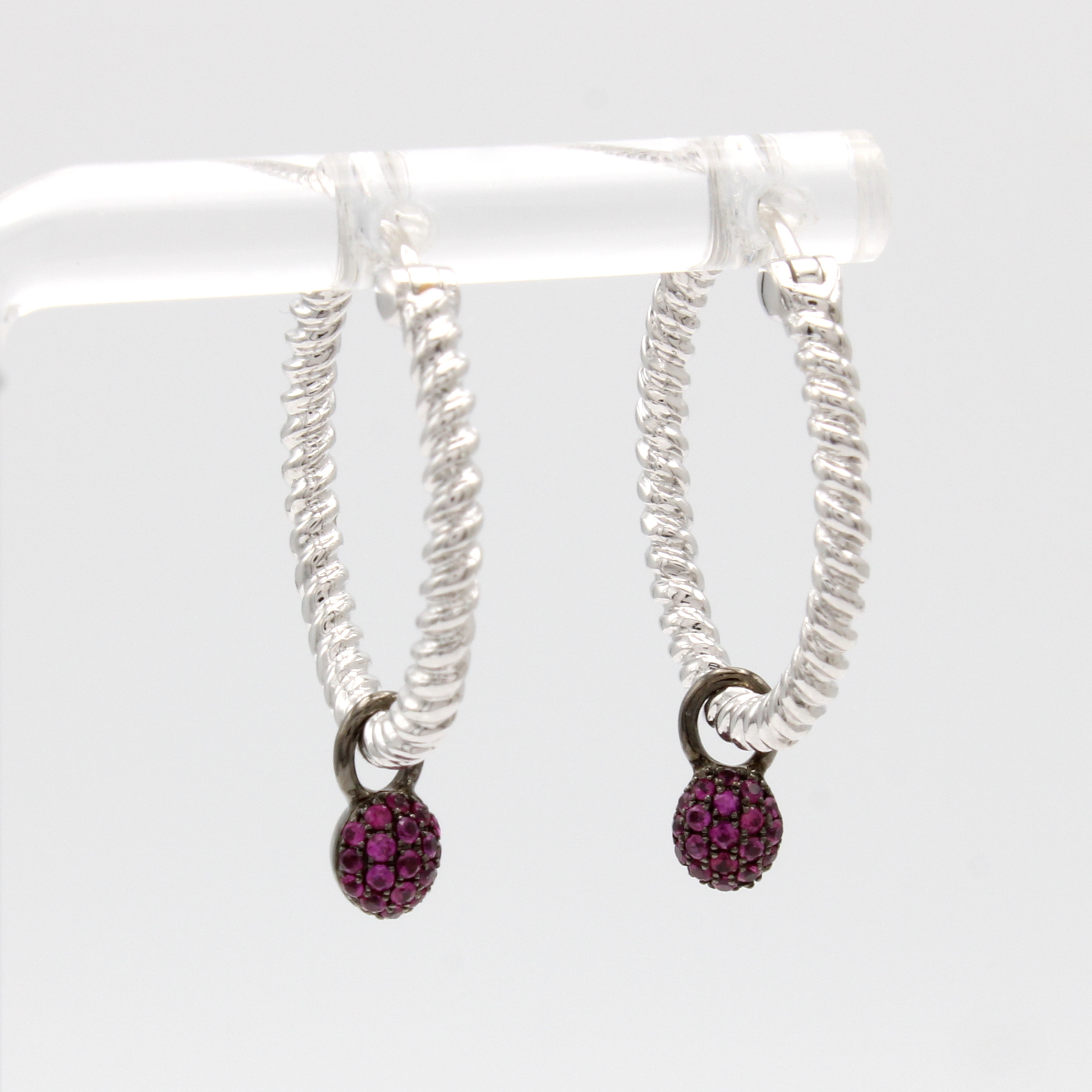 Paar Creolen mit Einhängern, WG 750/000, z. T. geschwärzt, Einhänger bes. m. Rubinen zus. ca. 0.20 ct, abnehmbar