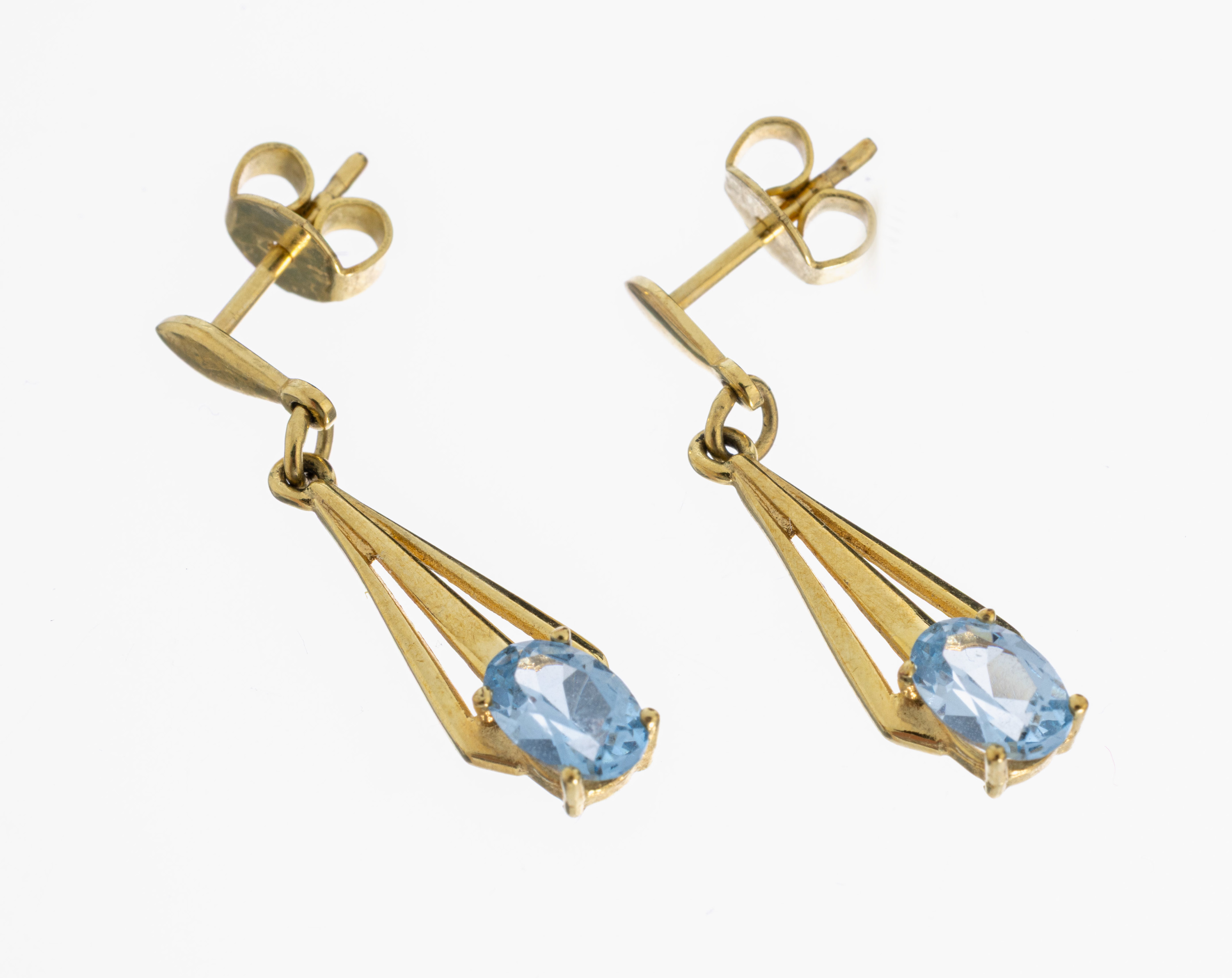 Paar 8 kt Gold Topas-Ohrstecker, GG 333/000, längliche bewegl. Abhängung, 2 ovalfacett.