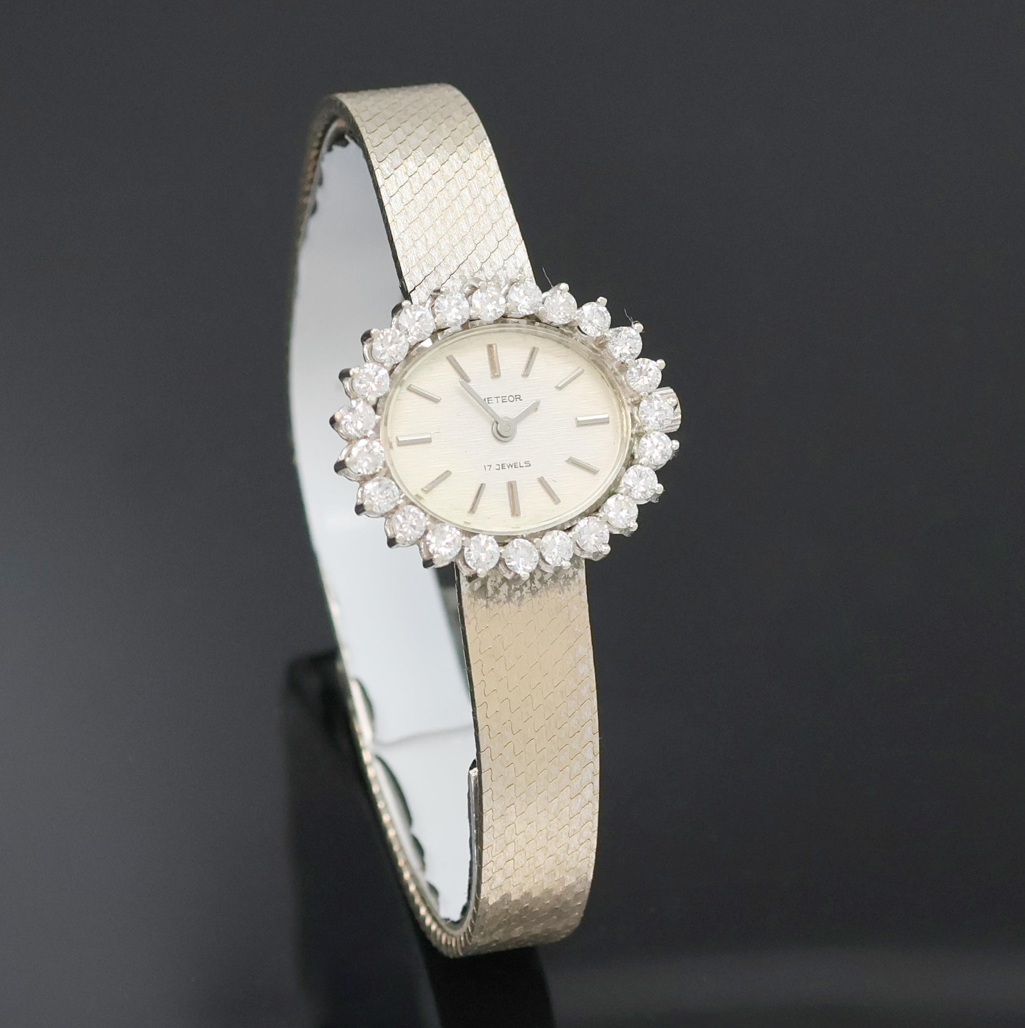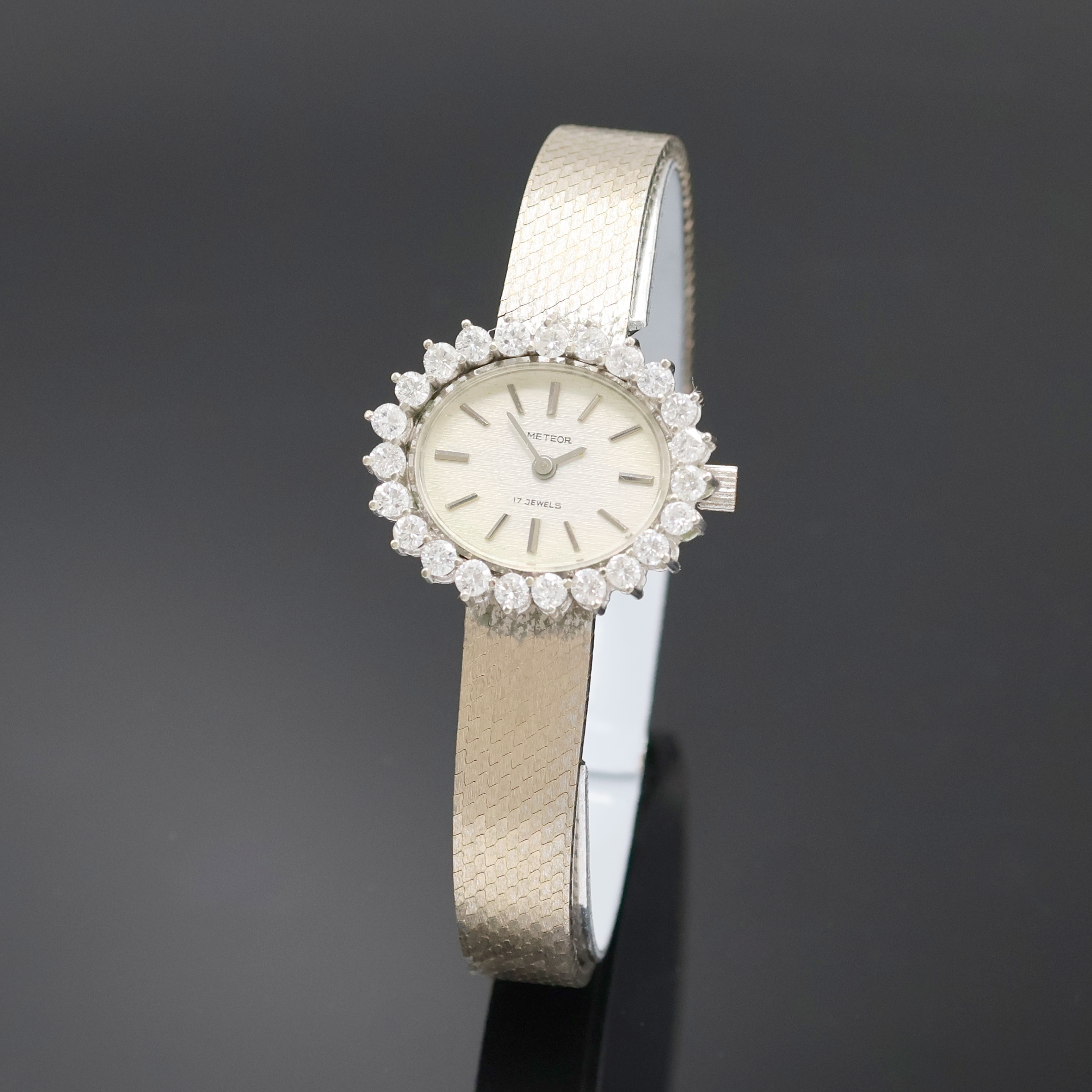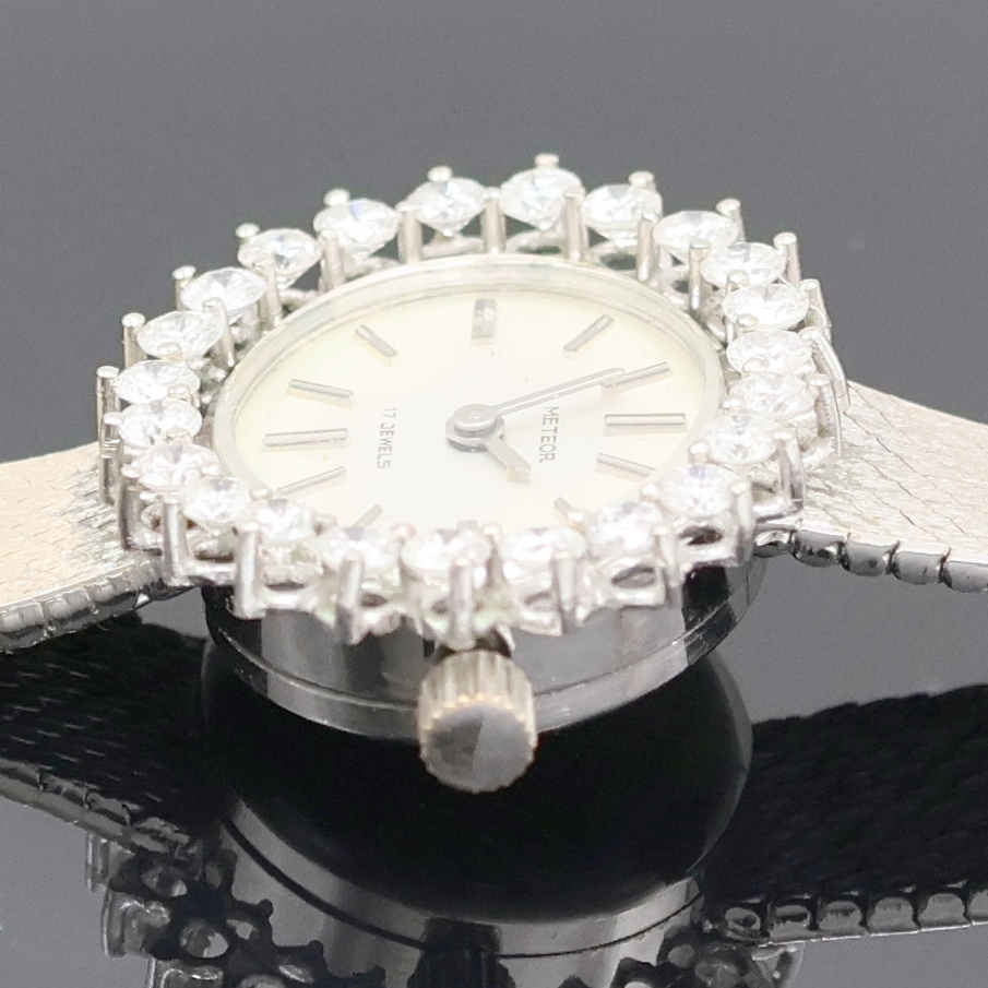 METEOR Damenarmbanduhr in WG 585/000 mit Diamantlünette, Handaufzug, Deutschland