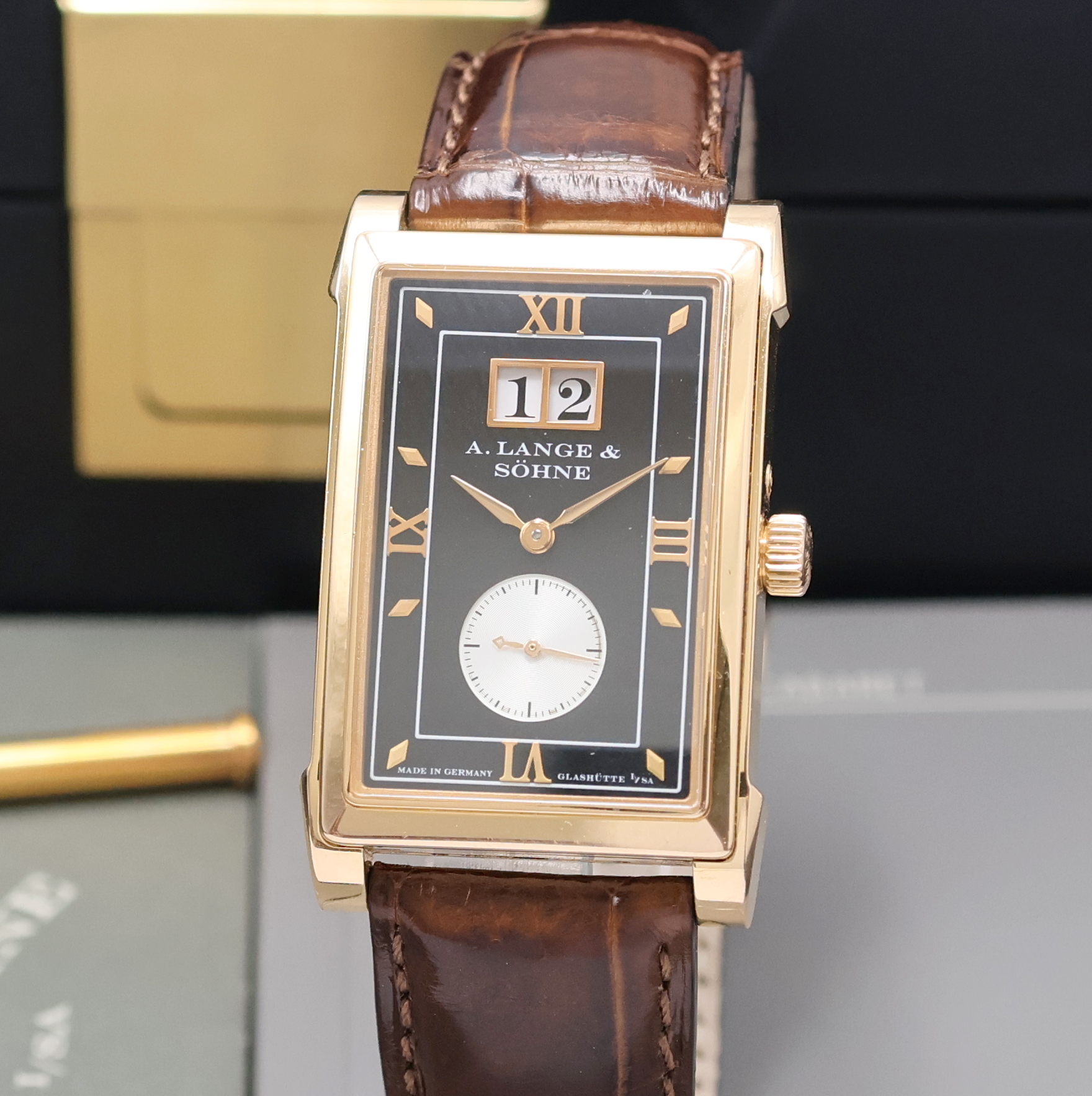 A. LANGE & SÖHNE feine Herrenarmbanduhr Cabaret Referenz 107.031 in RoseG 750/000,