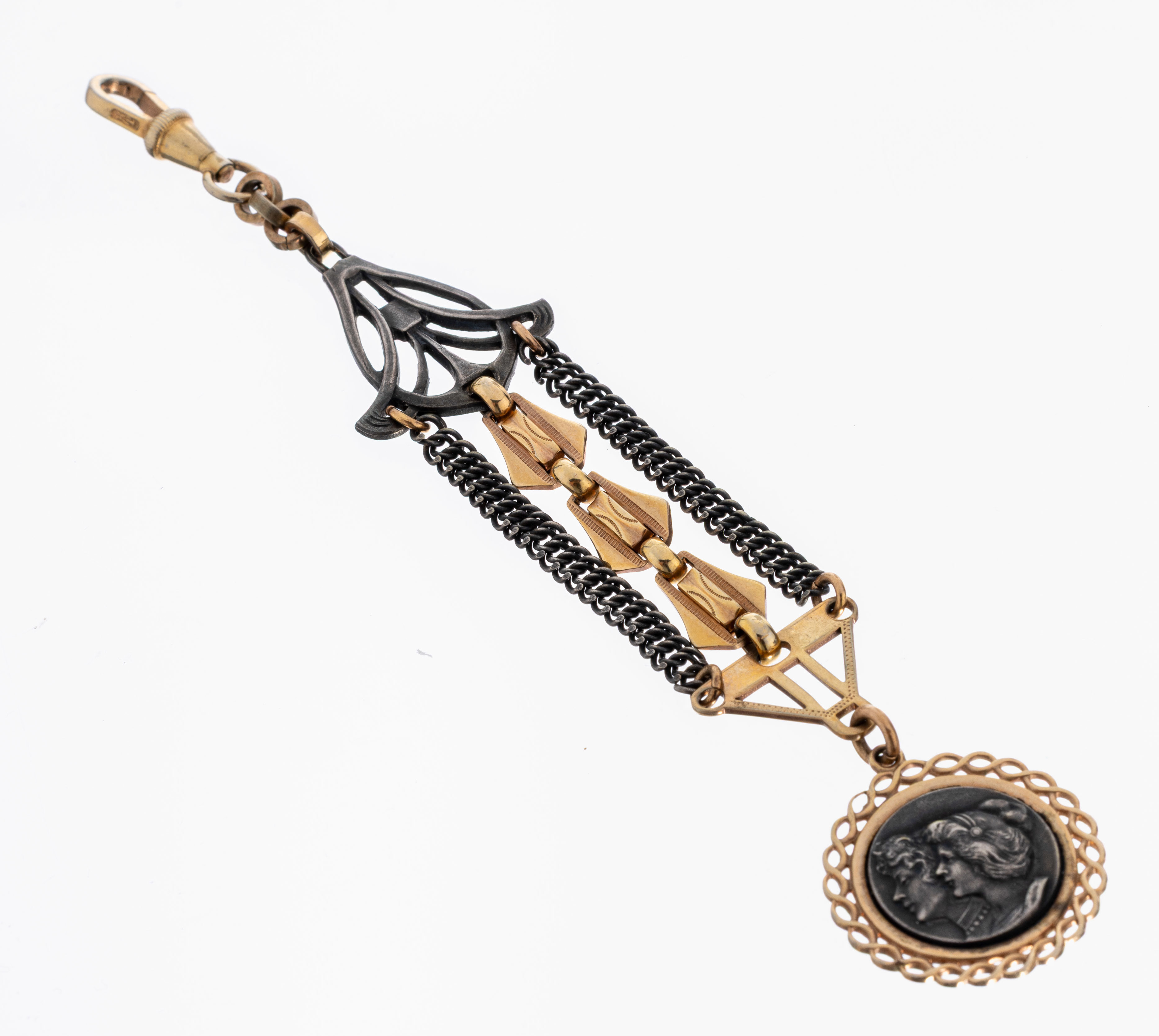 bewegl. abgehängtes Medaille mit 2 Damen im Profil, Fassung wohl sek., L. ca. 15.7