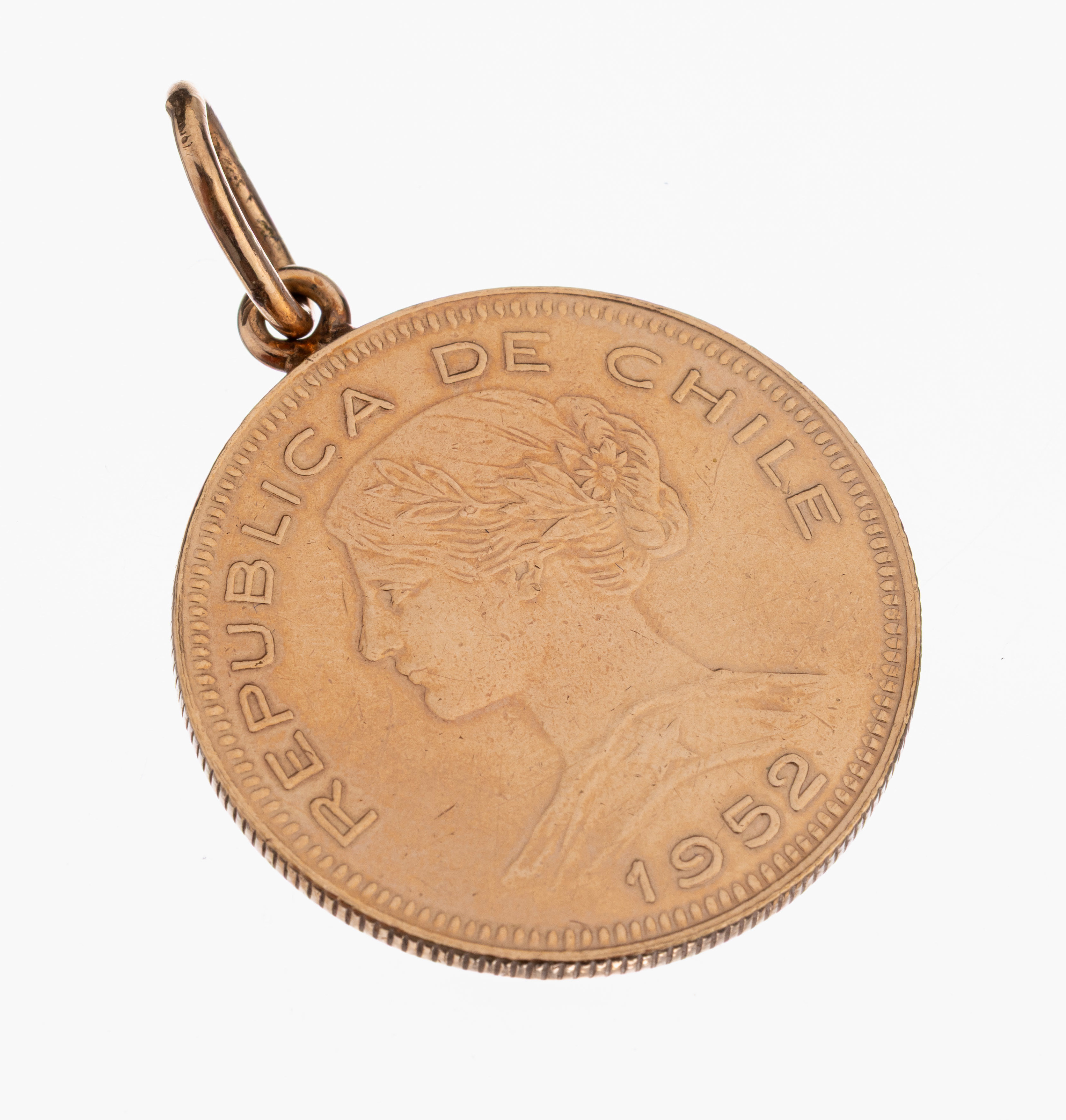 Goldmünze 100 Pesos, Chile, 1952, Cien Pesos, gehenkelt, Henkel und Öse RG 585/000