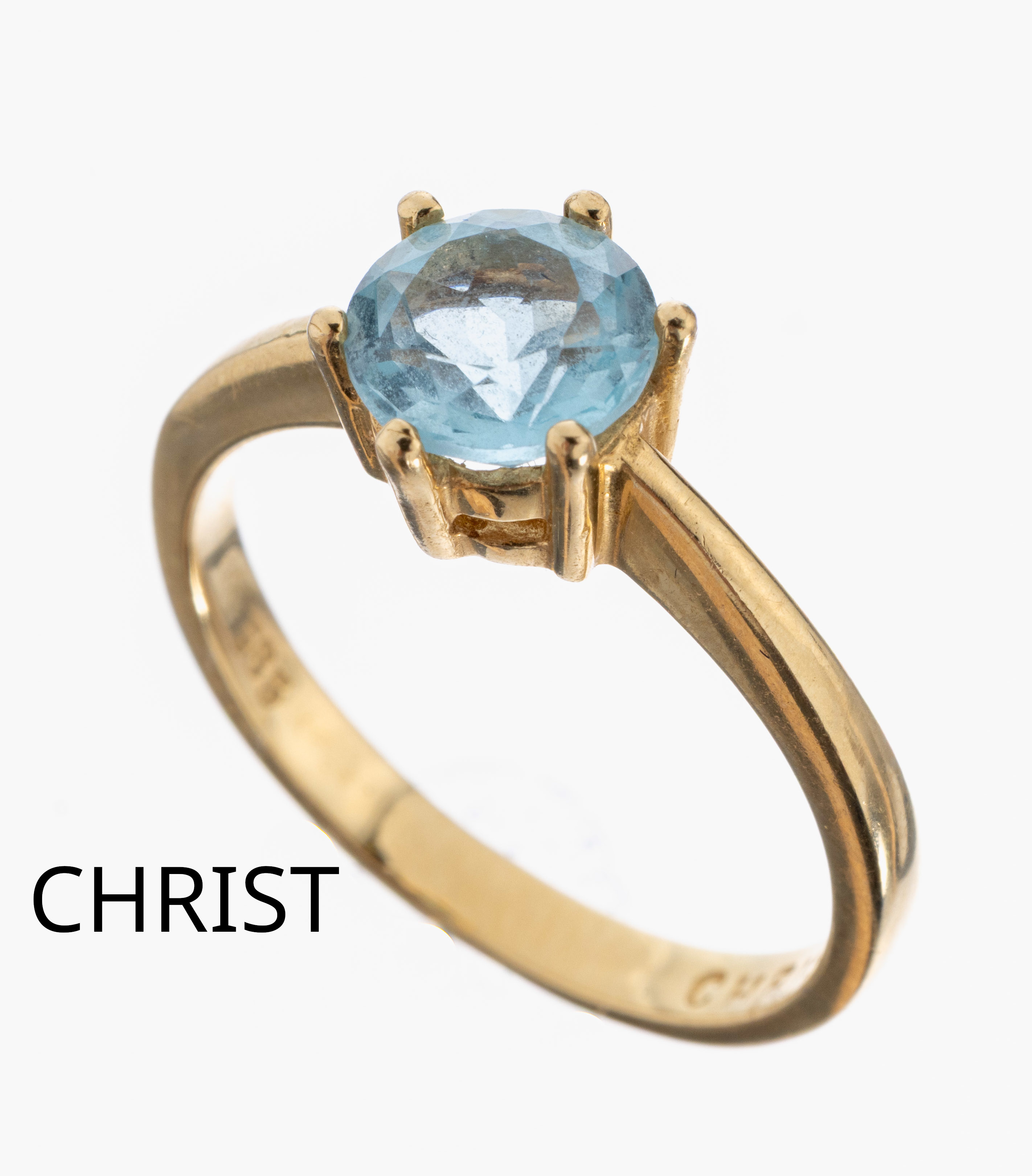 14 kt Gold CHRIST Topas-Ring, GG 585/000, rundfacett. Topas (beh.) ca. 1.0 ct, RW