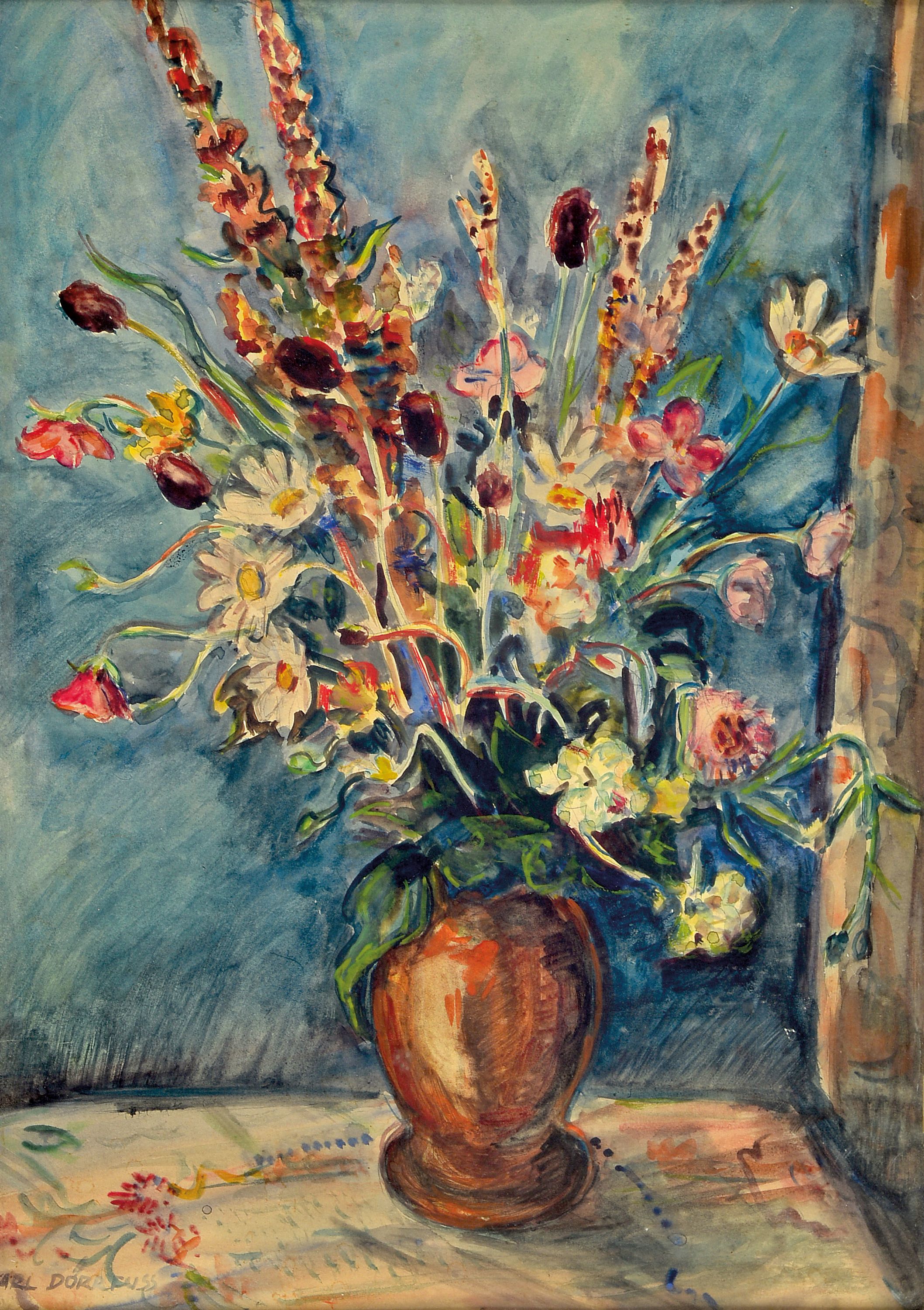 Karl Dörrfuss, 1906-1984 Fürth, Stillleben mit Blumen in brauner Vase, Gouache