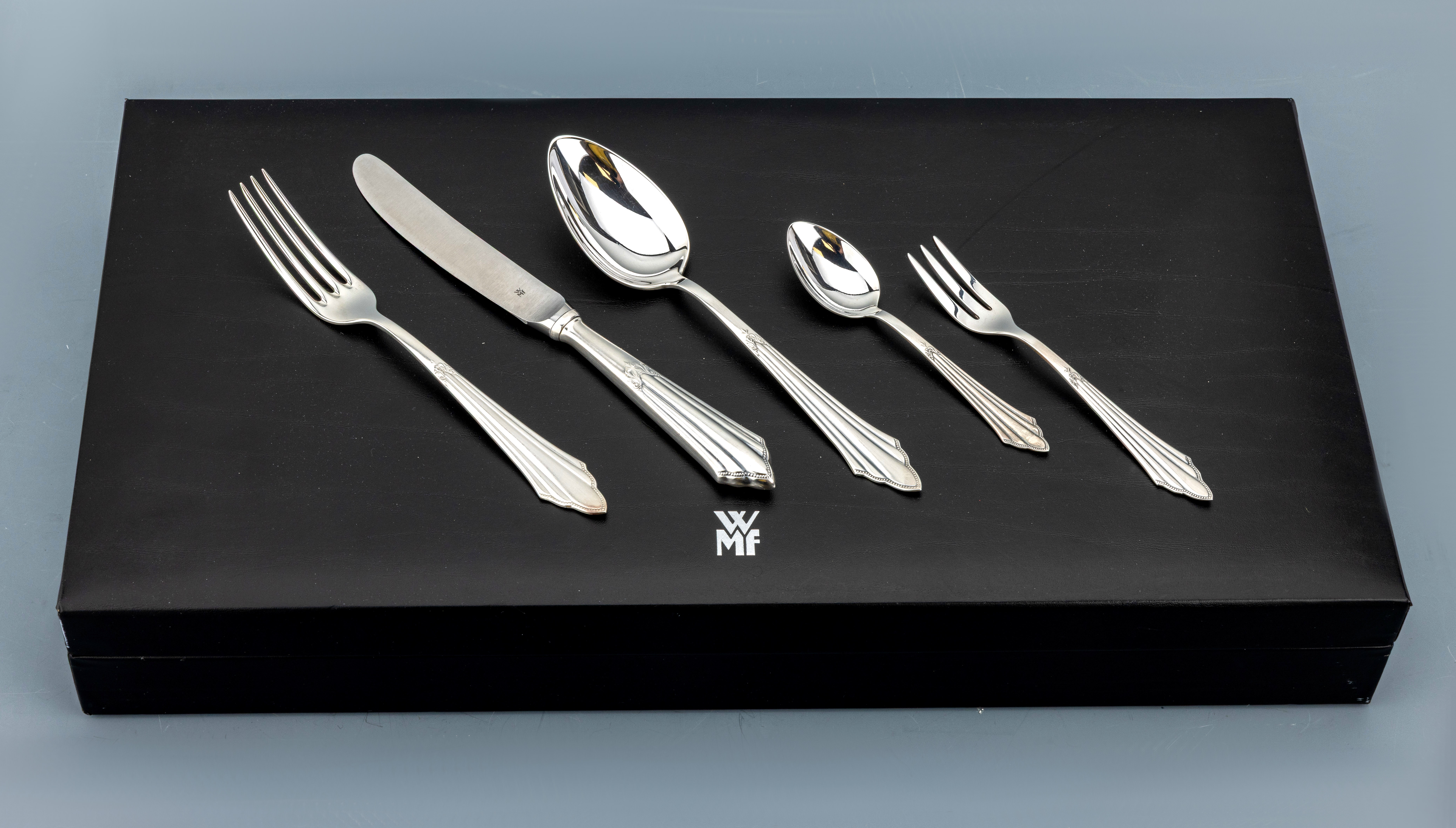 30-tlg. WMF Besteck, Fächermuster, 925er Silber, best. aus: 6 Menügabeln, 6 Menuemesser