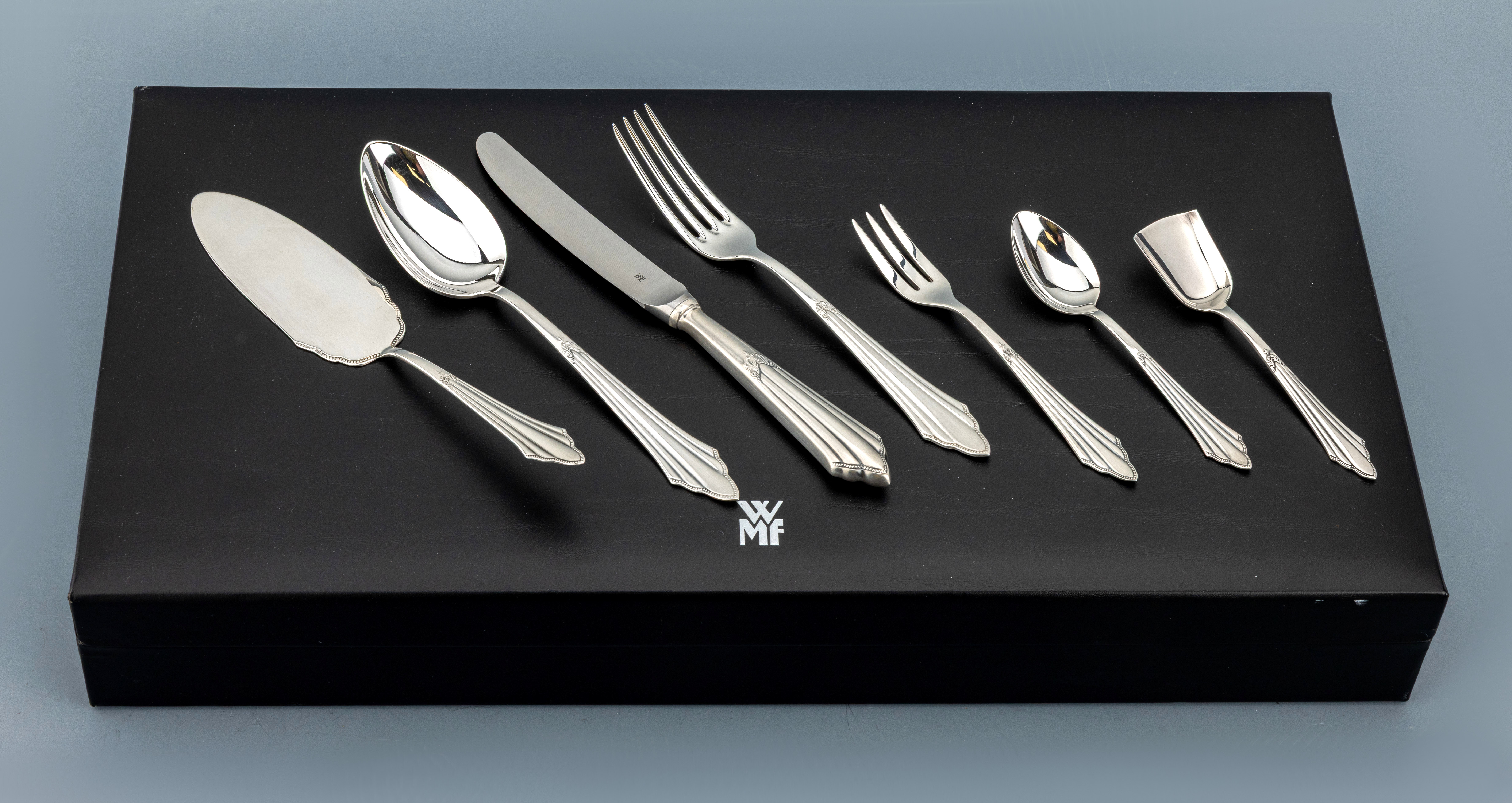 30-tlg. WMF Besteck, Fächermuster, 925er Silber, best. aus: 6 Menügabeln, 6 Menuemesser