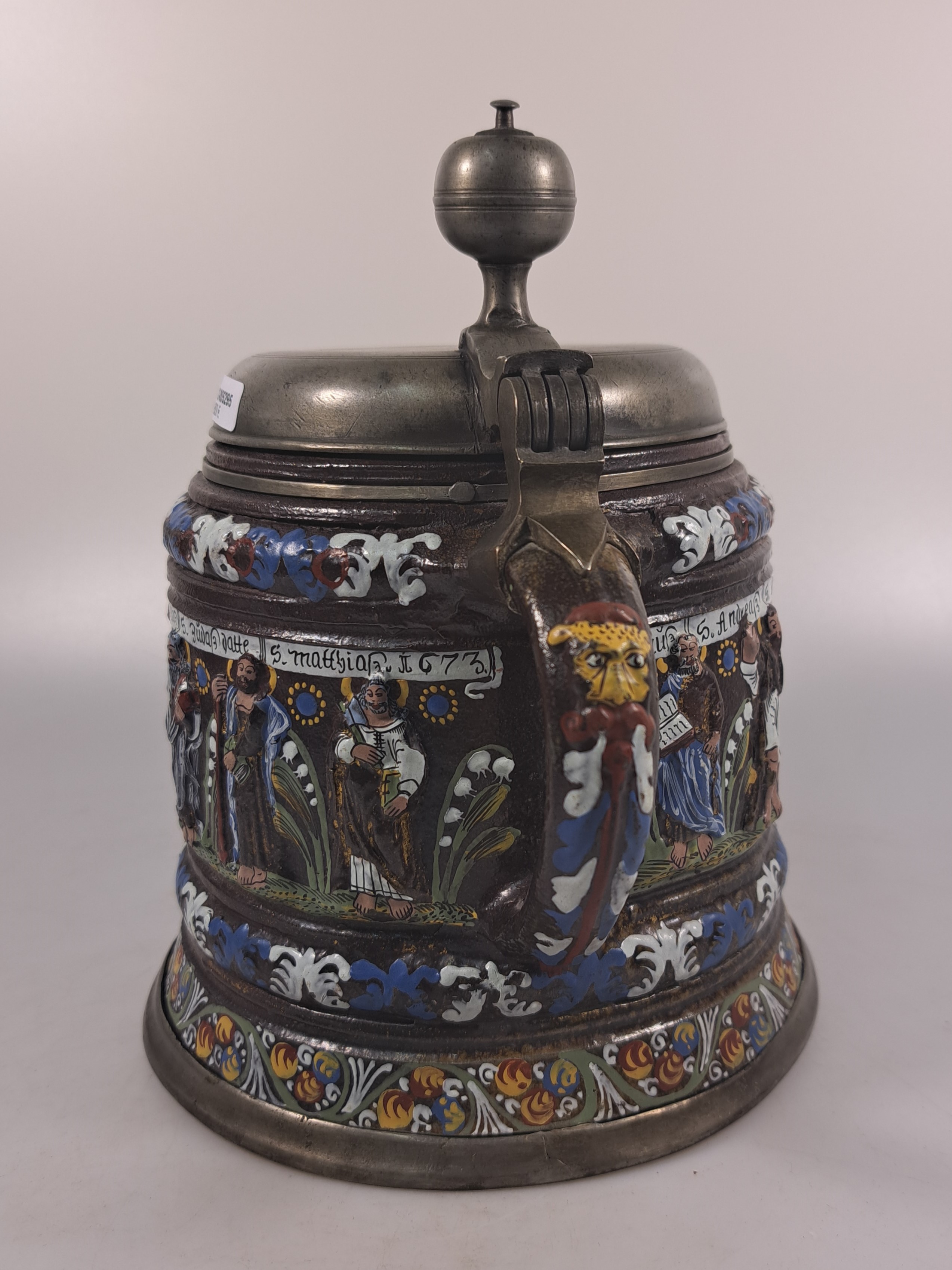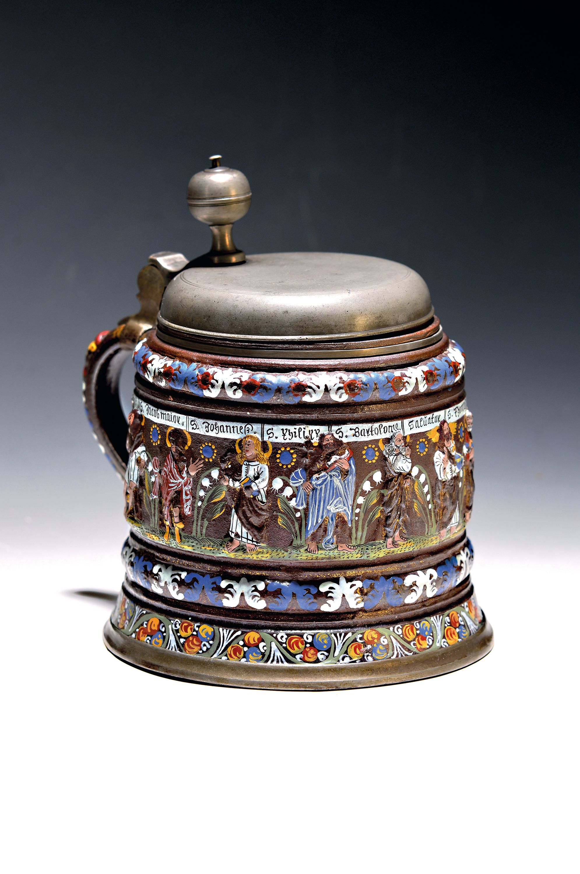 Creußener Apostelkrug, Bayern, datiert 1673, Ausführung 17./18.Jh., salzglasiertes