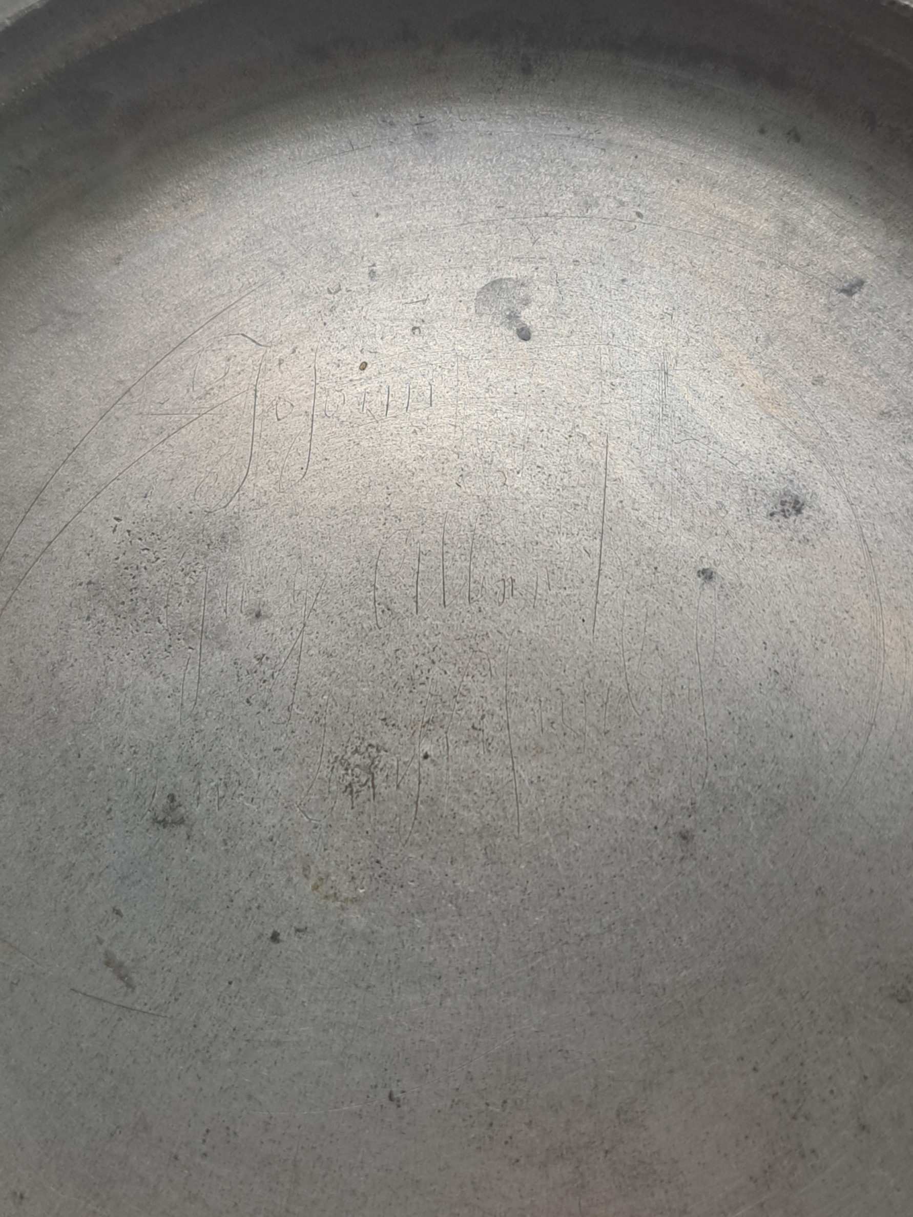 mit Datierung 1673, Deckelmontur und Fußring aus Zinn, Deckelunterseite mit unleserlicher