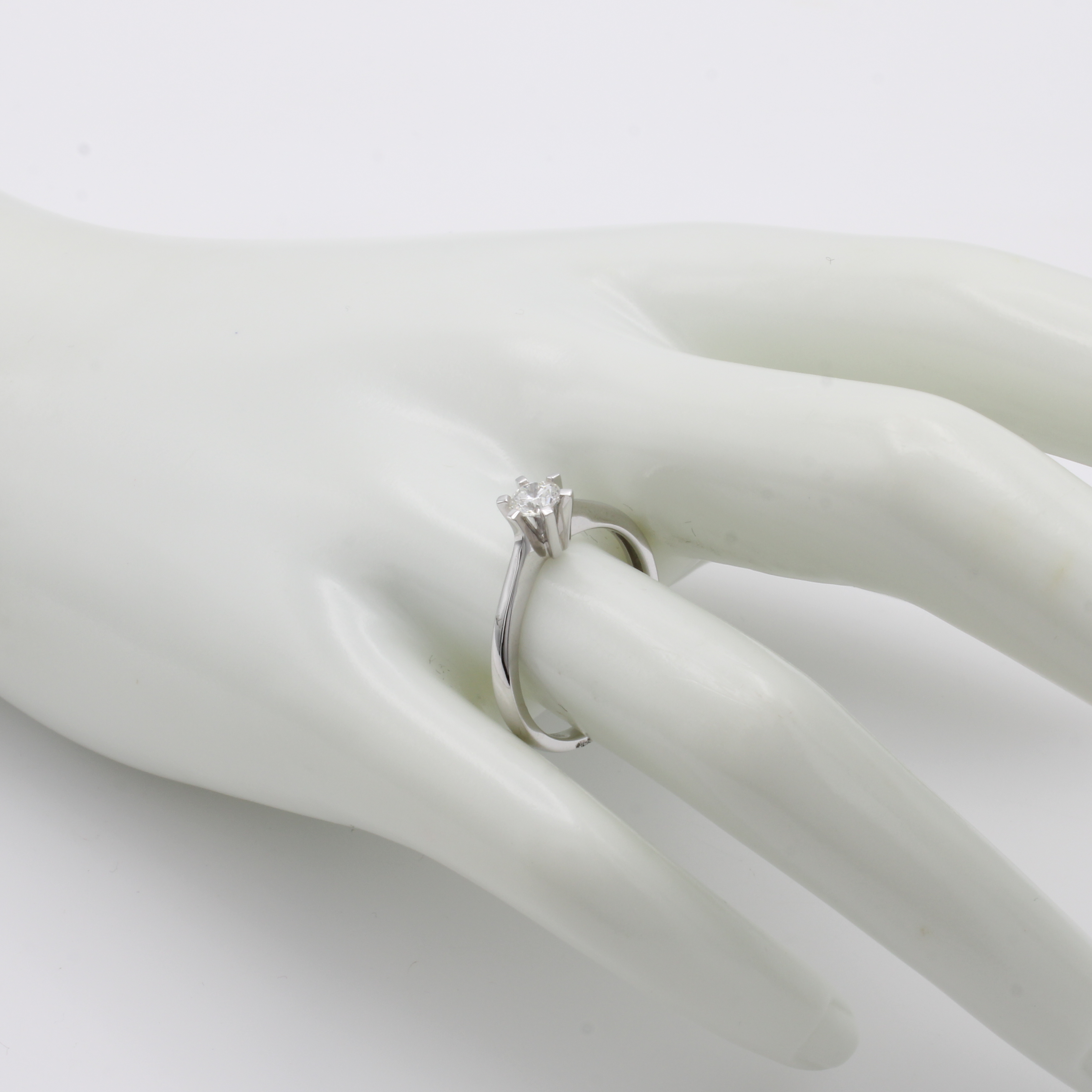 Ring mit Brillantsolitär, WG 585/000, Brill.in breiter Krappenfassung ca. 0.31 ct feines Weiß/si, RW ca. 56 Schätzpreis: 1580, - EUR