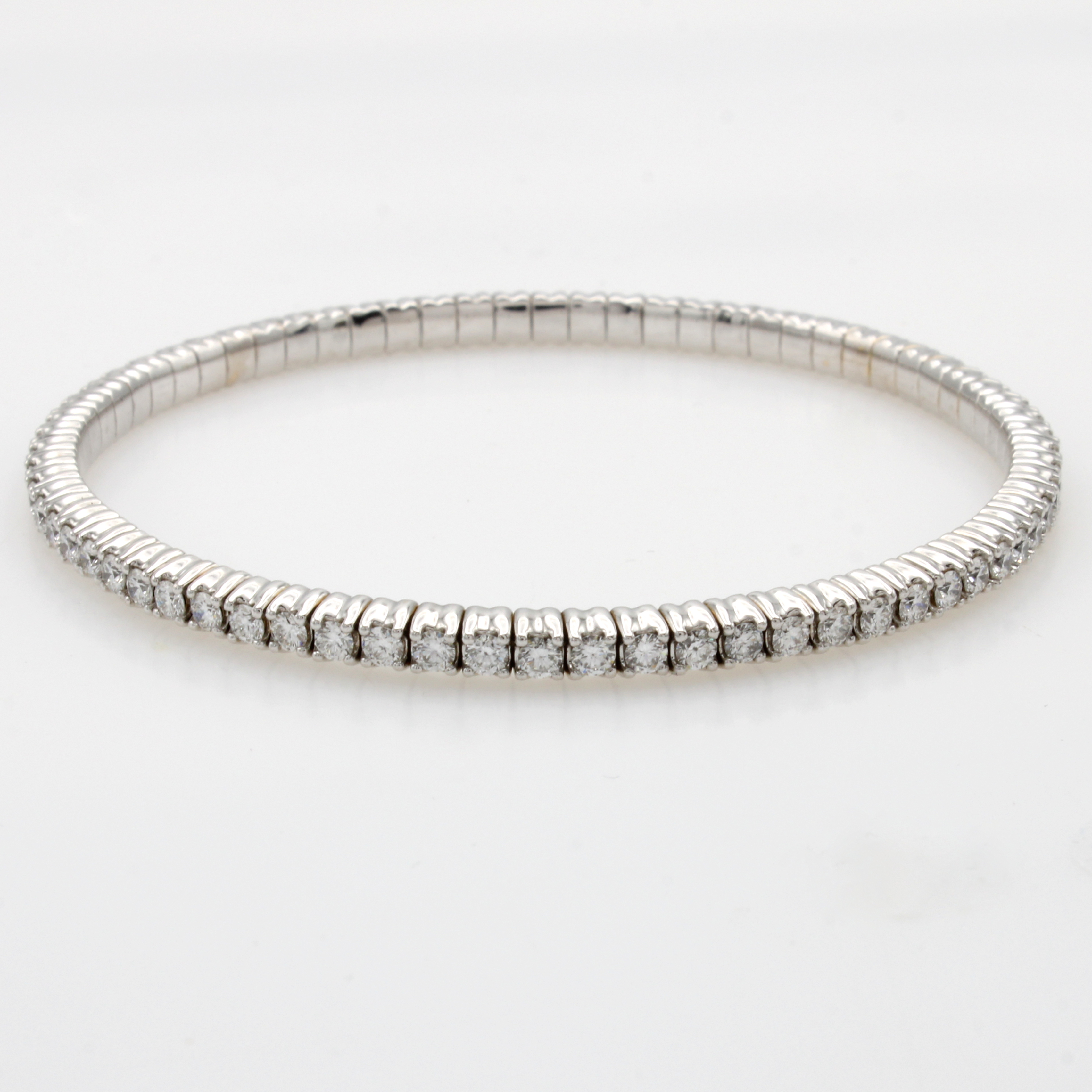 Flexibler Armreif mit Brillanten, WG 750/000, 70 Brill. zus. ca. 3.25 ct feines Weiß/vs, Br. ca. 3.5 mm Schätzpreis: 15500, - EUR
