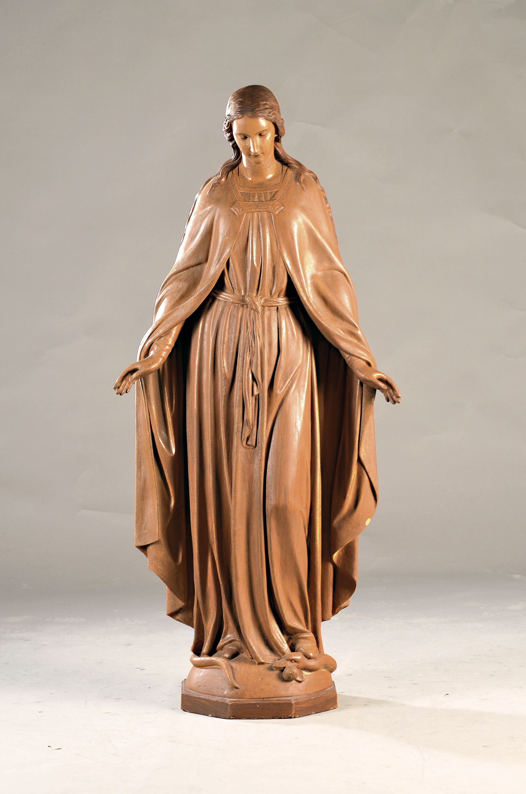 Große Schutzmantelmadonna, deutsch, Anfang 20.Jh., keramischer Formguss, holzfarbene