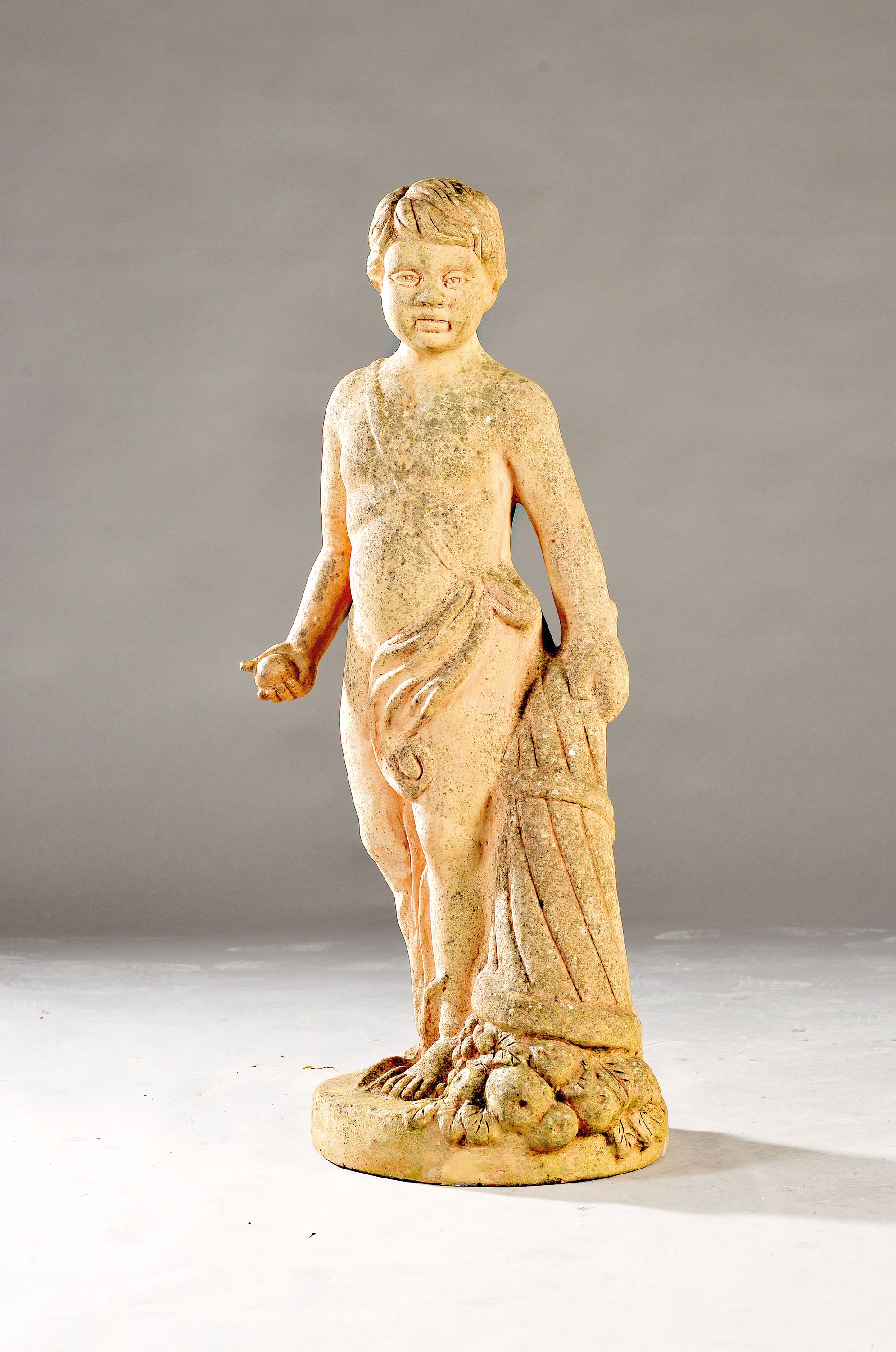 Darstellung wohl des Überflusses in Form eines Putto mit Füllhorn, H. 93 cm