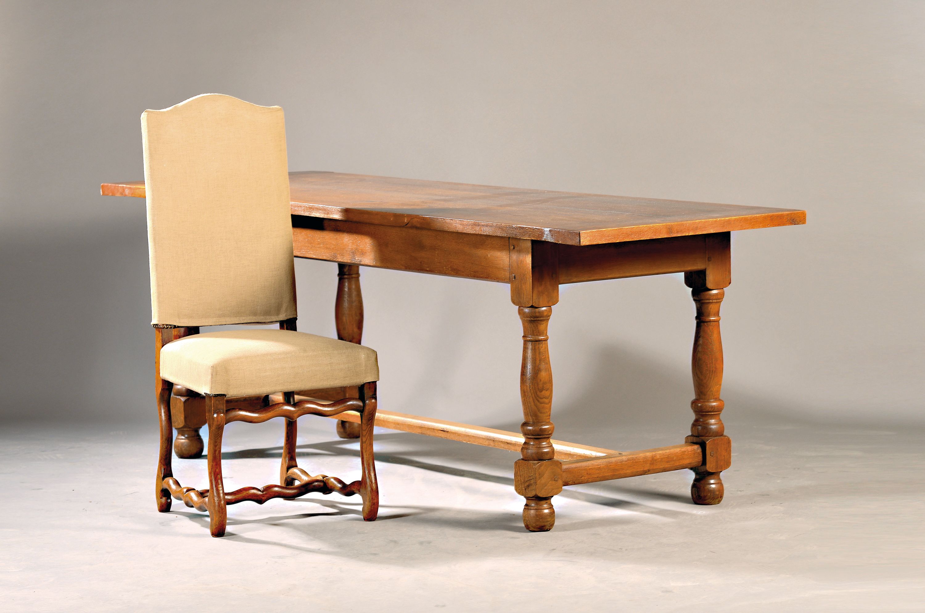 Refektoriumstisch mit 6 Stühlen, um 1900, Eiche massiv, Tisch ca. 79 x 220 x 75