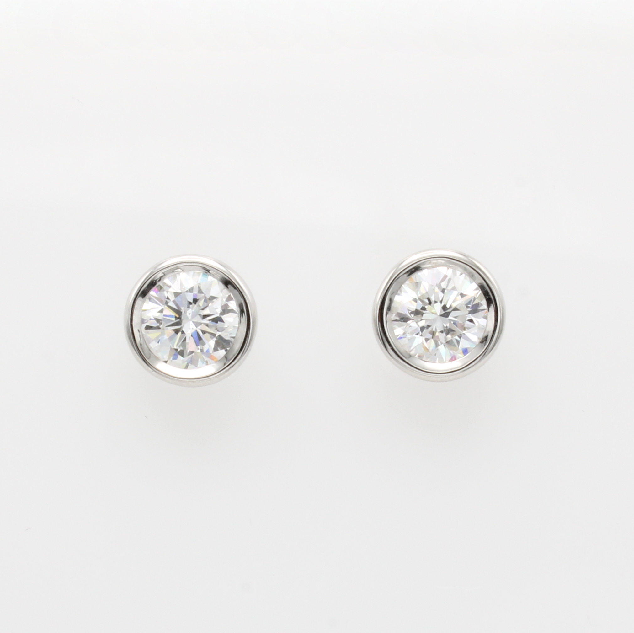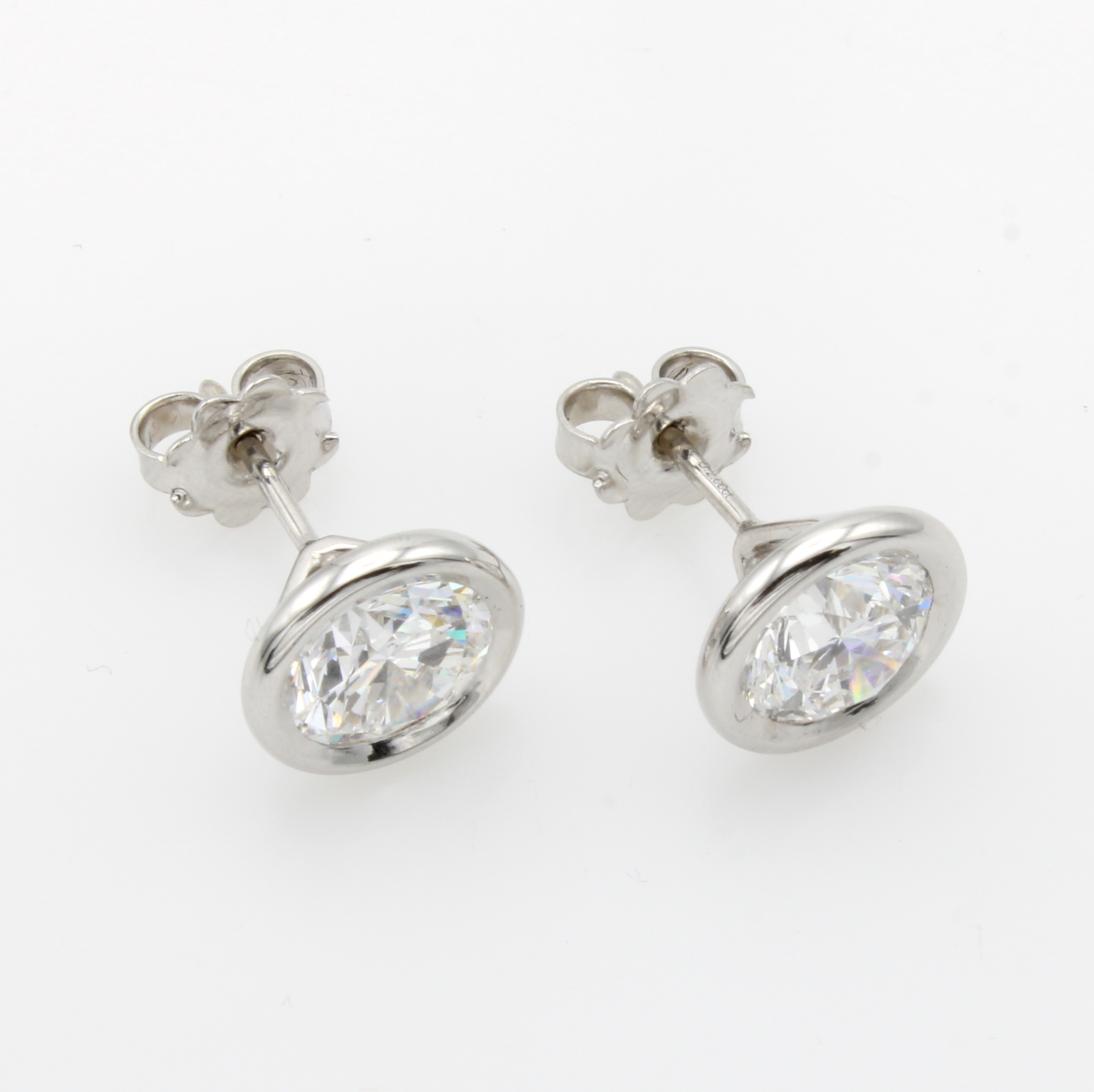 Paar Ohrstecker mit Brillantsolitären, WG 750/000, 2 Brill. in Zargenfassung jeweils 2.00 ct hochfeines Weiß+(D)/si1, D. ca. 11 mm,2 IGI-Expertisen liegen vor Schätzpreis: 48500, - EUR